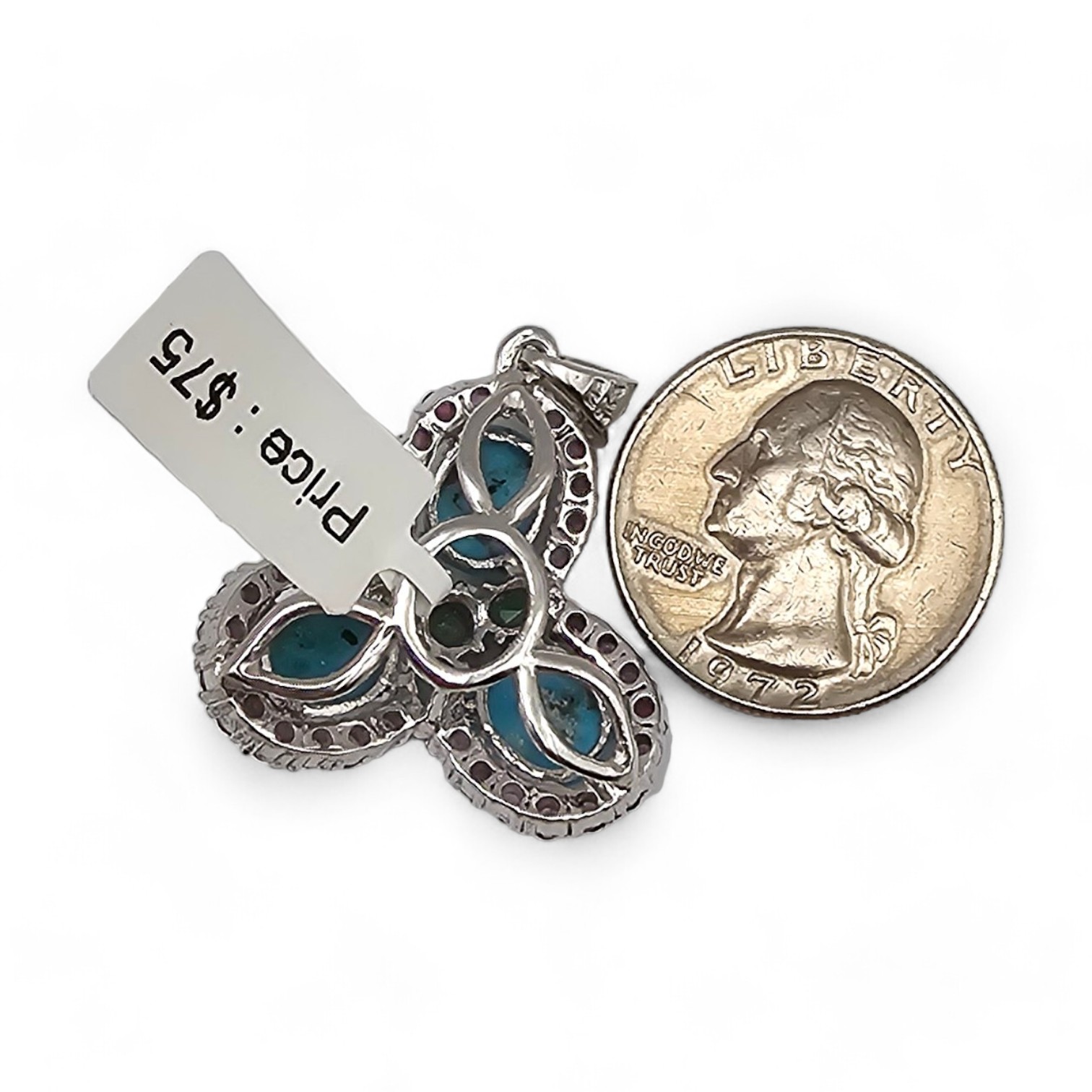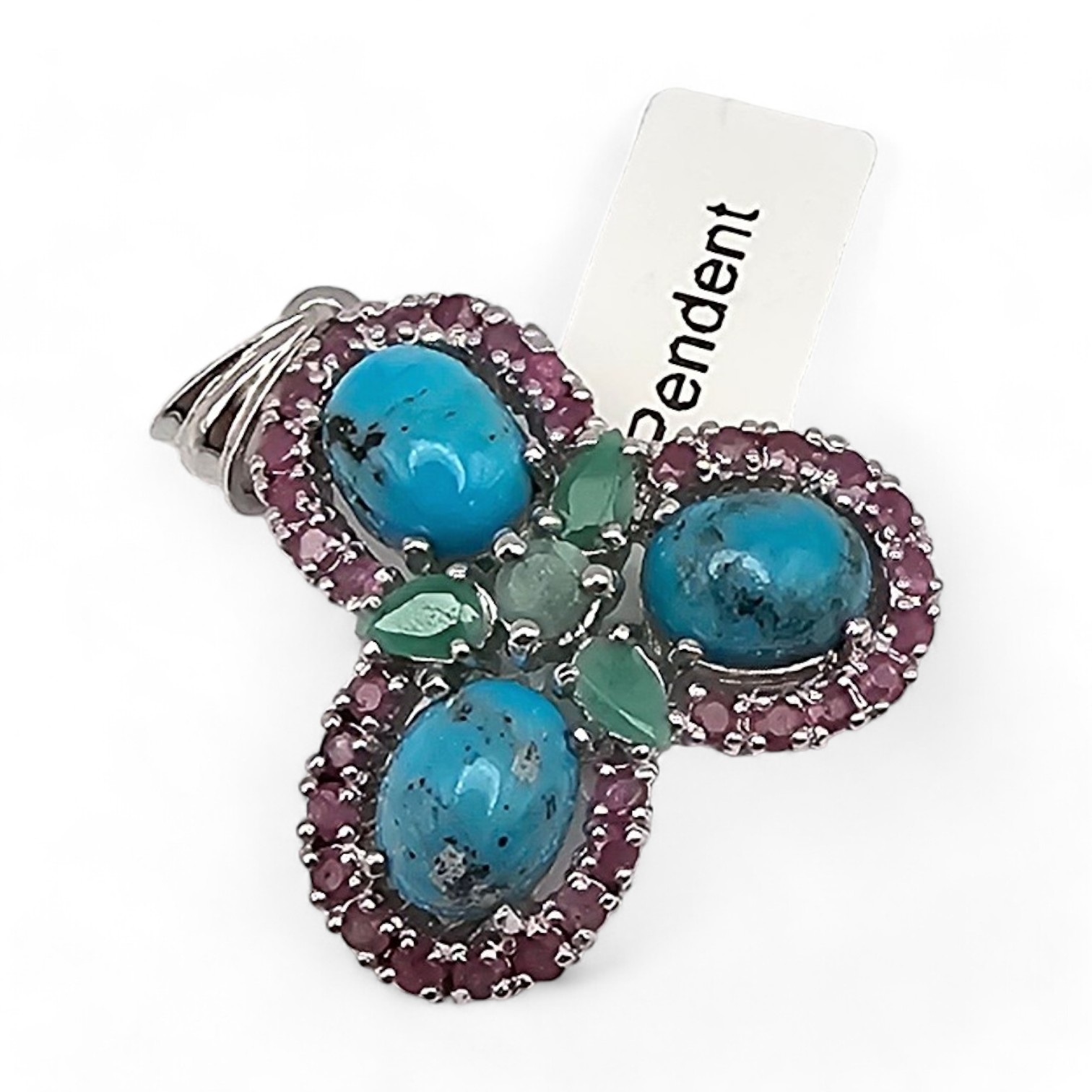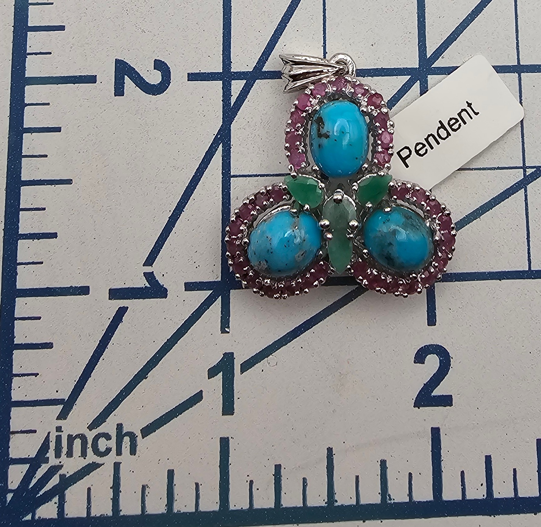 NWT Genuine Turquoise Emerald Ruby Sterling Silver Pendant 8.3 G