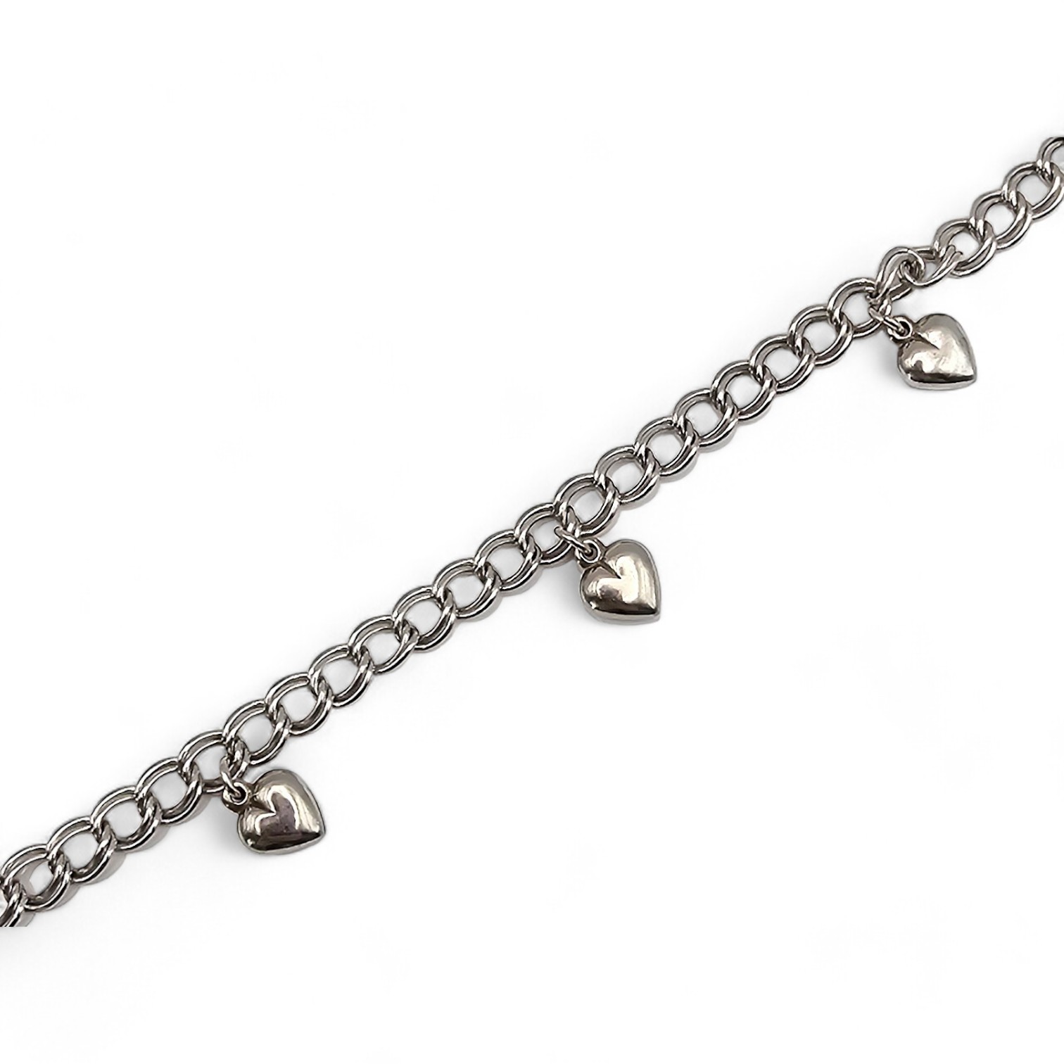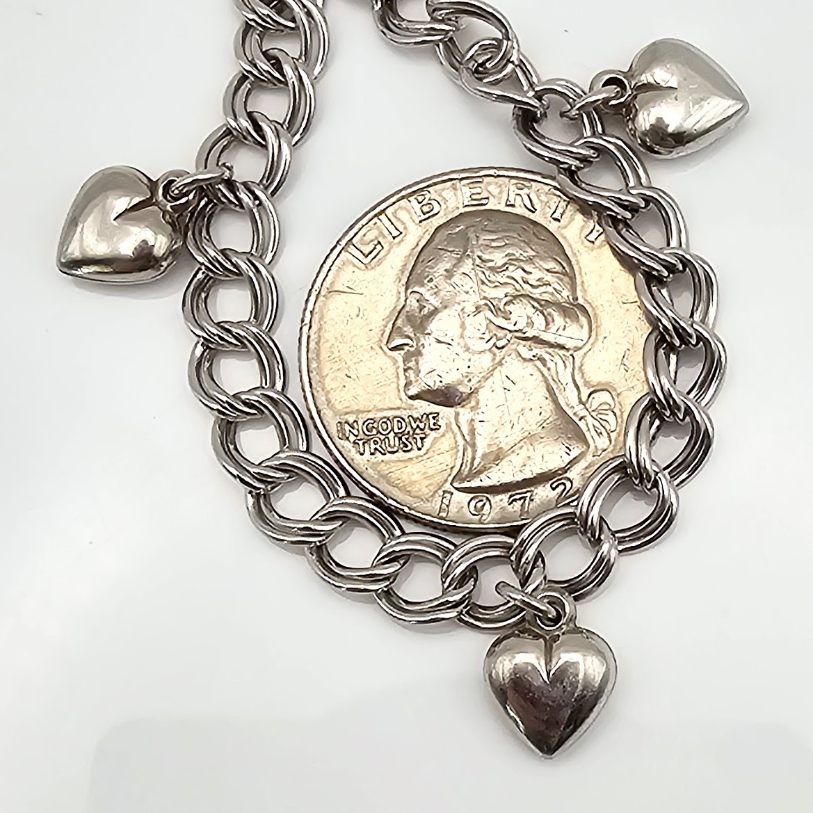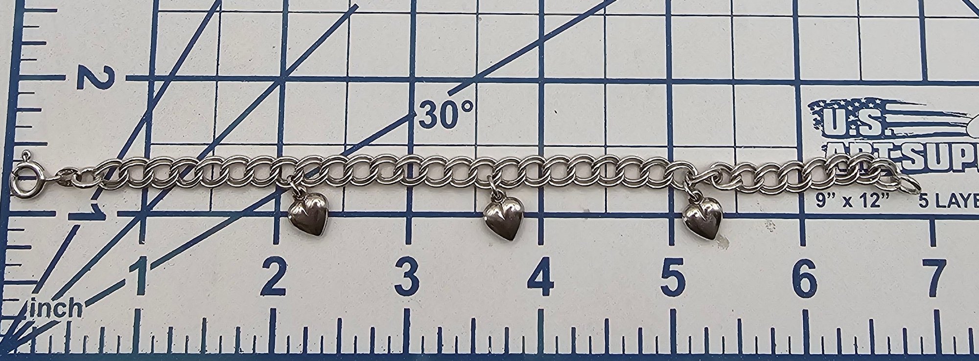 Sterling Silver Heart Charm Bracelet 8.4 G