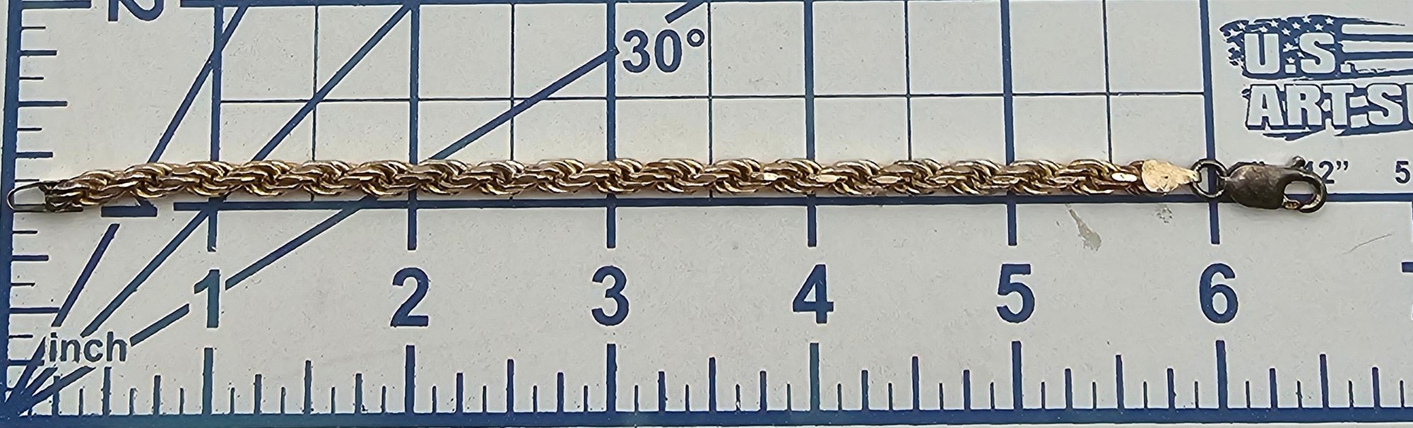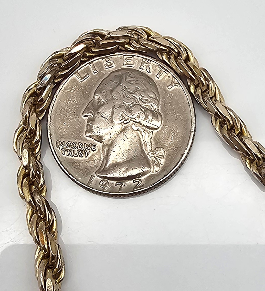 Gold Over Sterling Silver Thick Rope Chain Bracelet 10.7 G