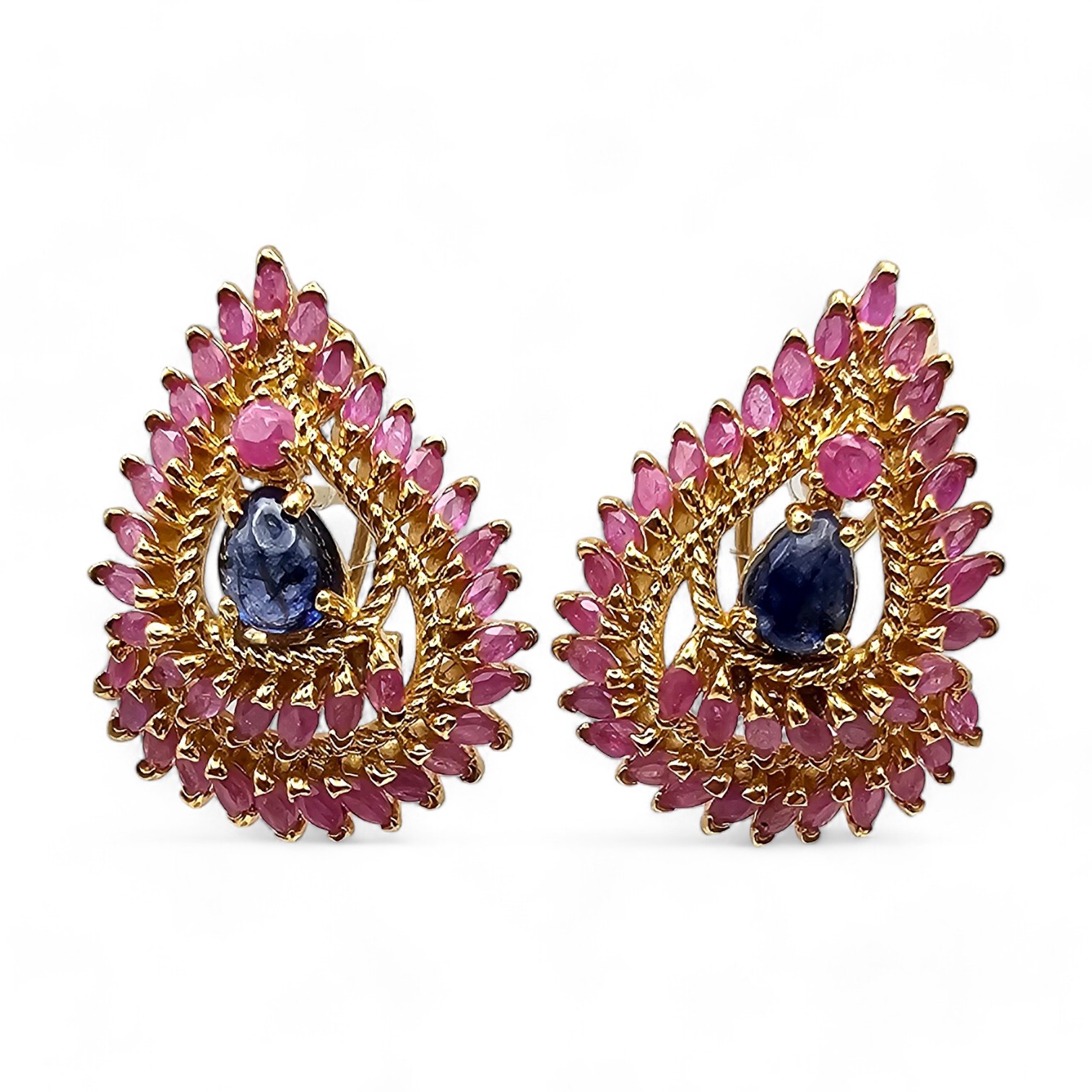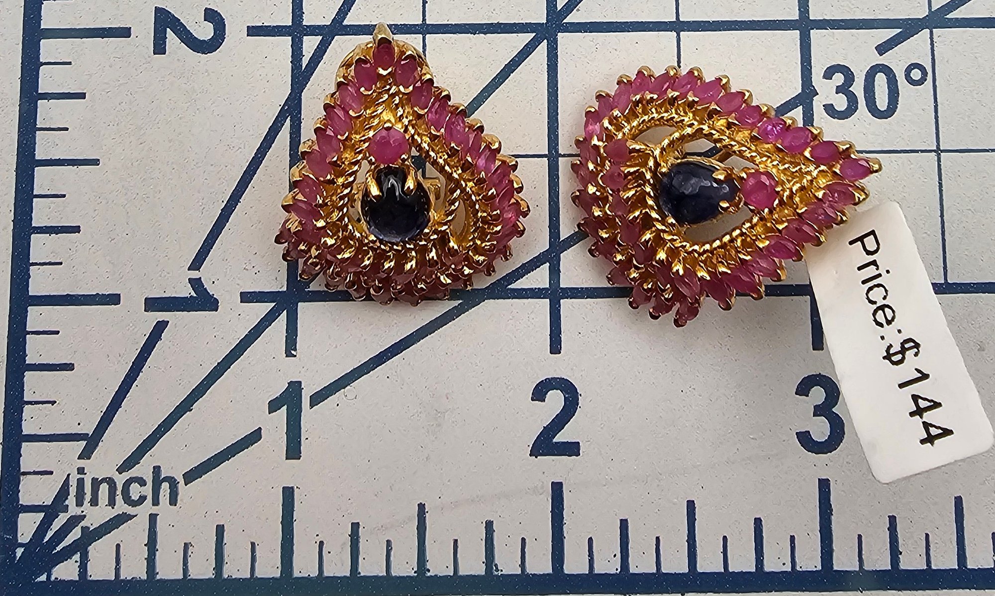 NWT Genuine Sapphire Ruby Gold Over Sterling Silver Earrings 15.9 G