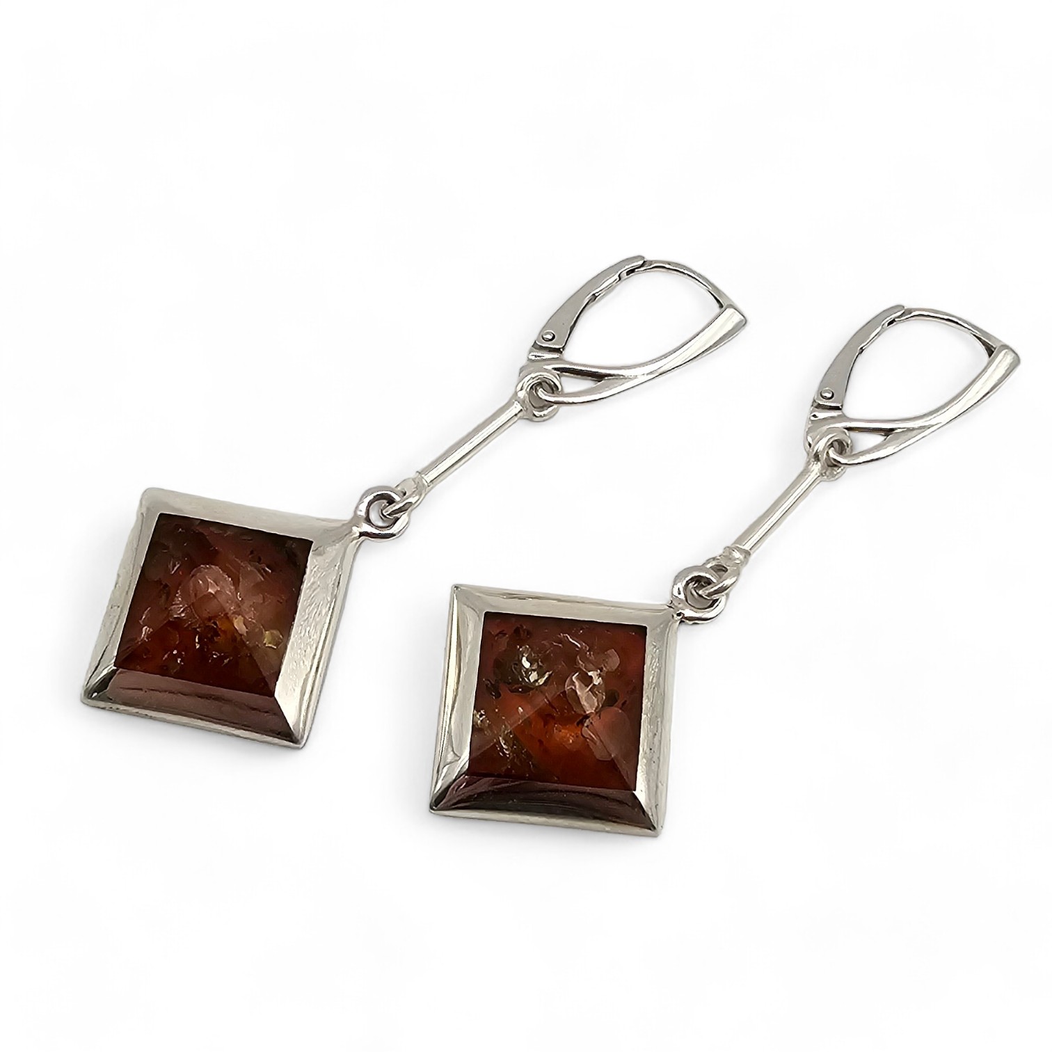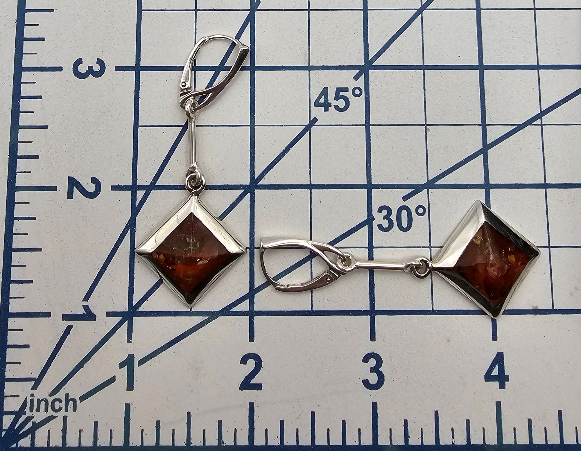 New Great High Quality Poland Amber Sterling Silver Diamond Shape Drop Dangle Earrings 9.2 G
