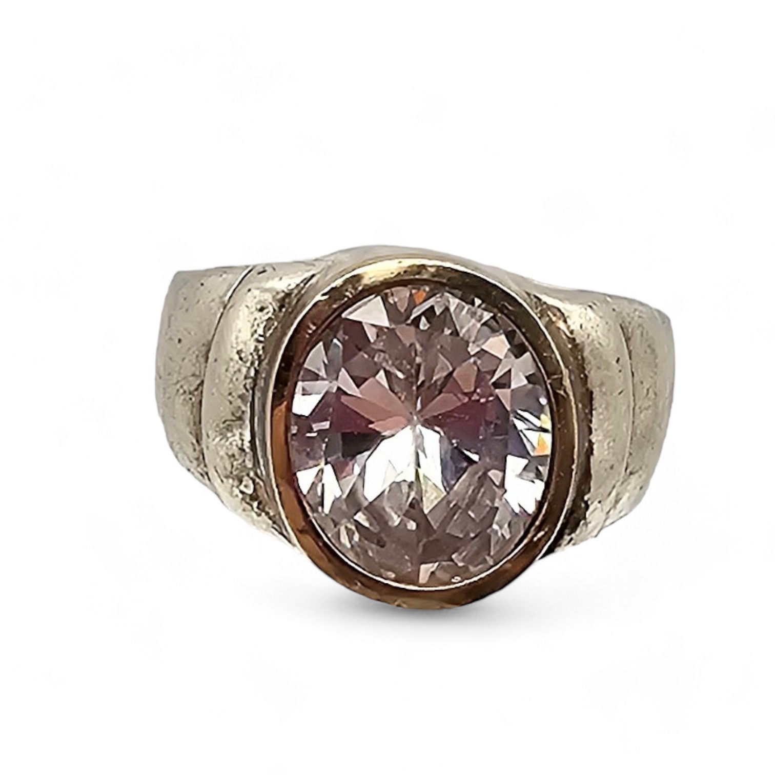 Rhinestone Sterling Silver Cocktail Ring Size 7.75 8.3 G