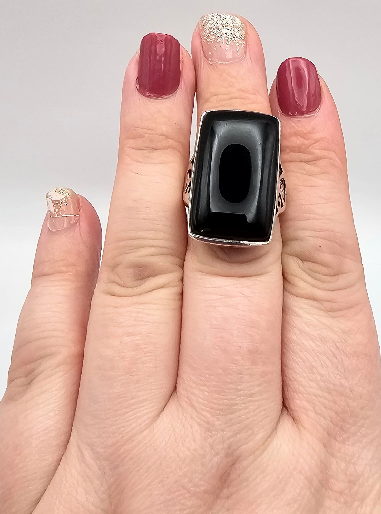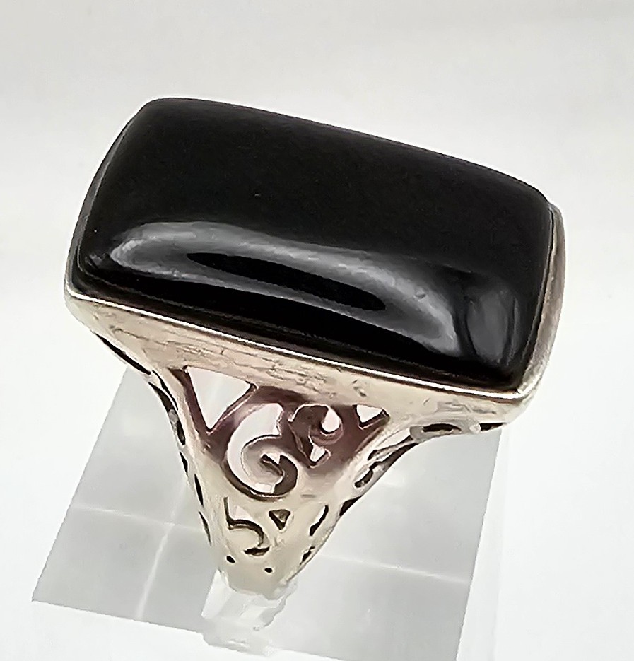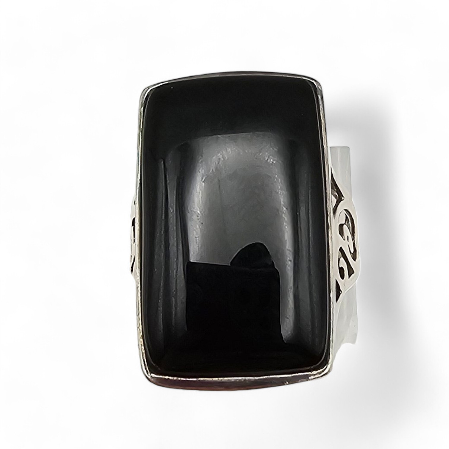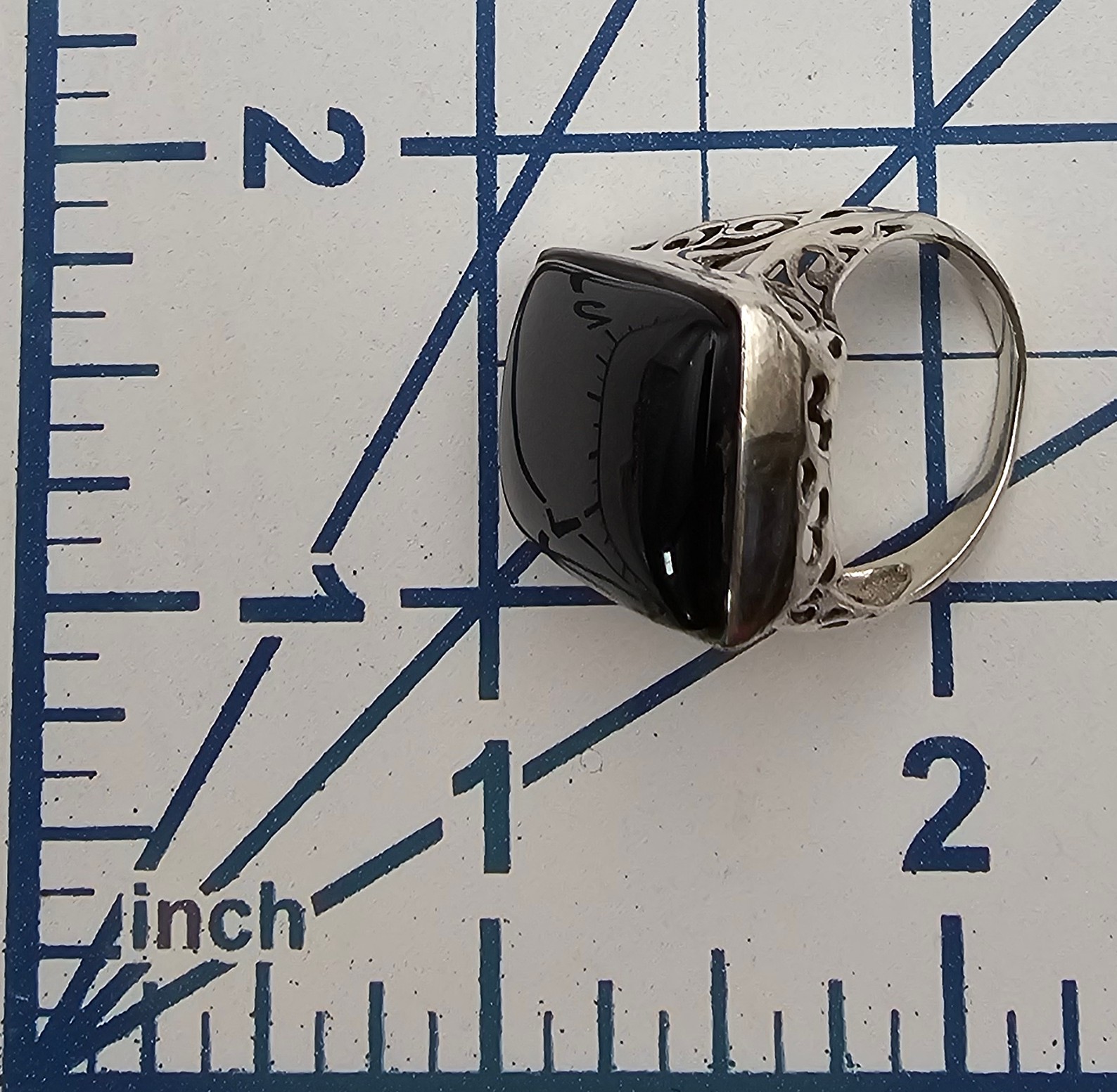 NK Onyx Sterling Silver Ring Size 7.75 8.4 G
