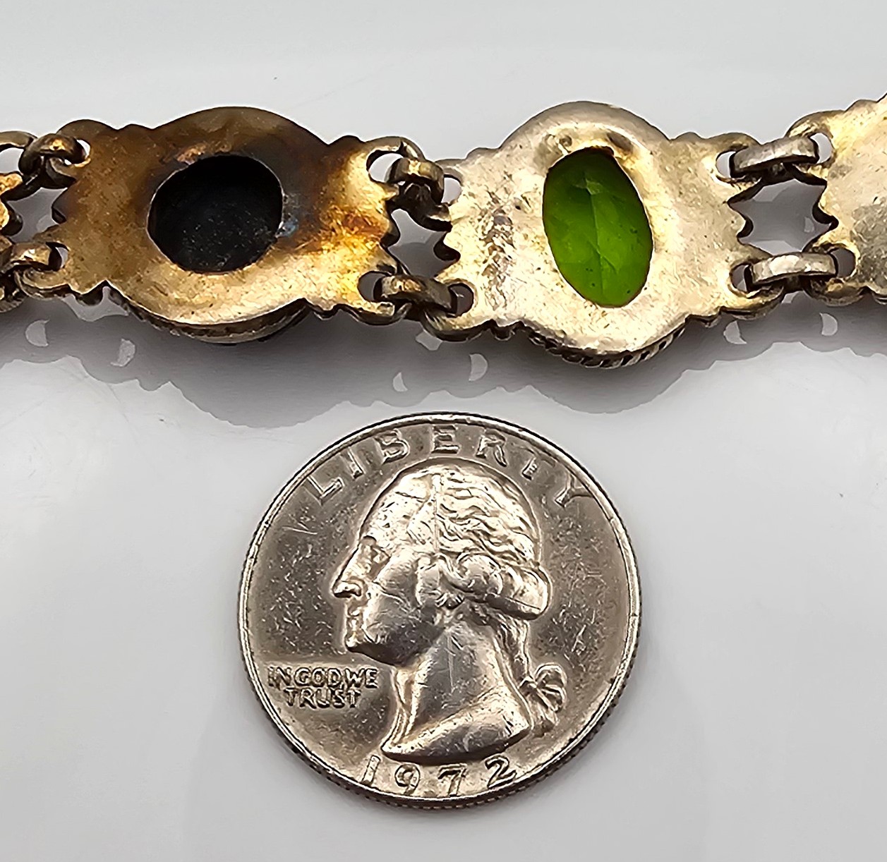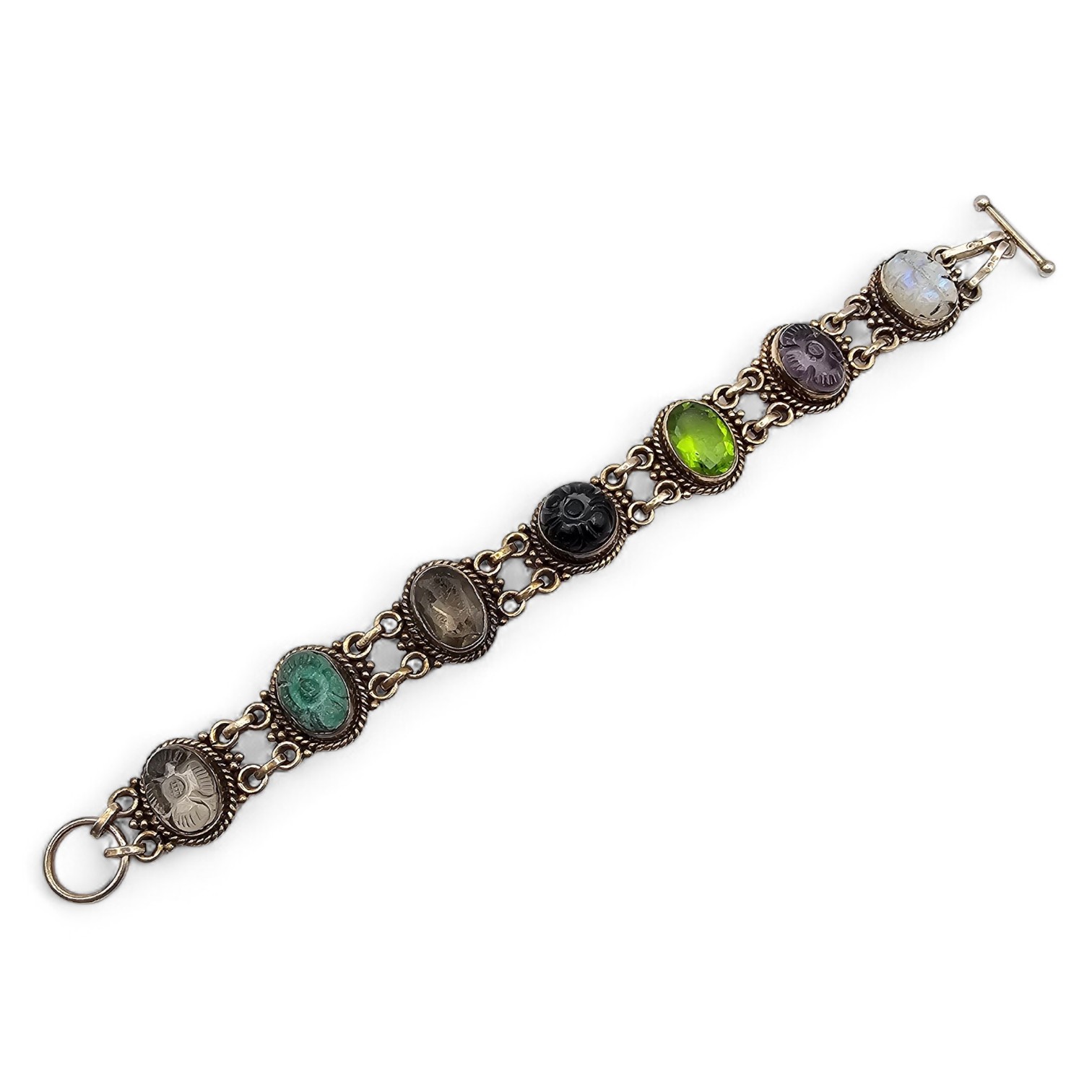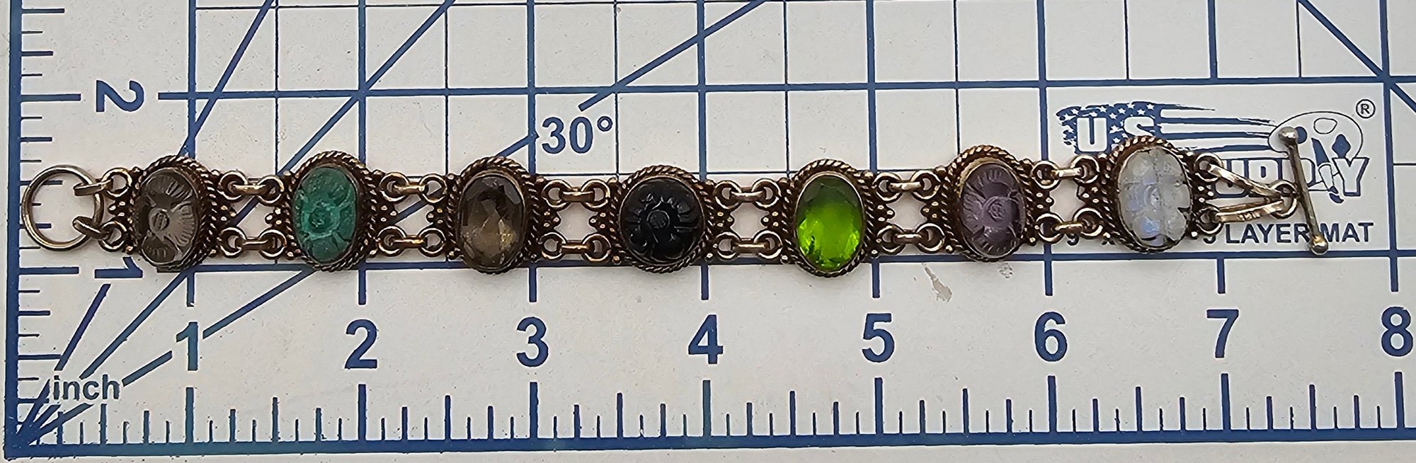 Multi Gemstone Sterling Silver Toggle Bracelet 30.7 G
