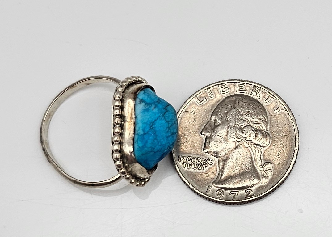 Turquoise Sterling Silver Ring Size 7 4.5 G