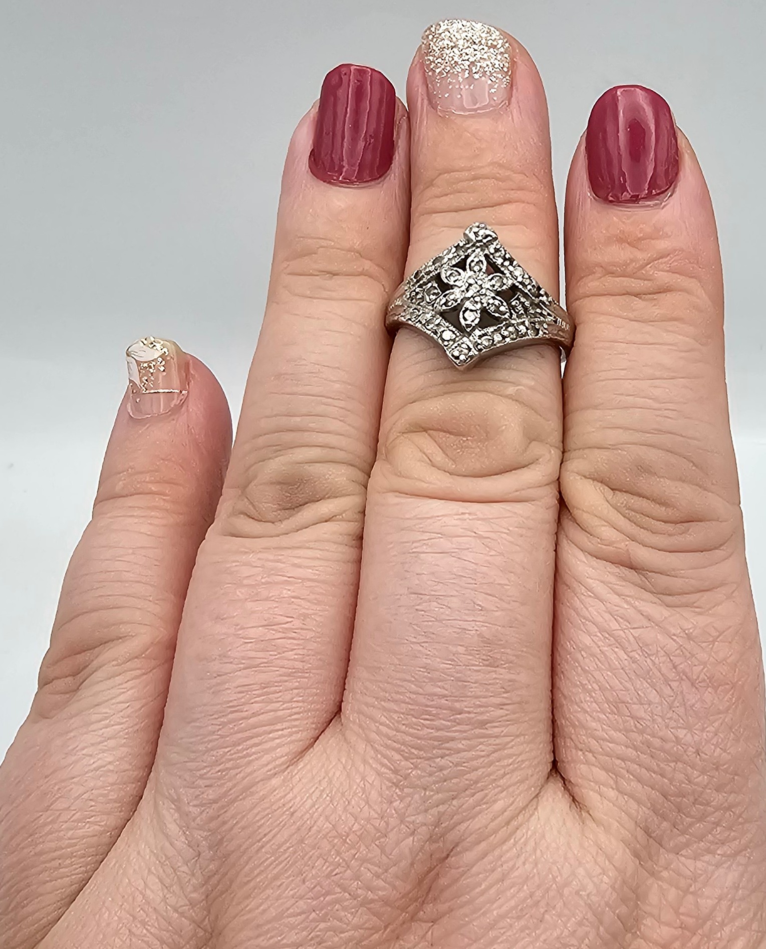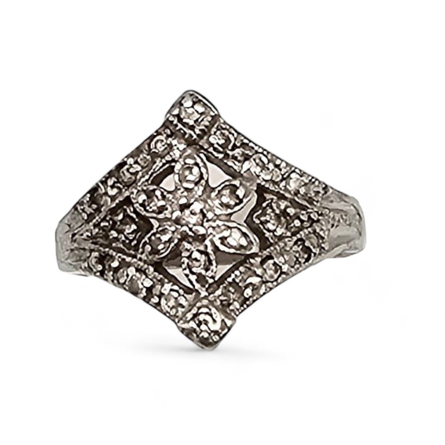 N Rhinestone Sterling Silver Cocktail Ring Size 6.75 4.2 G