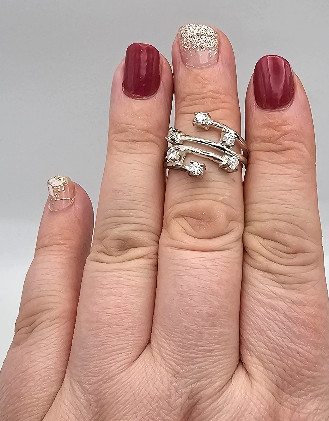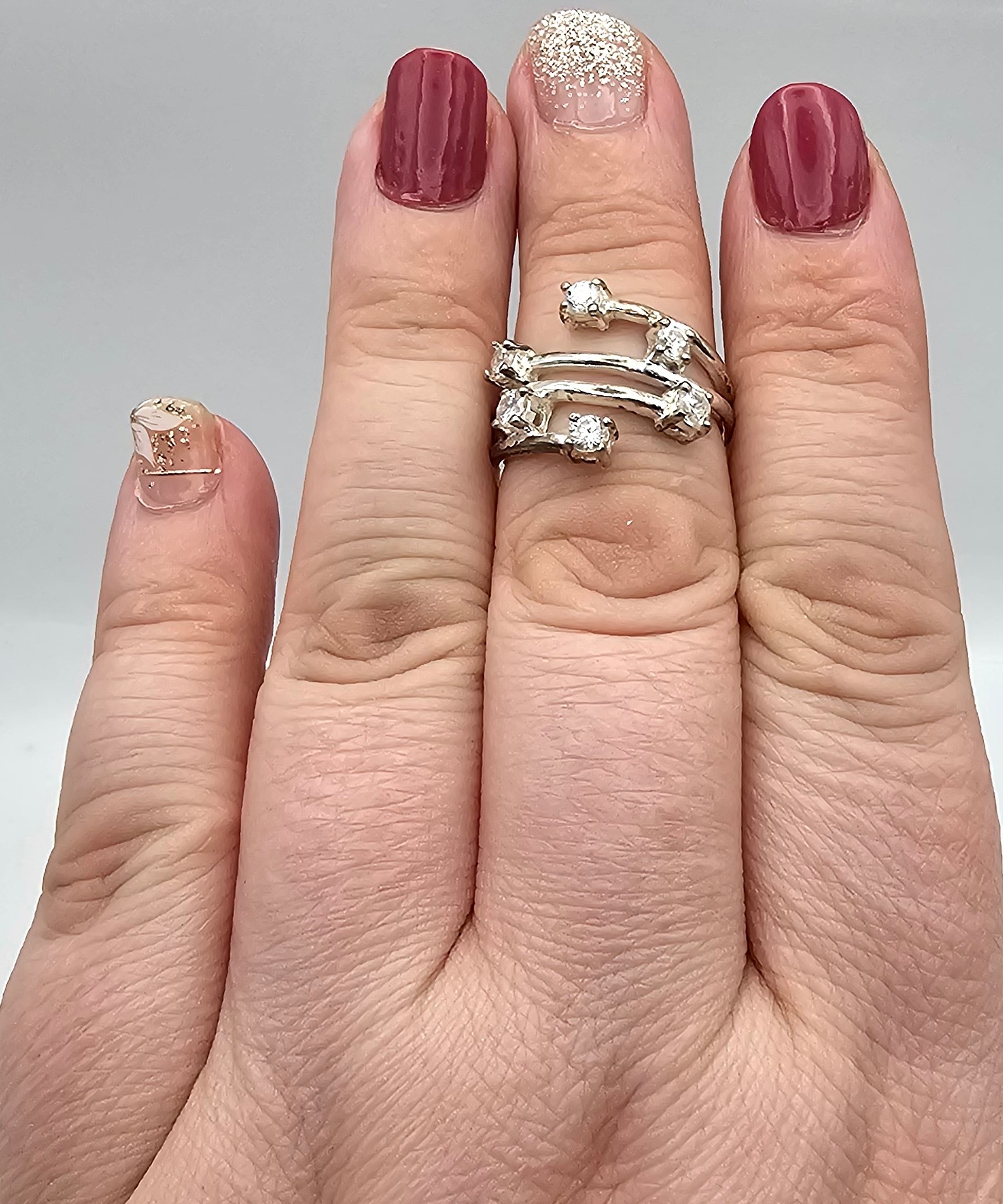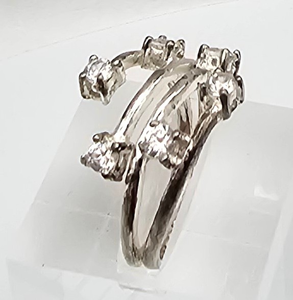 N Rhinestone Sterling Silver Cocktail Ring Size 5.5 3.8 G