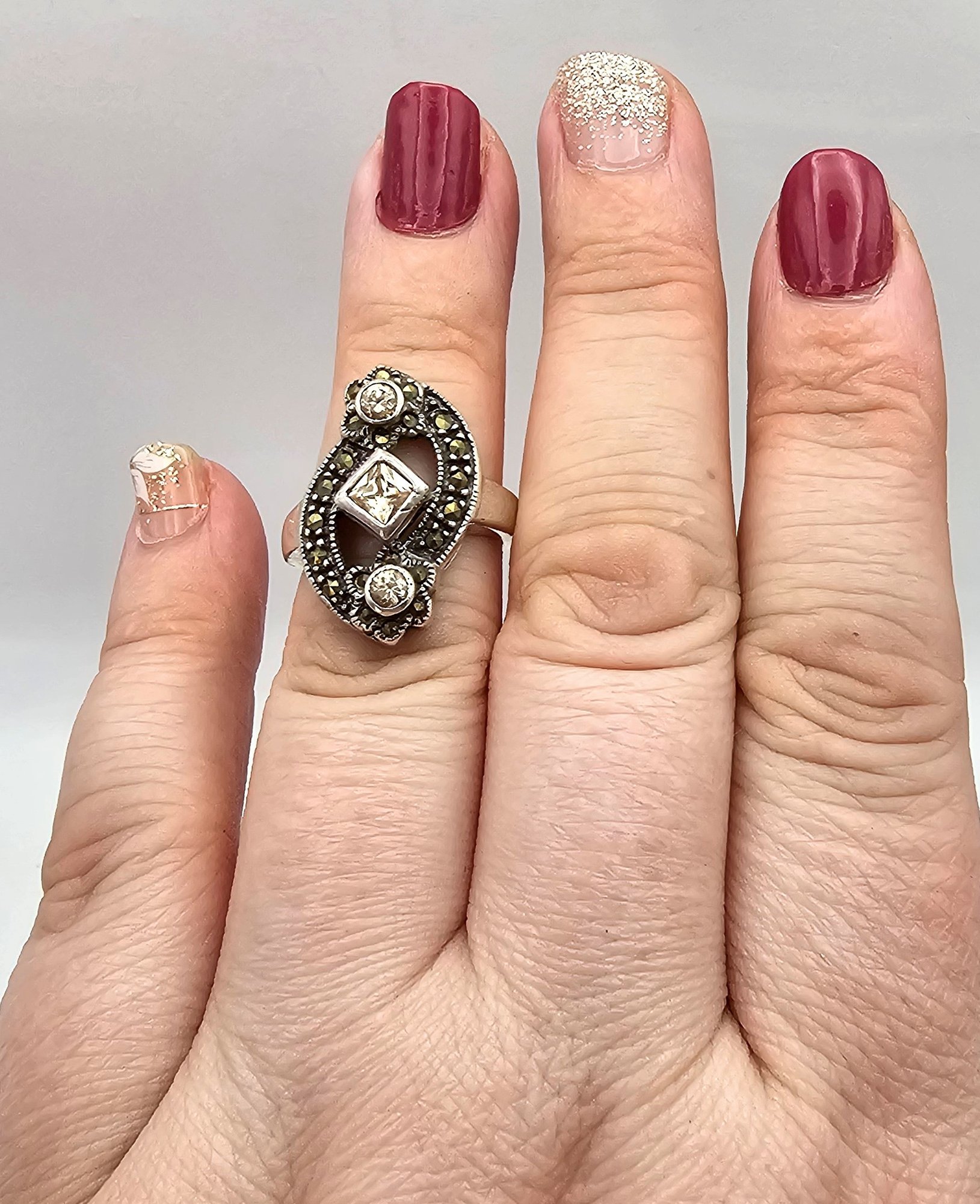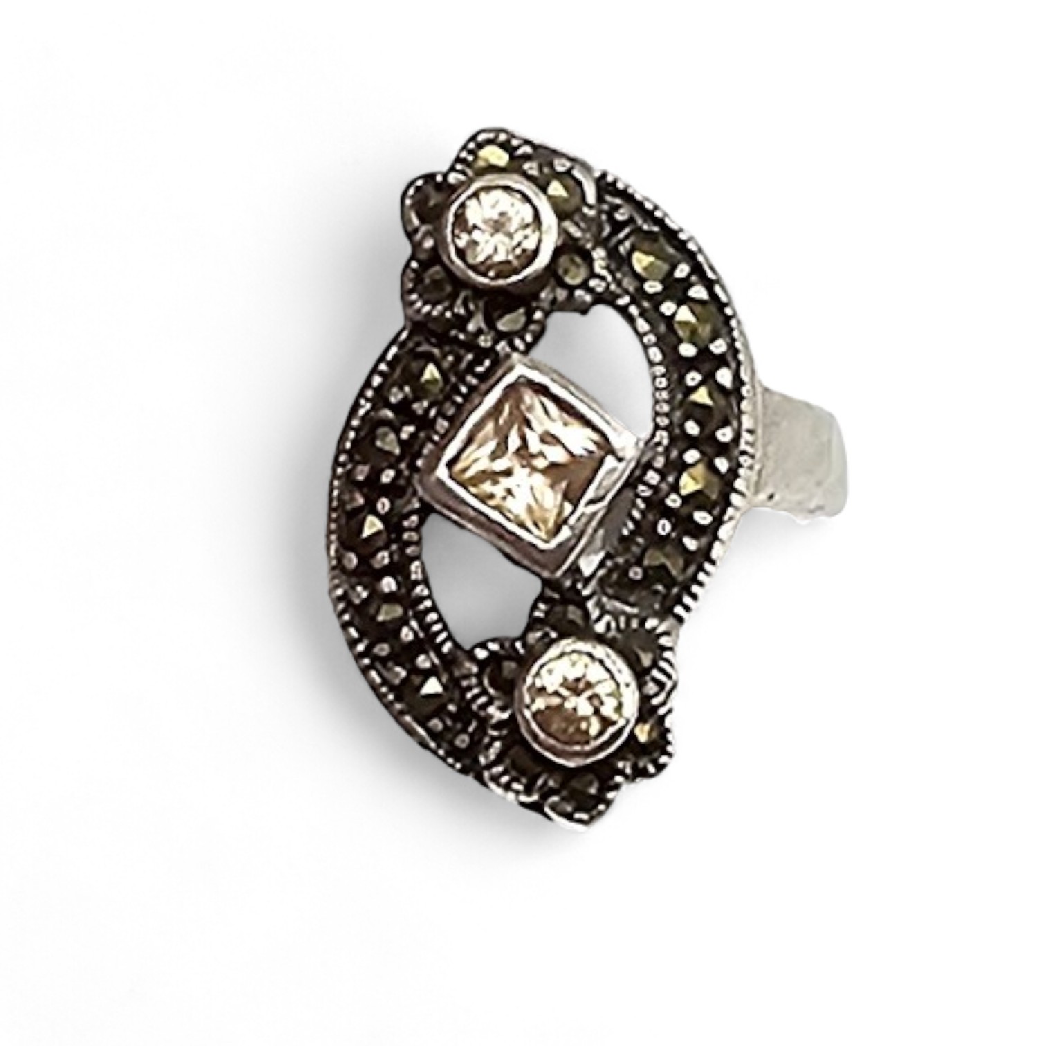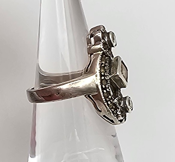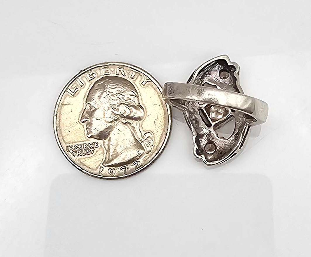 Marcasite Rhinestone Sterling Silver Cocktail Ring Size 5.5 5.8 G