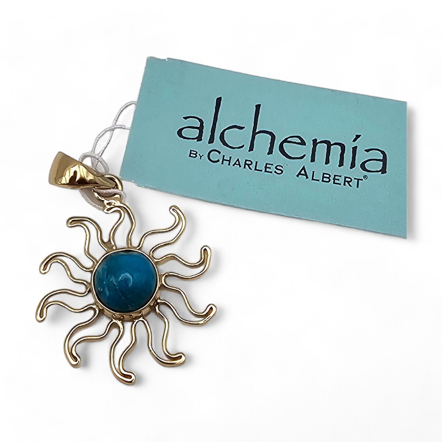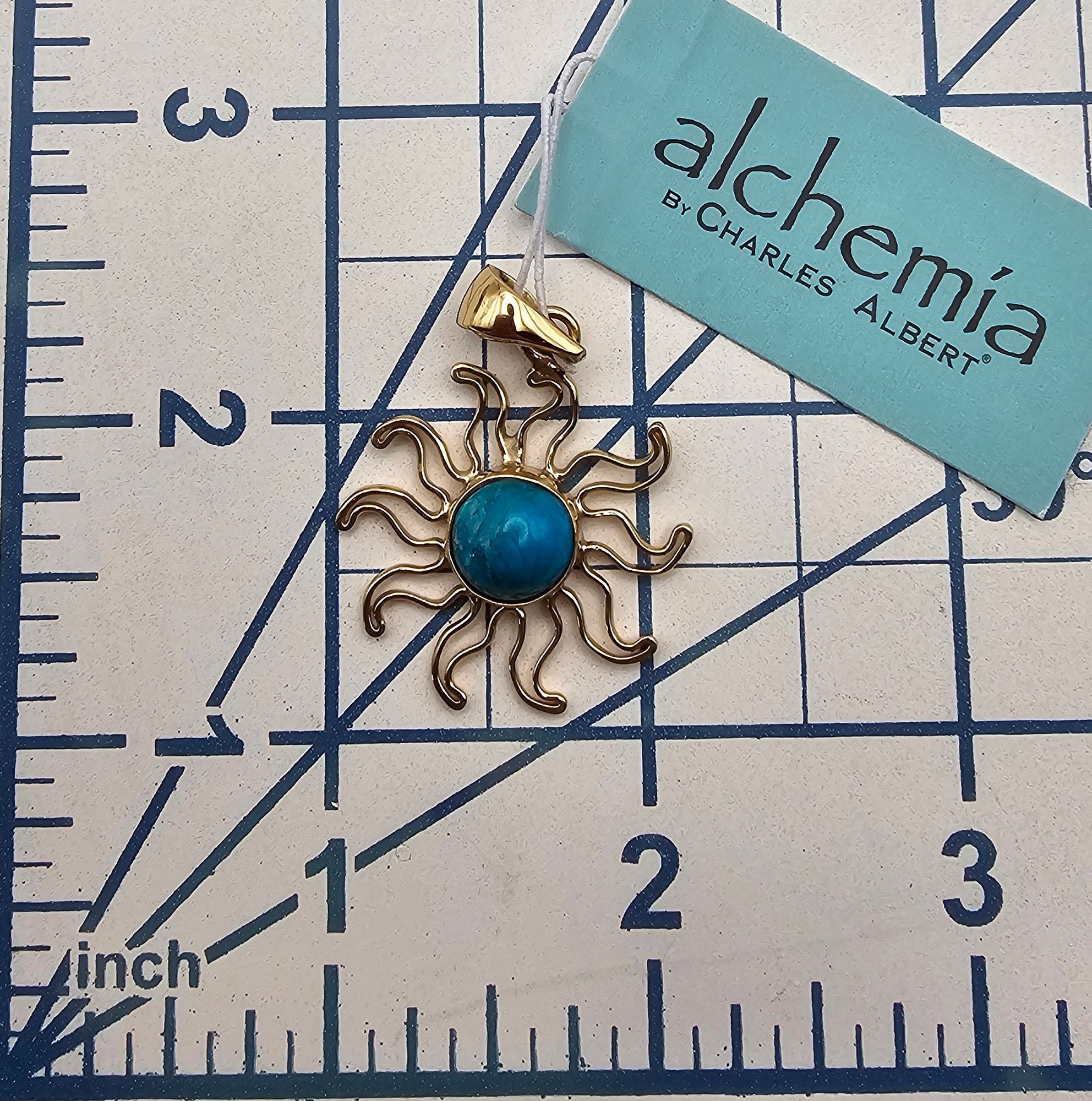 NWT Charles Albert Chrysocolla Gold Over Sterling Silver Sun Pendant 4.3 G