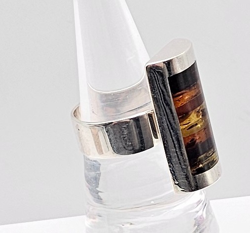 New Great High Quality Poland Multi Color Amber Sterling Silver Half Cycling Ring Adjustable 8.9 G