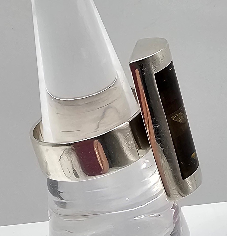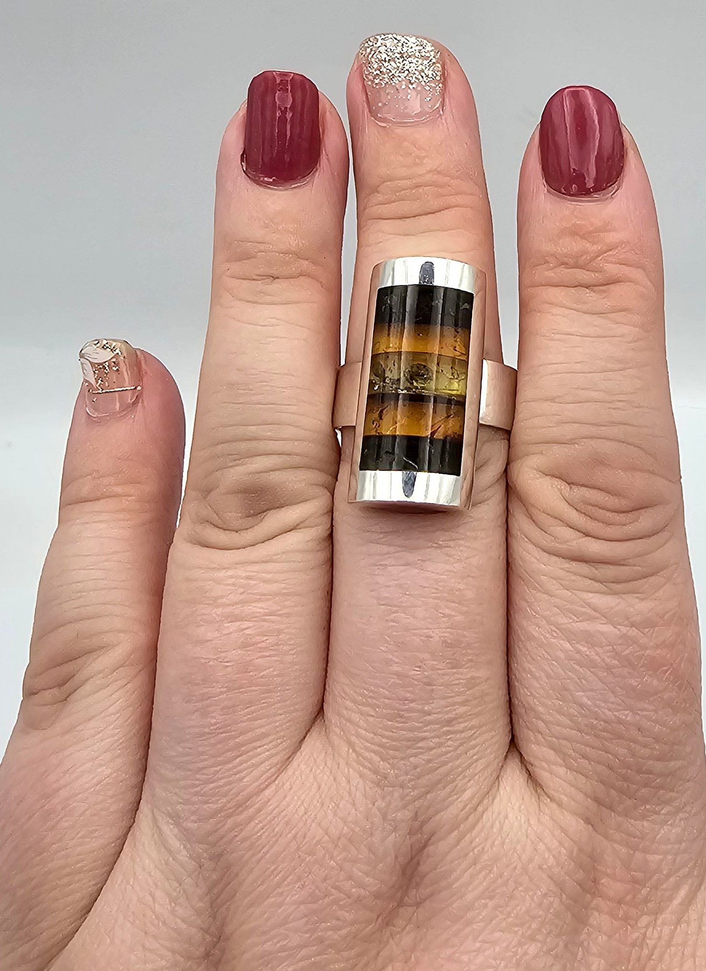 New Great High Quality Poland Multi Color Amber Half Cylinder Sterling Silver Ring Size 10 8.8 G