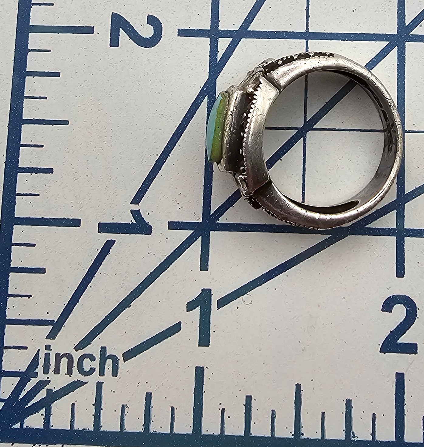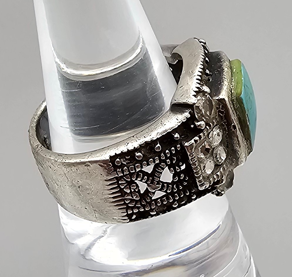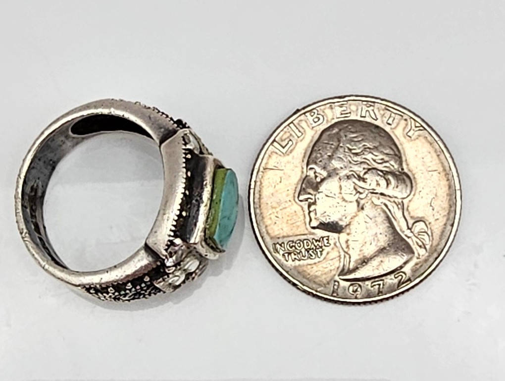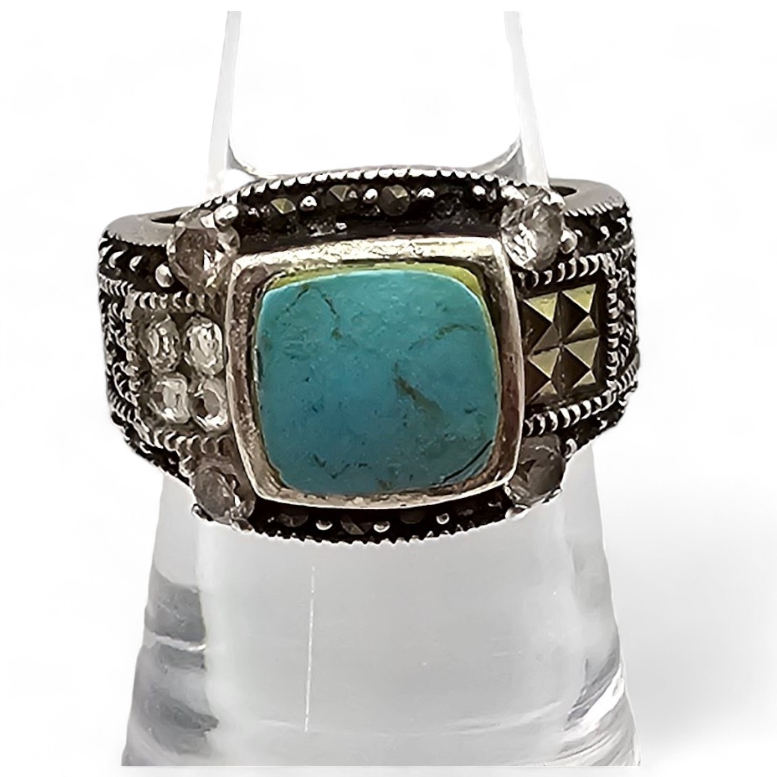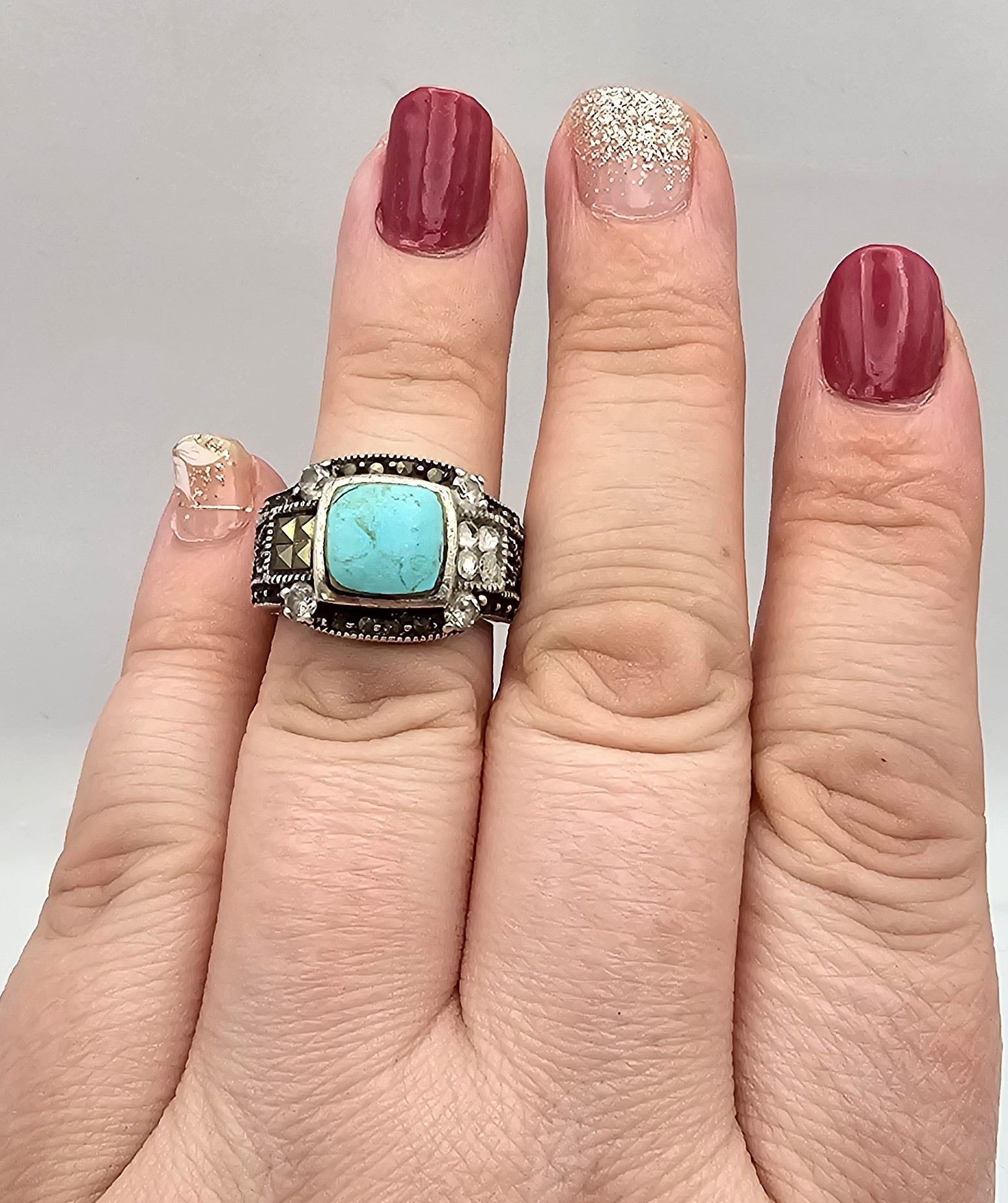 R Faux Turquoise Marcasite Sterling Silver Cocktail Ring Size 6 6.8 G