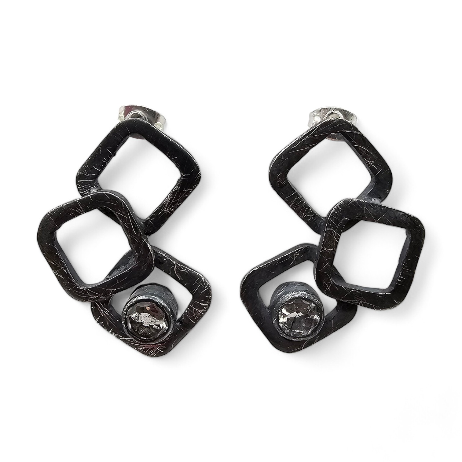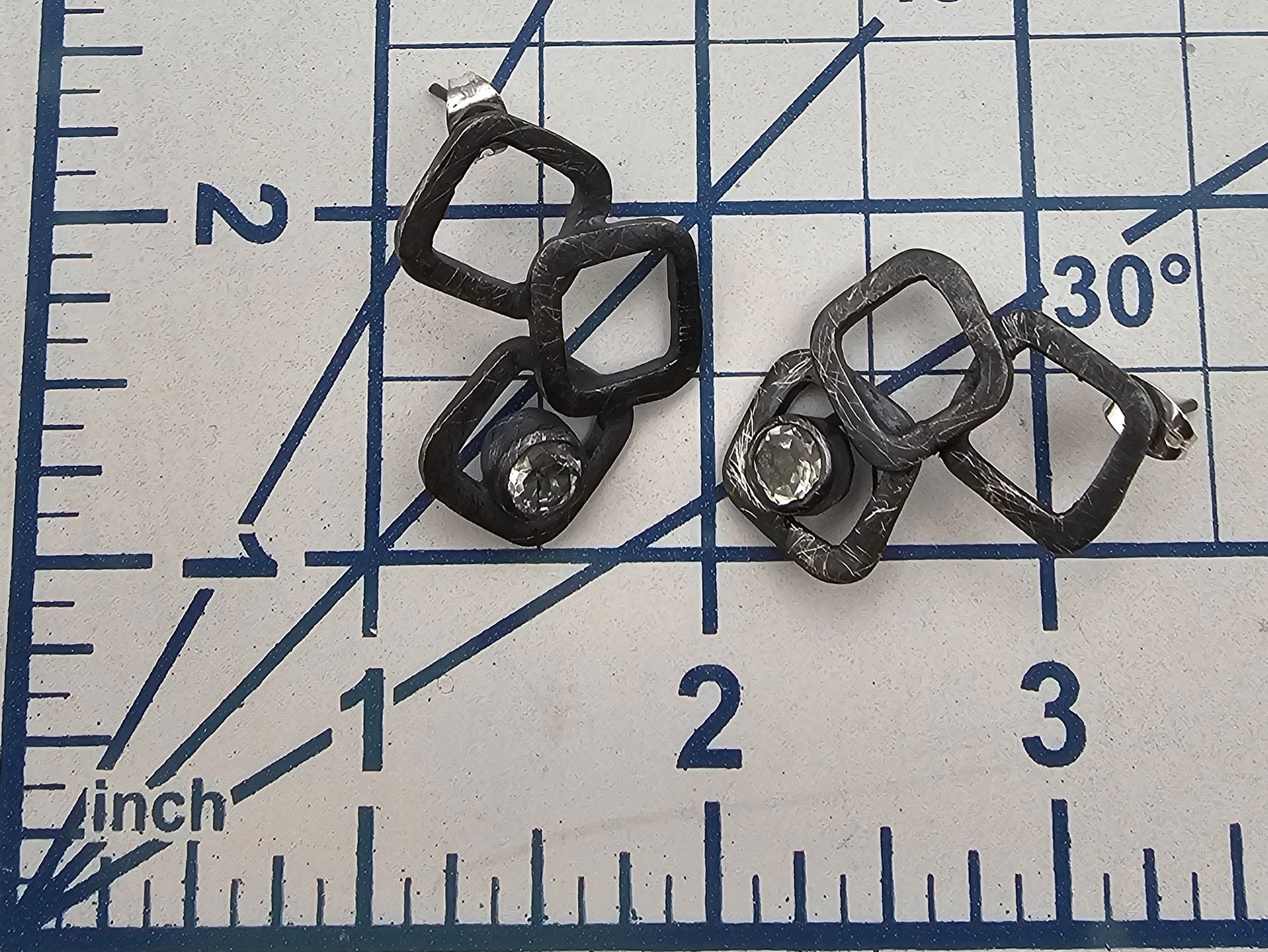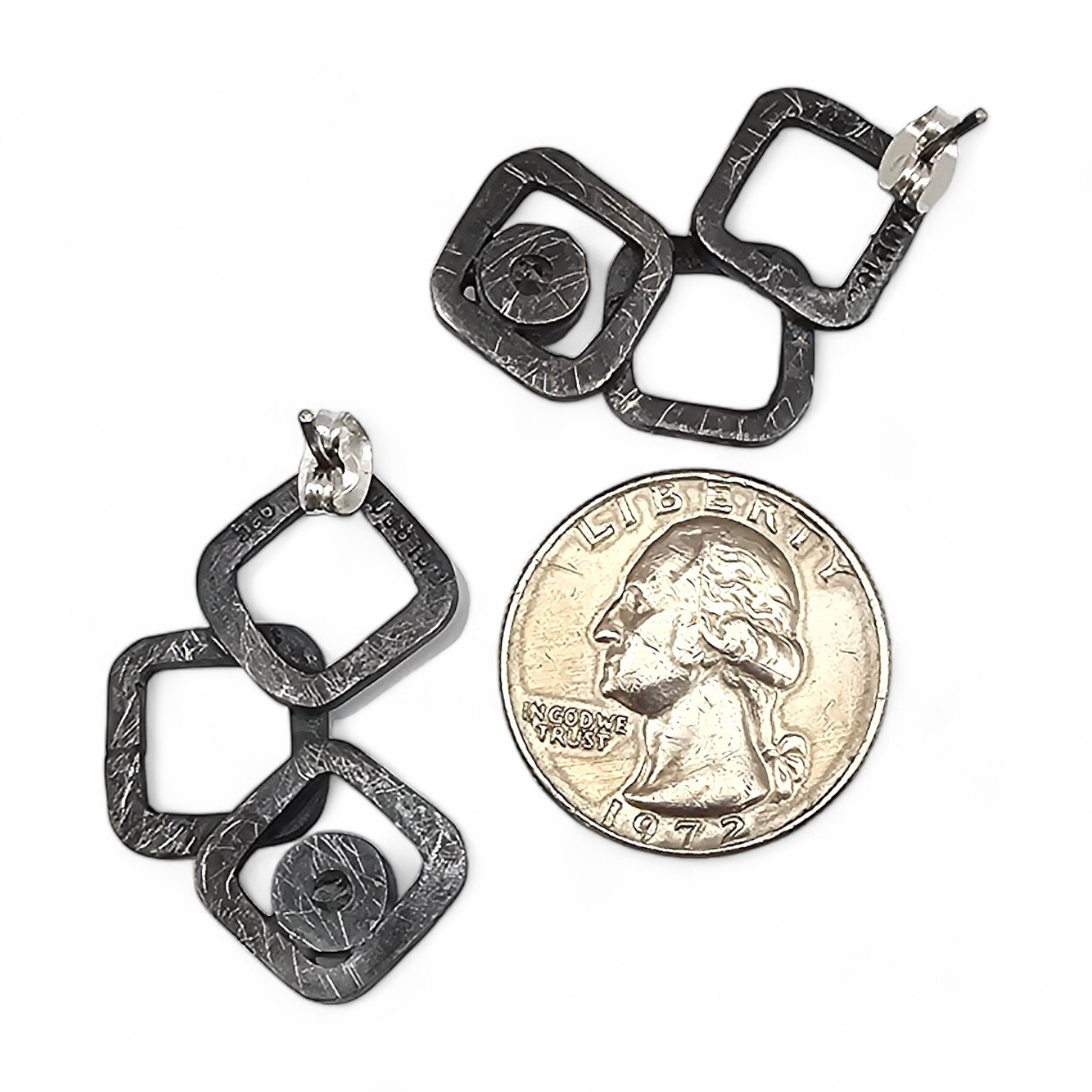 New Balaam Monica Zamora Green Amethyst Oxidized Sterling Silver Triple Square Earrings 11.2 G