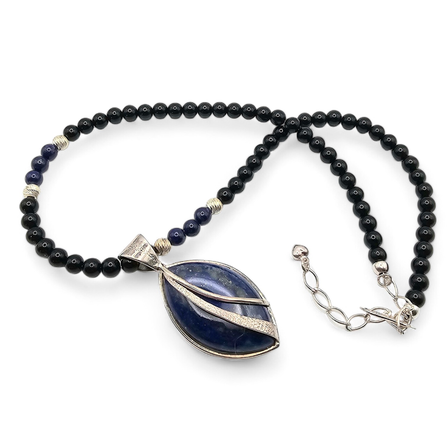 Jay King Mine Finds Obsidian Lapis Sterling Silver Necklace 46.8 G