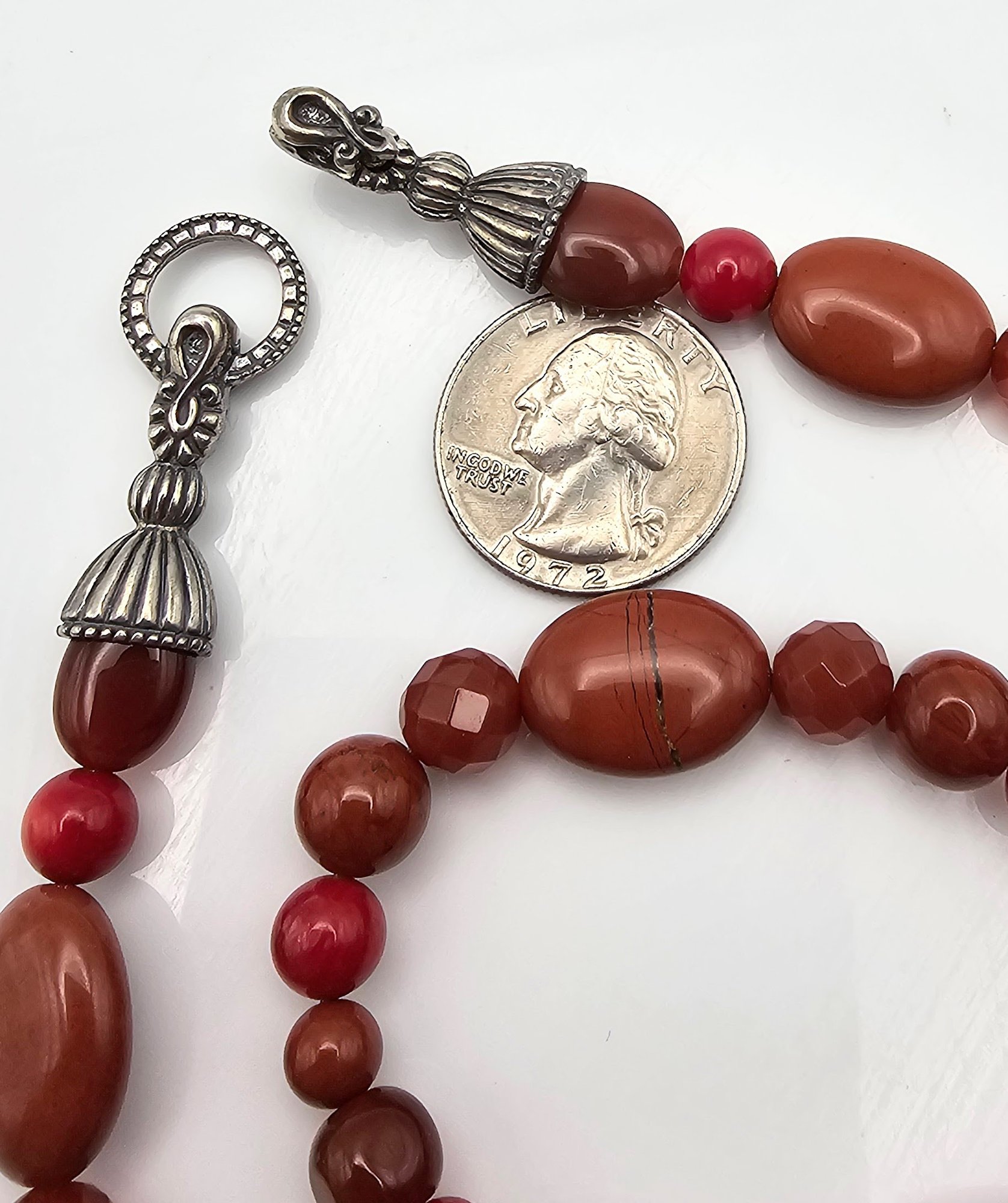 Carolyn Pollack Relios Carnelian Jasper Coral Sterling Silver Necklace 54.7 G