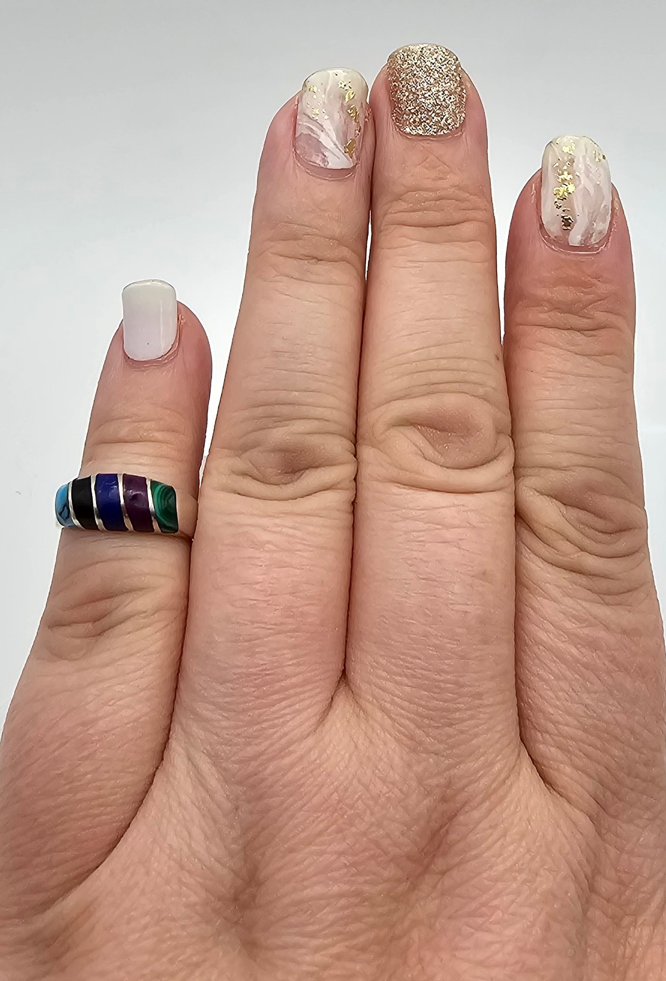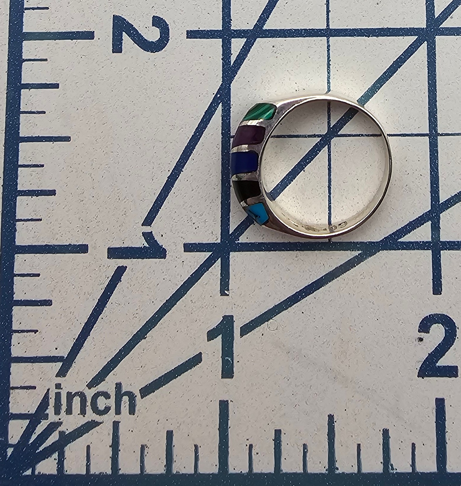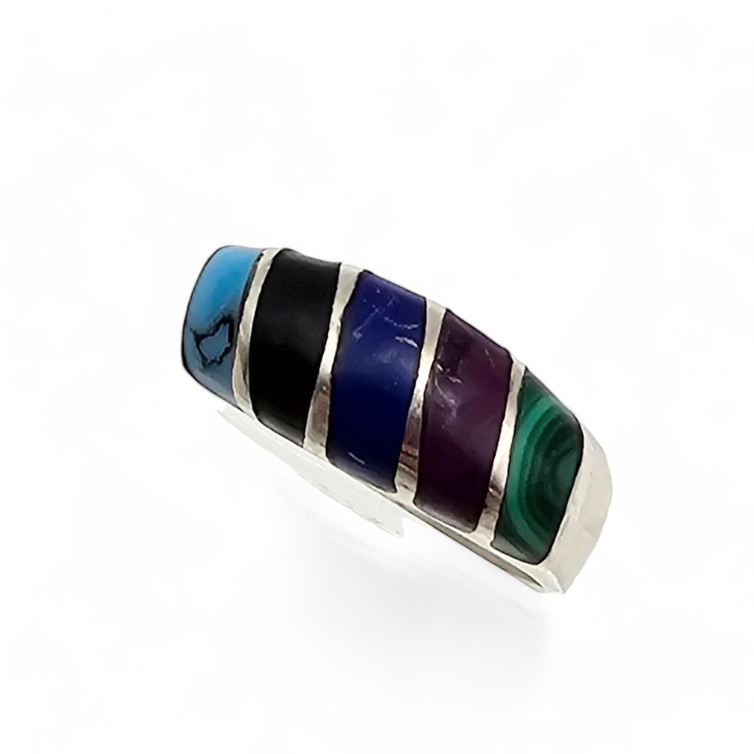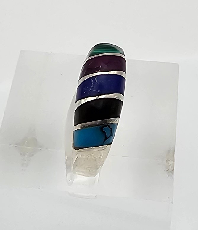 Mexico Taxco TM- 09 Multi Gemstone Sterling Silver Ring Size 4 2.7g