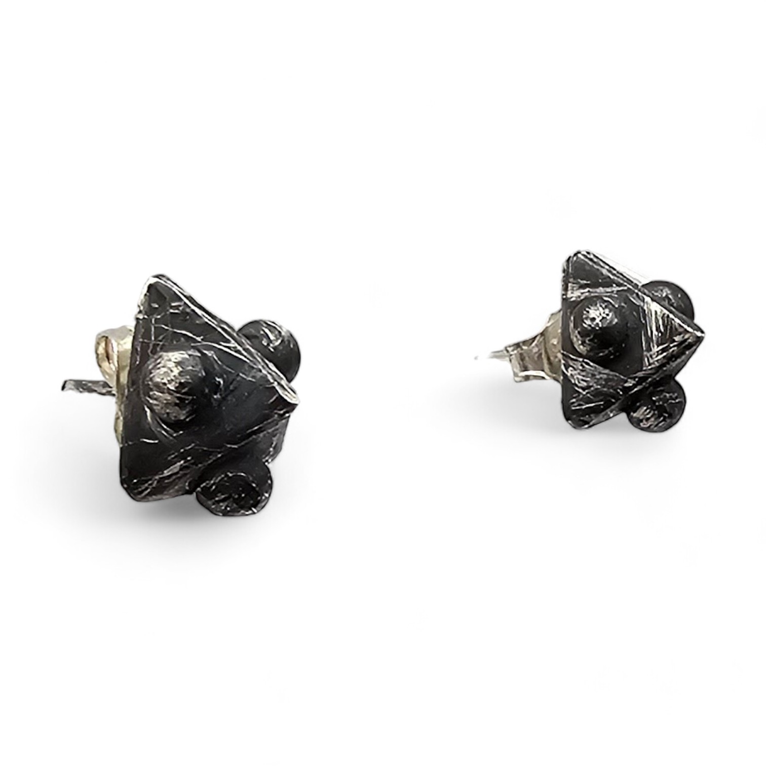 New Balaam Monica Zamora Oxidized Sterling Silver Studded Pyramid Earrings 2.8 G