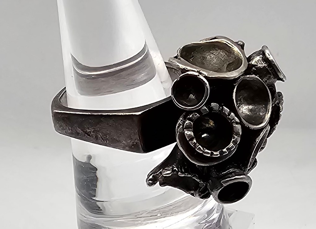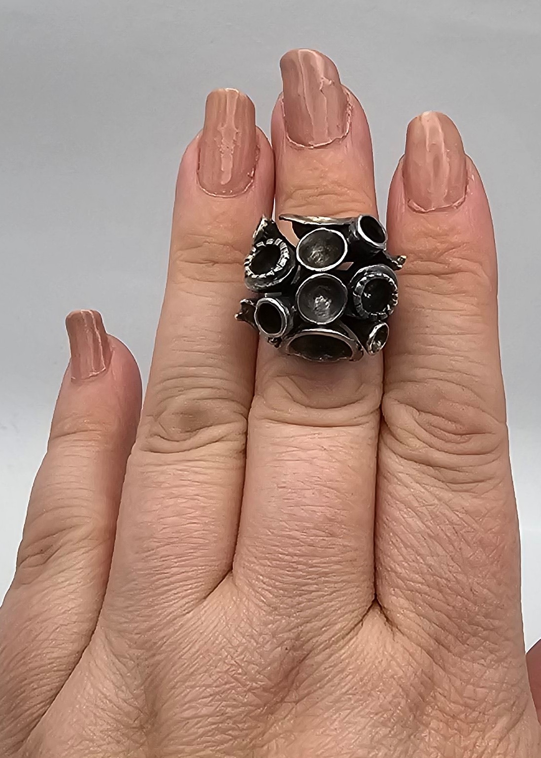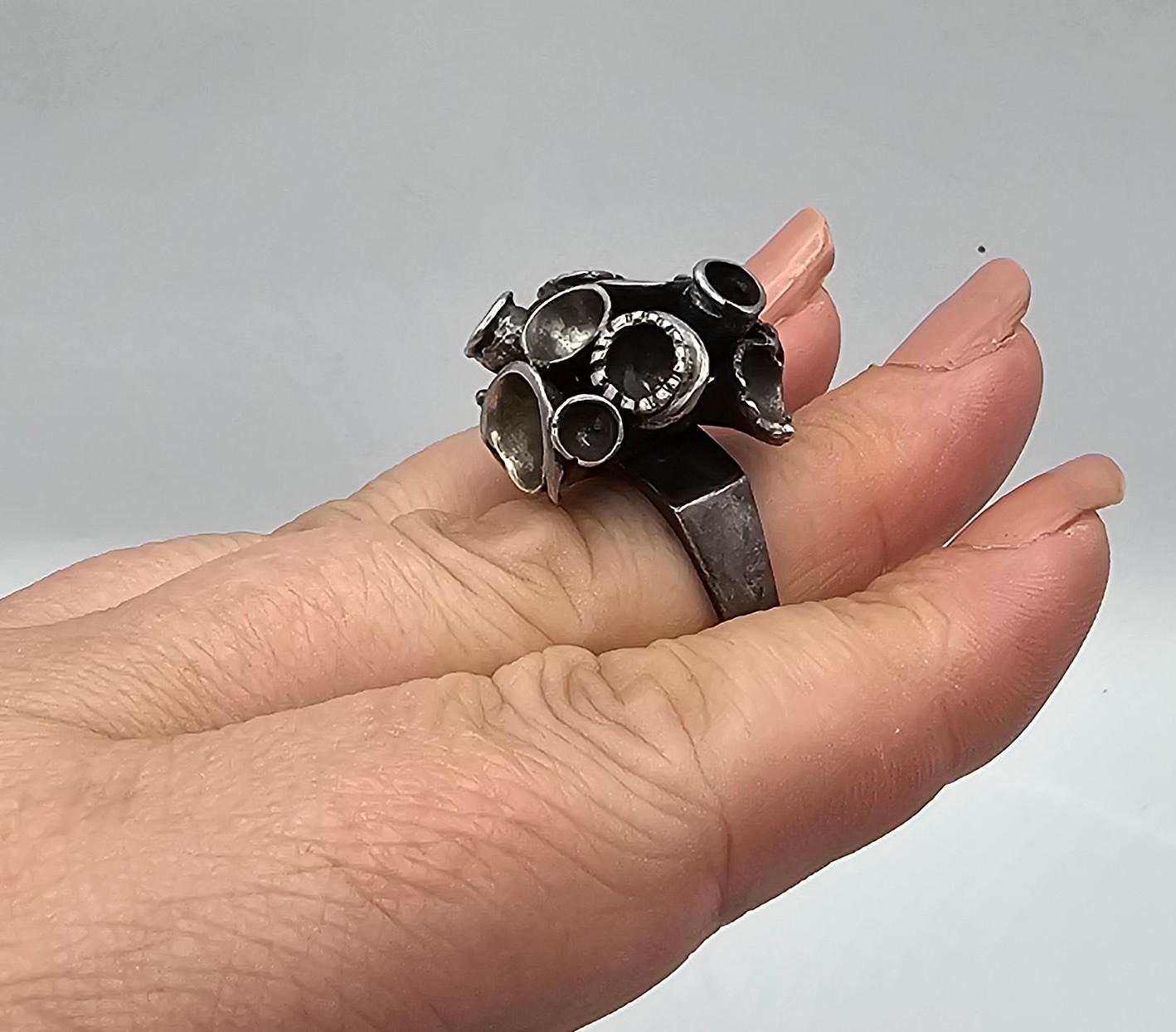 Chunky Modernist Sterling Silver Ring Size 5.75 15.9 G