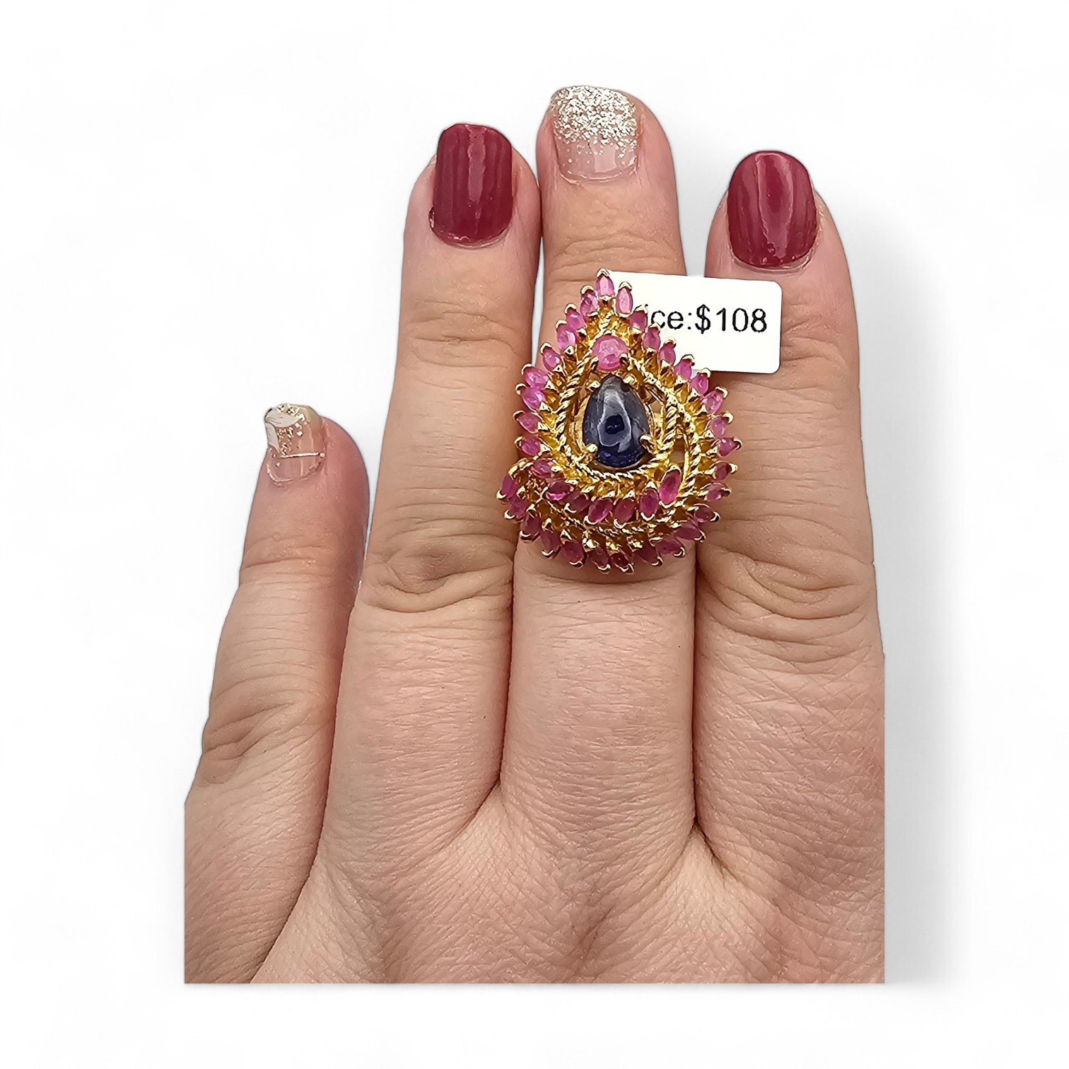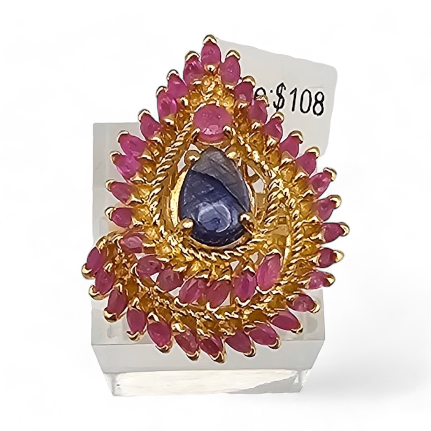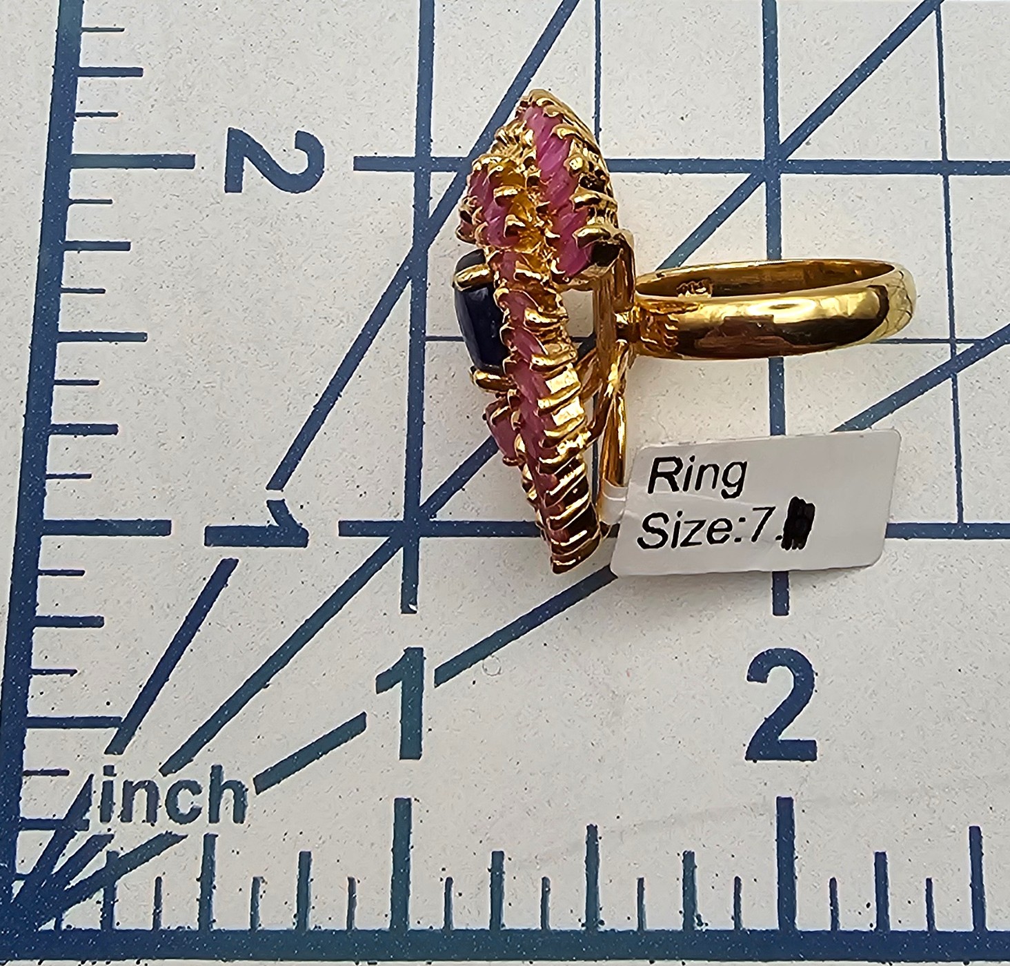 NWT Genuine Sapphire Ruby Gold Over Sterling Silver Cocktail Ring Size 7 12 G