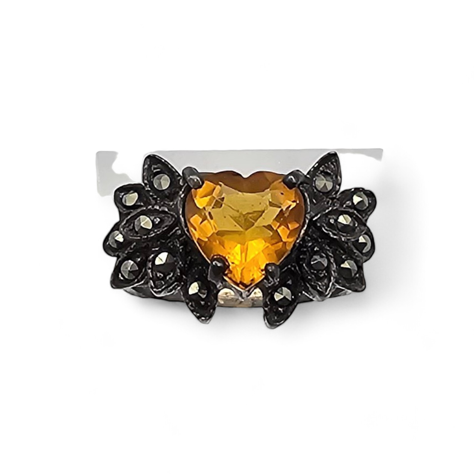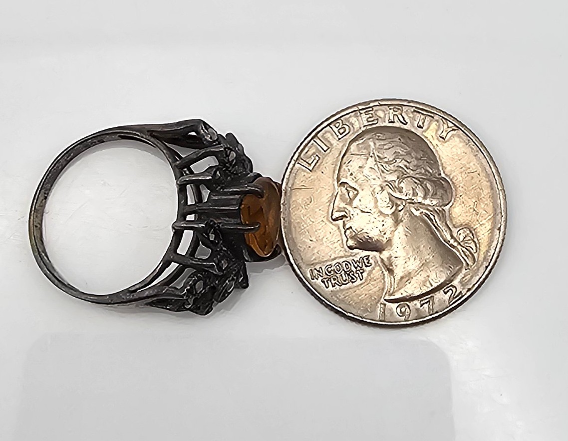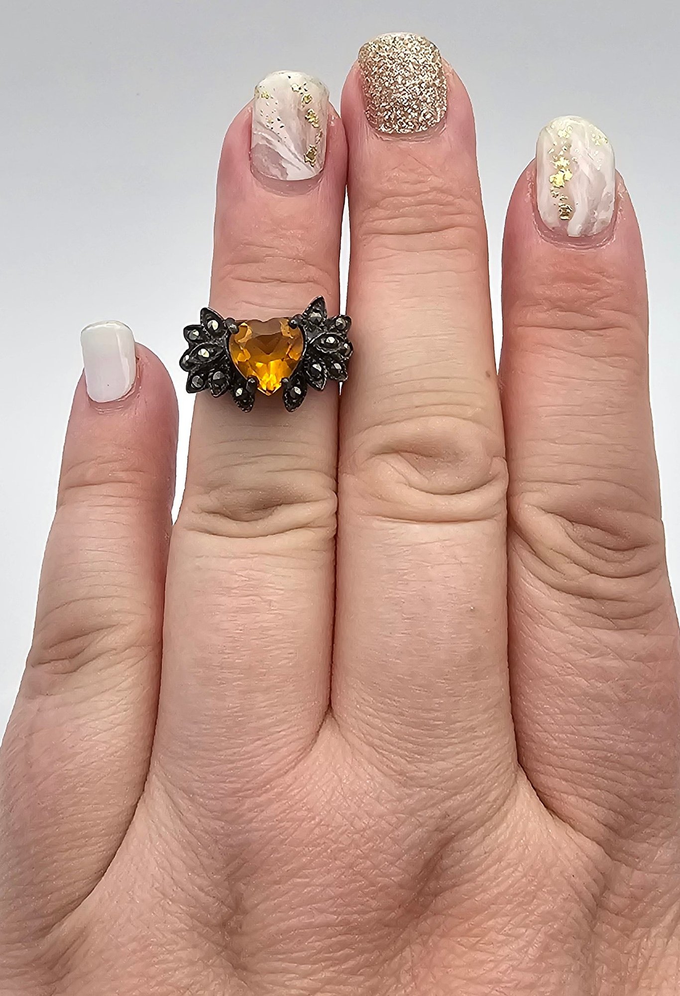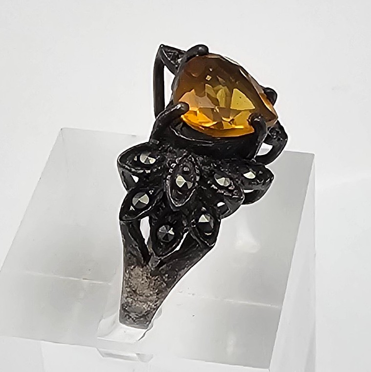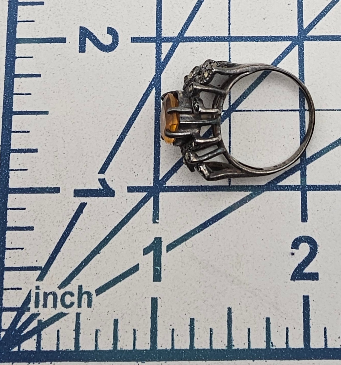 Rhinestone Marcasite Sterling Silver Cocktail Ring Size 5.25 4 G