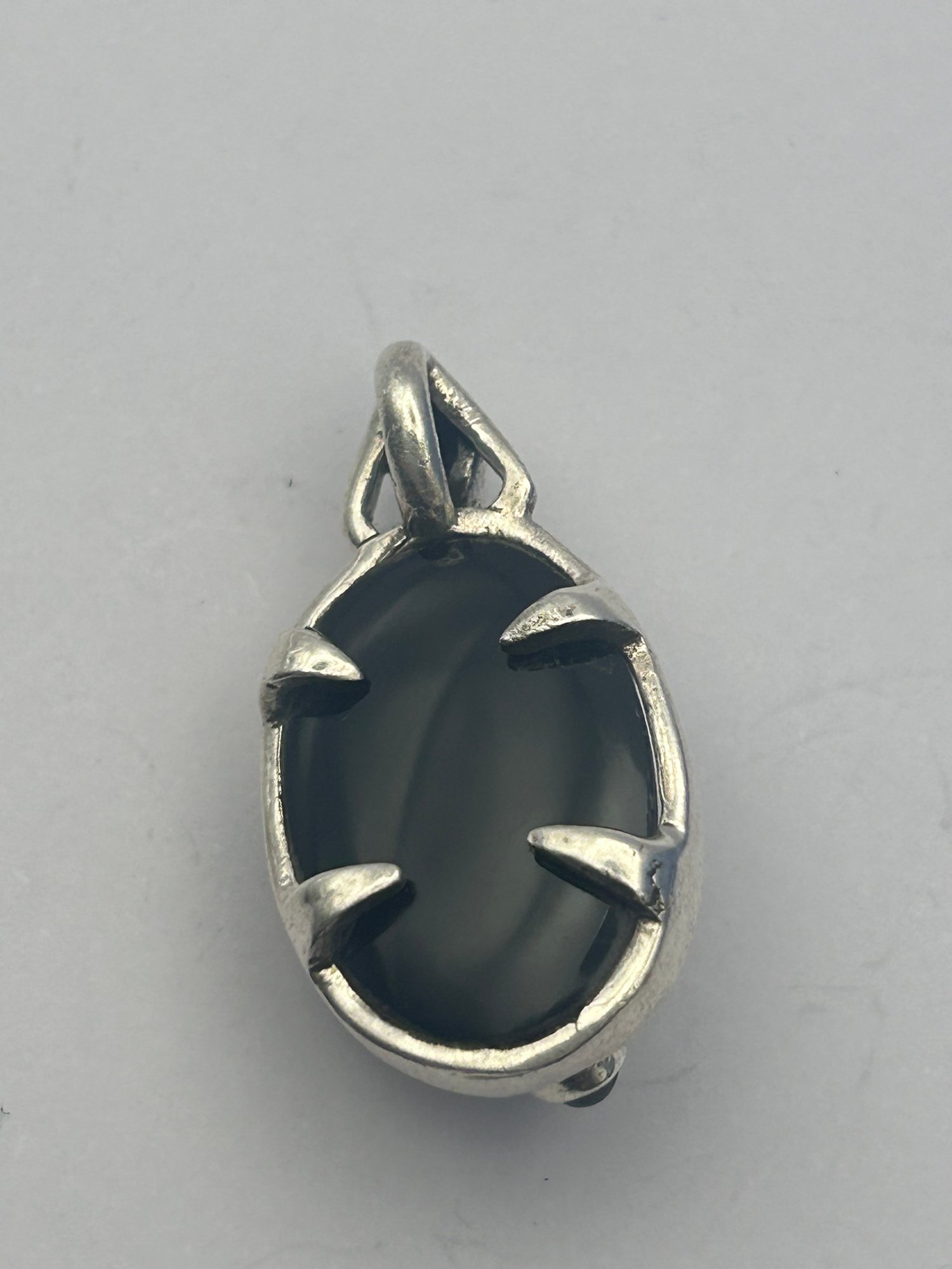 Sterling Silver Pendant With Large Oval Black Stone. 9.49 G