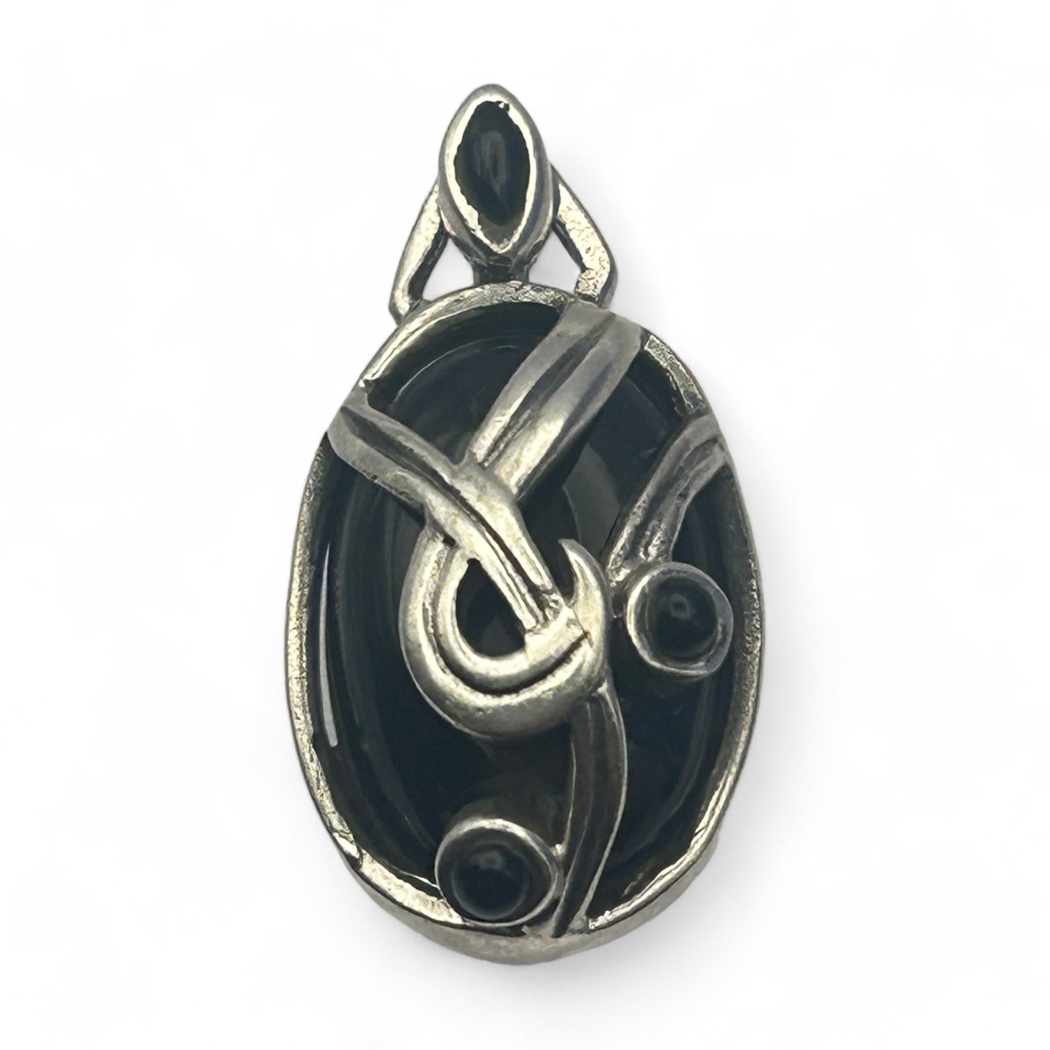 Sterling Silver Pendant With Large Oval Black Stone. 9.61 G.