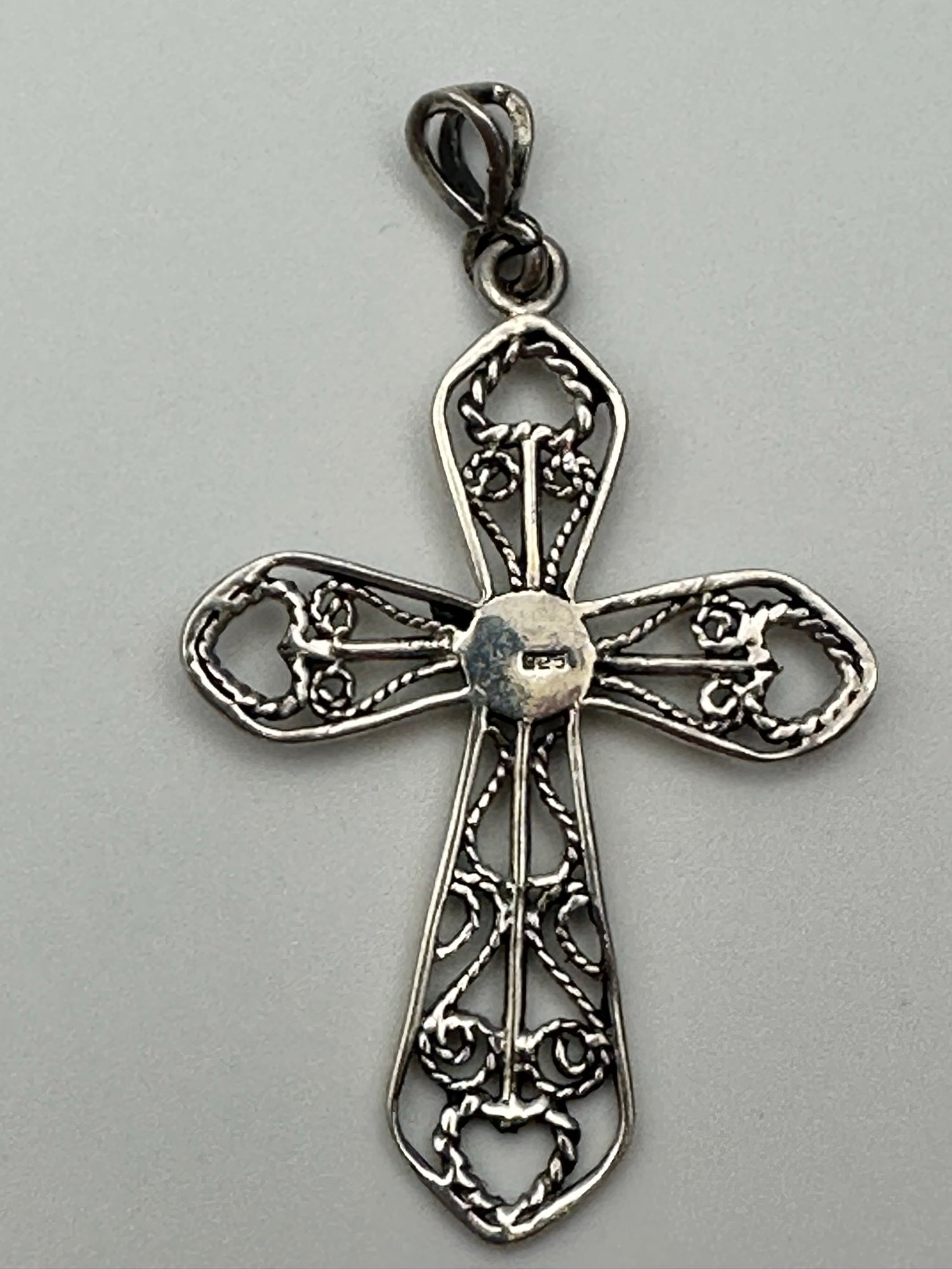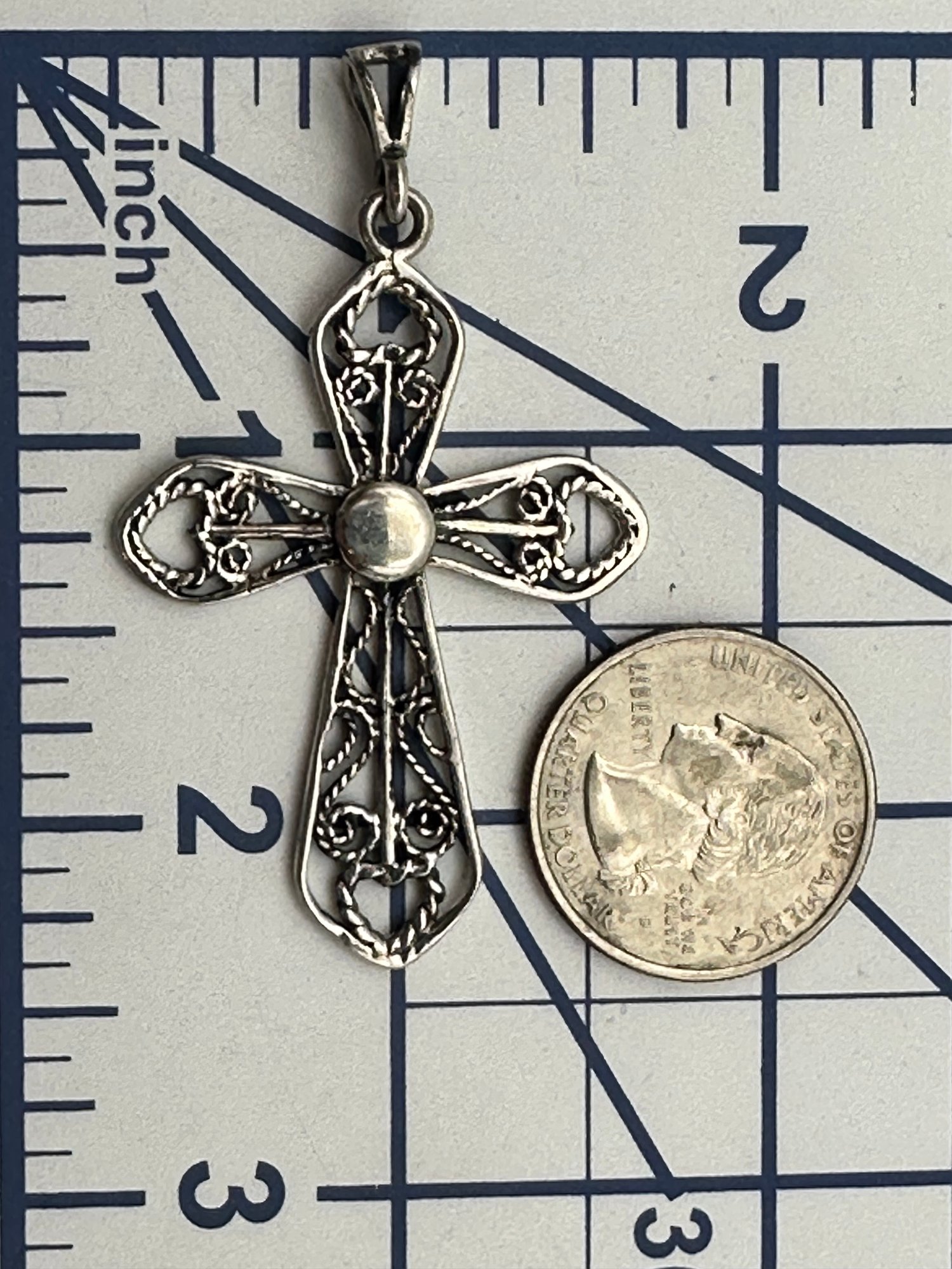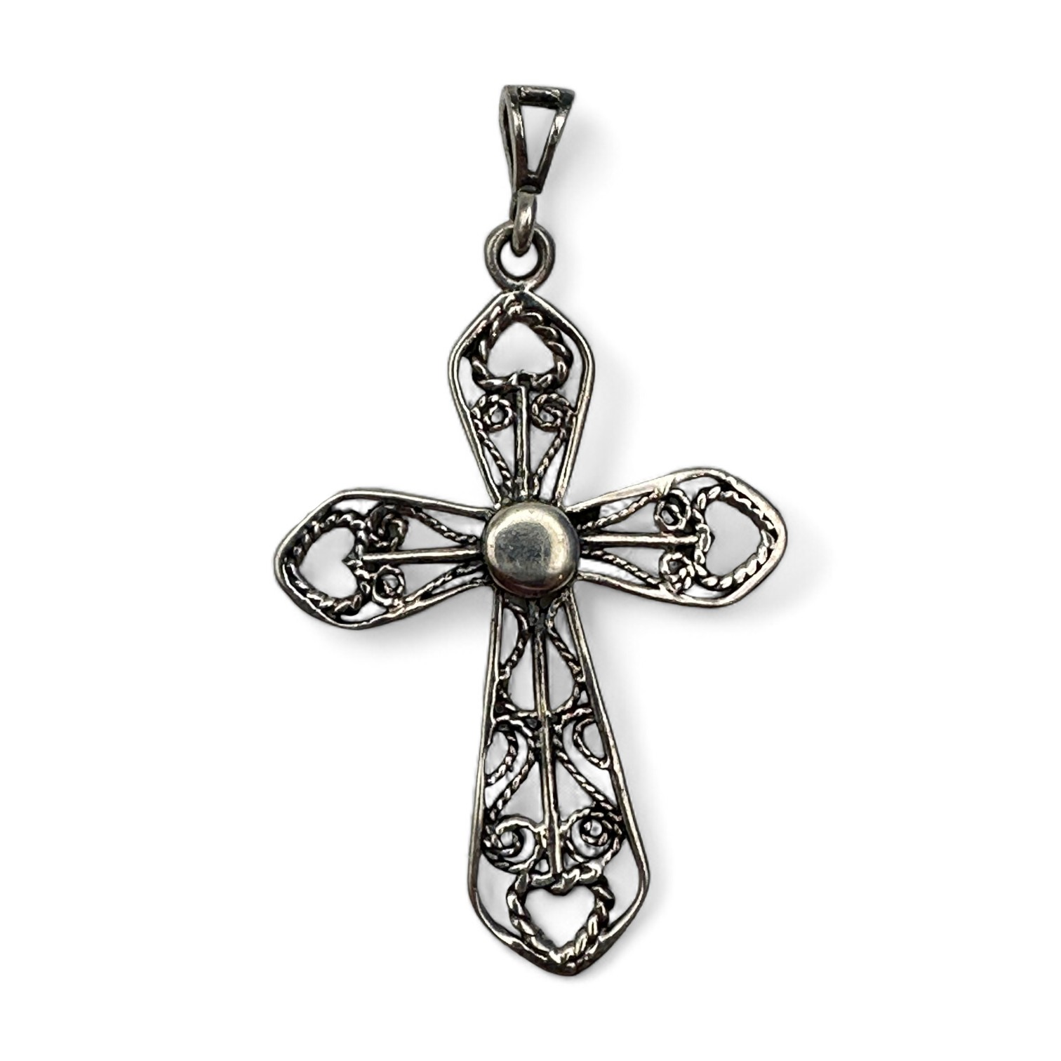 Sterling Silver Cross Pendant With Intricate Design, 6.09 G.
