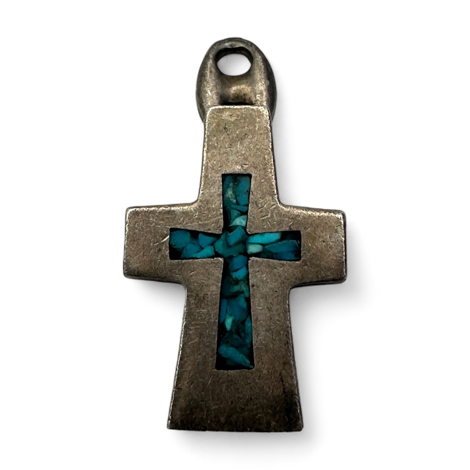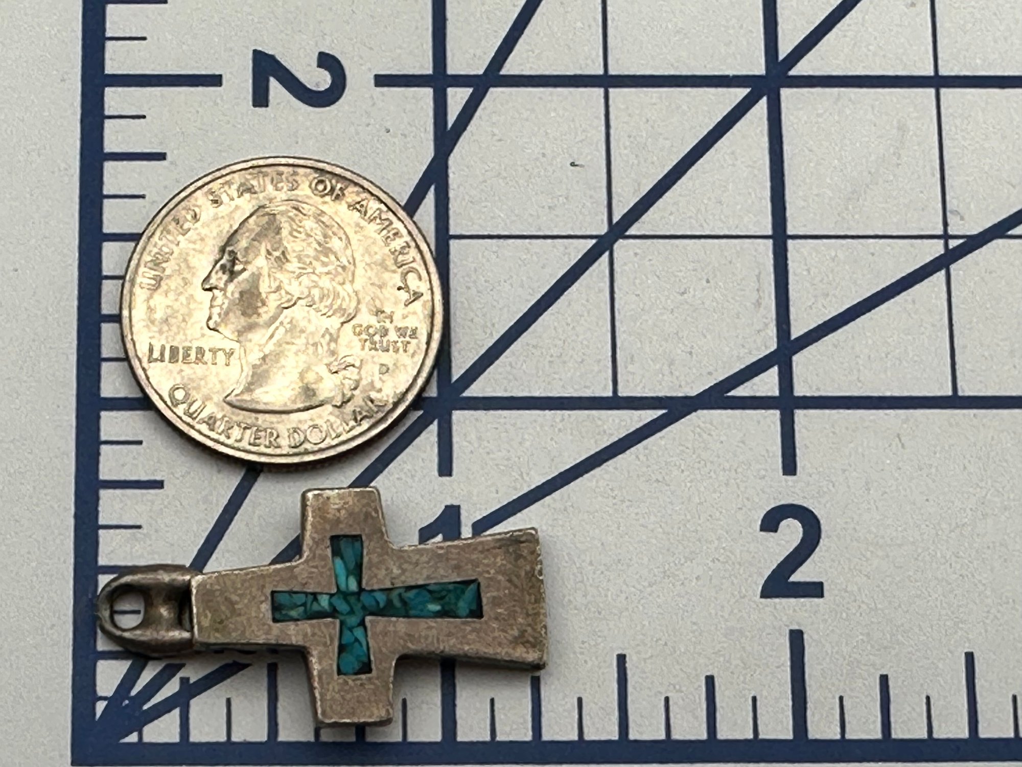 Sterling Silver Cross Pendant With Turquoise Cross Inlay, 5.93 G.