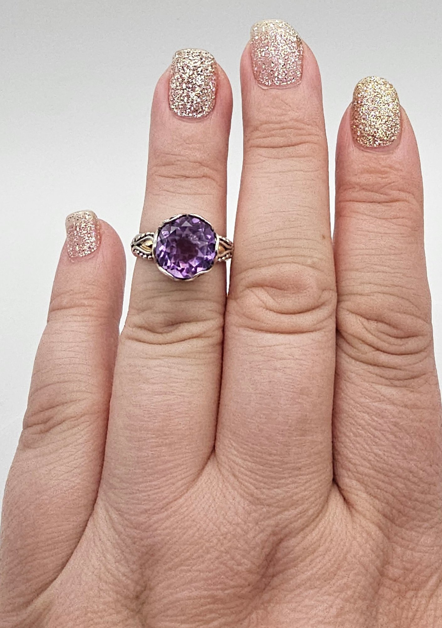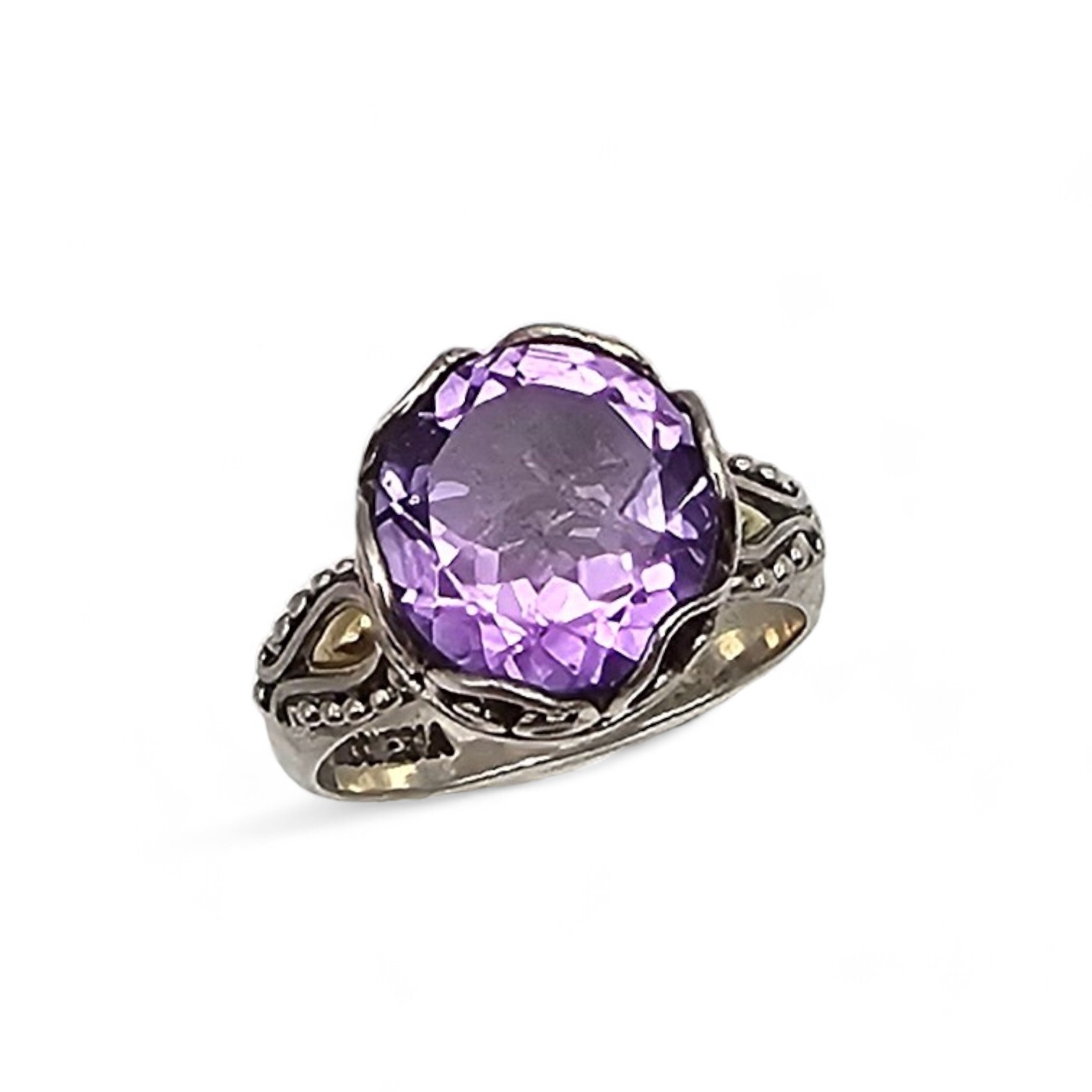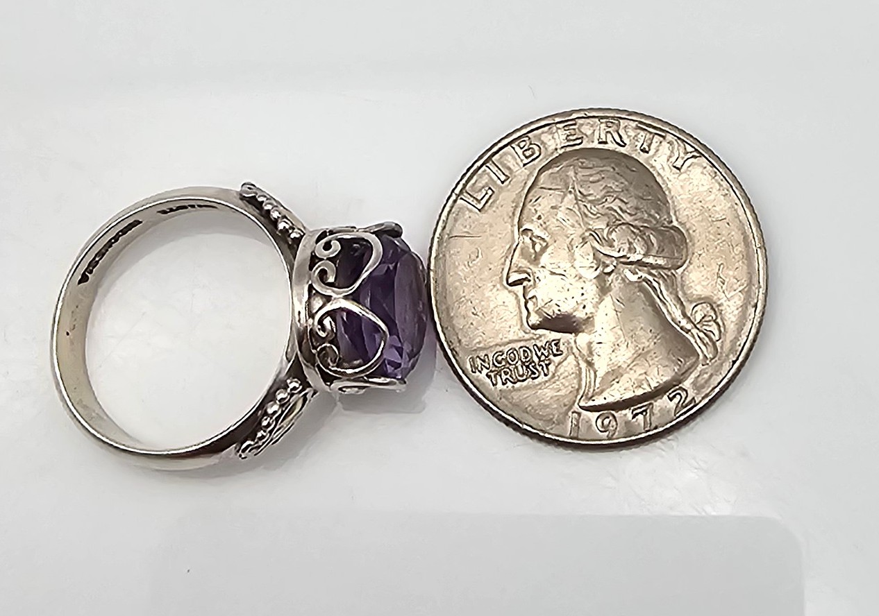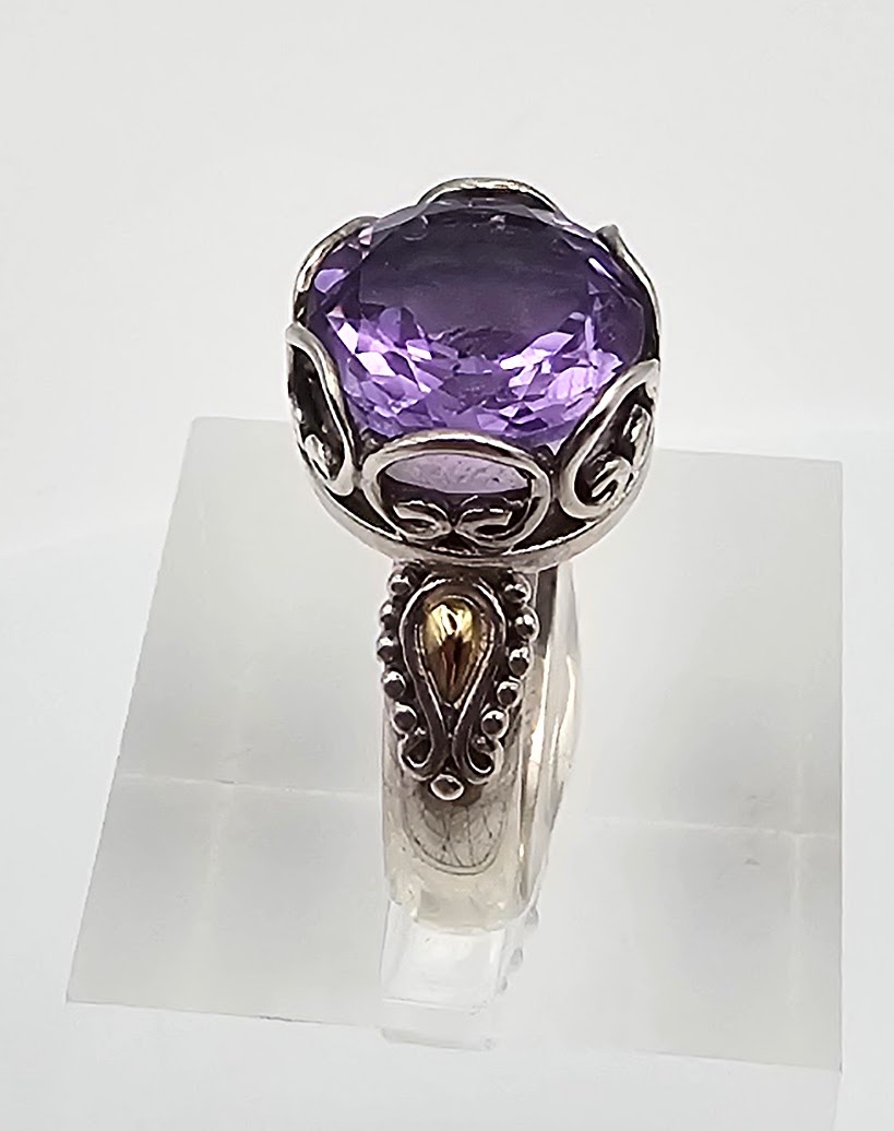 SAURTI Amethyst 18K Gold Sterling Silver Cocktail Ring Size 5.75 4.9 G Approximately 4 TCW