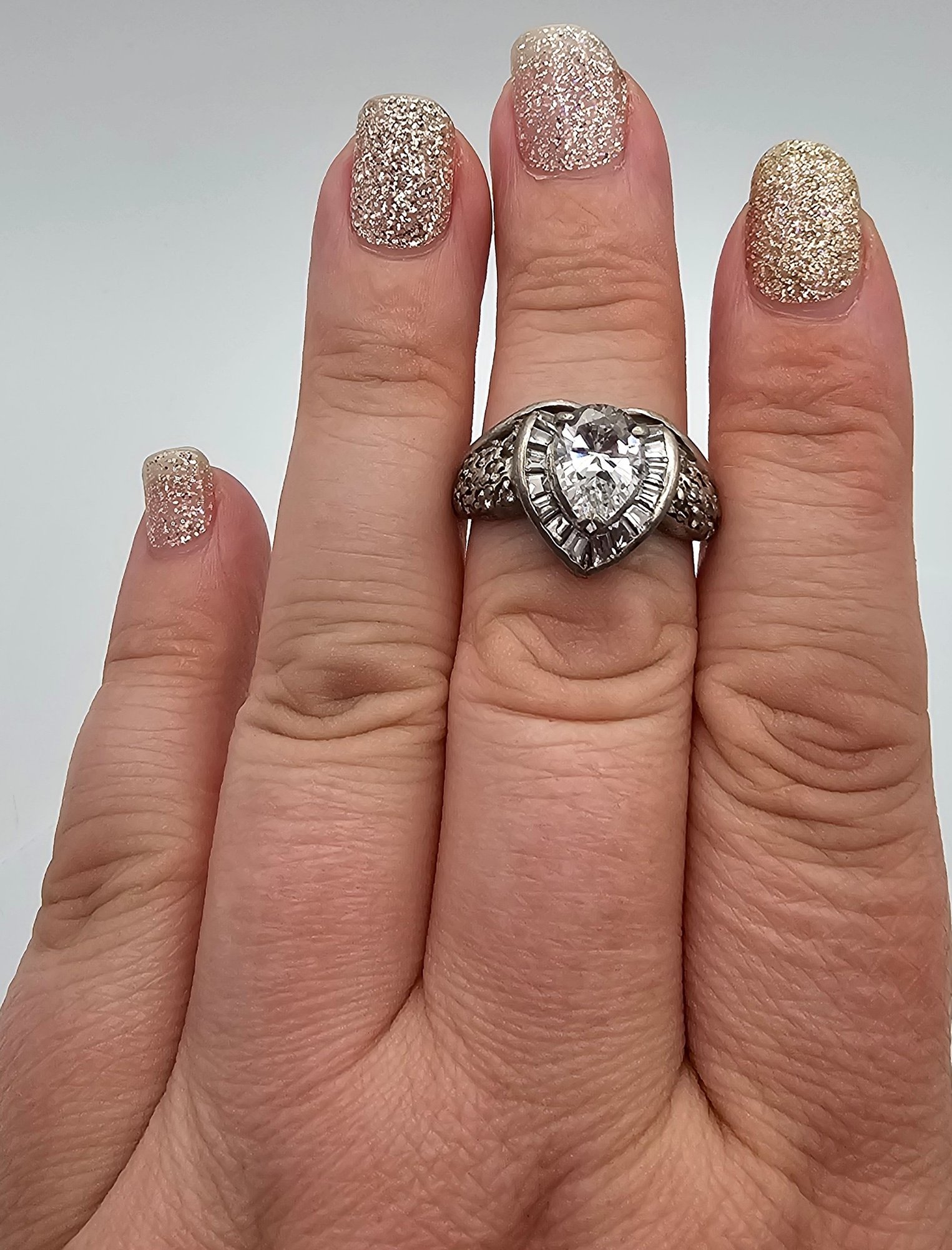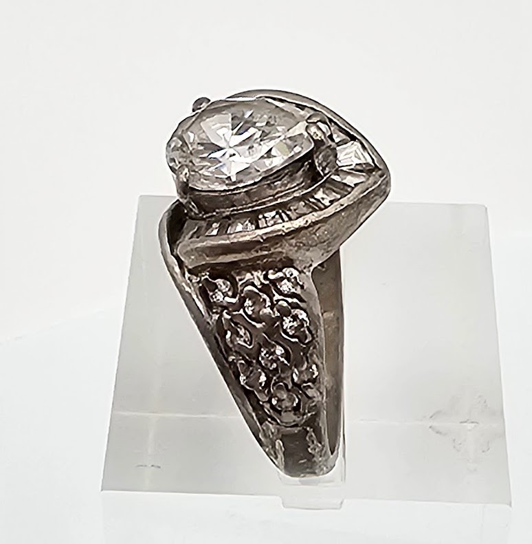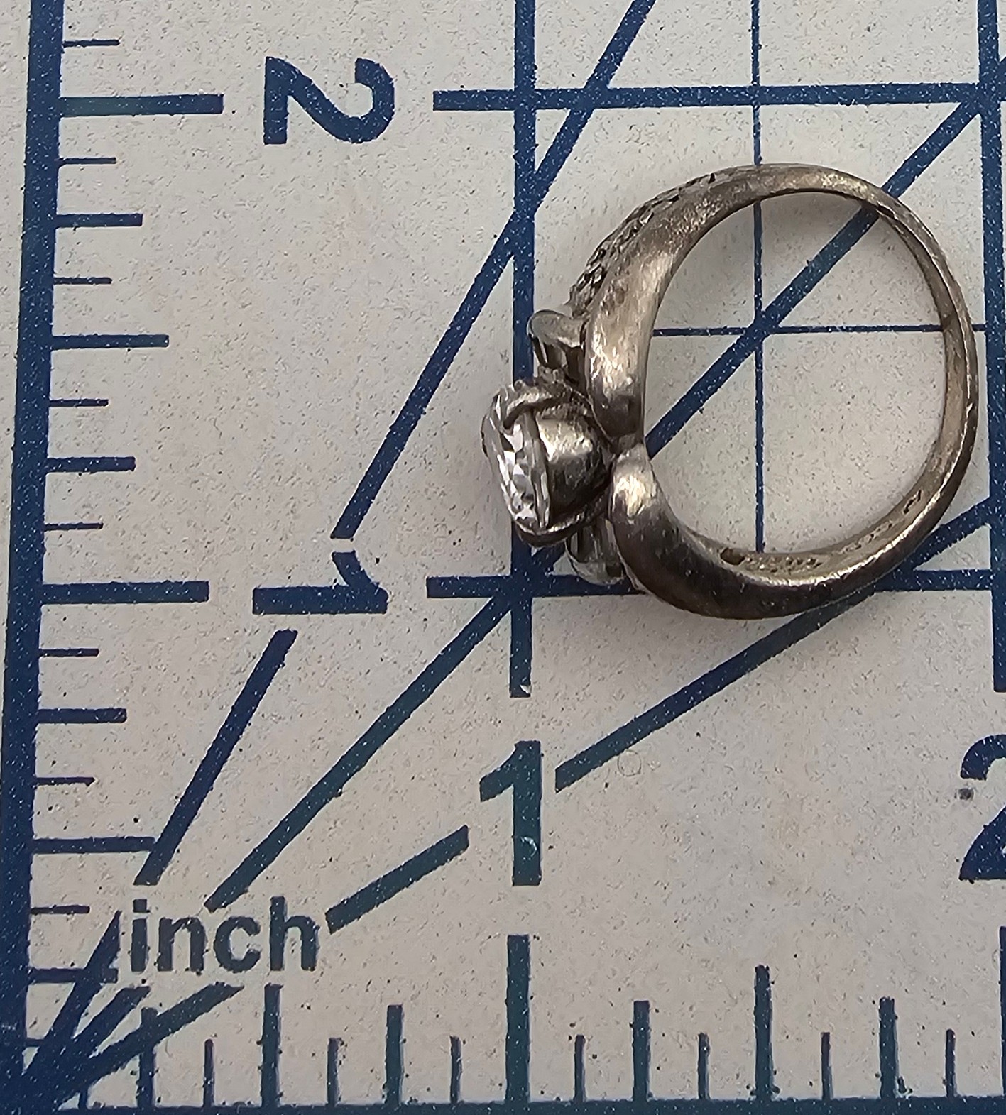 NEJ Cubic Zirconia Sterling Silver Cocktail Ring Size 7.5 6.8 G