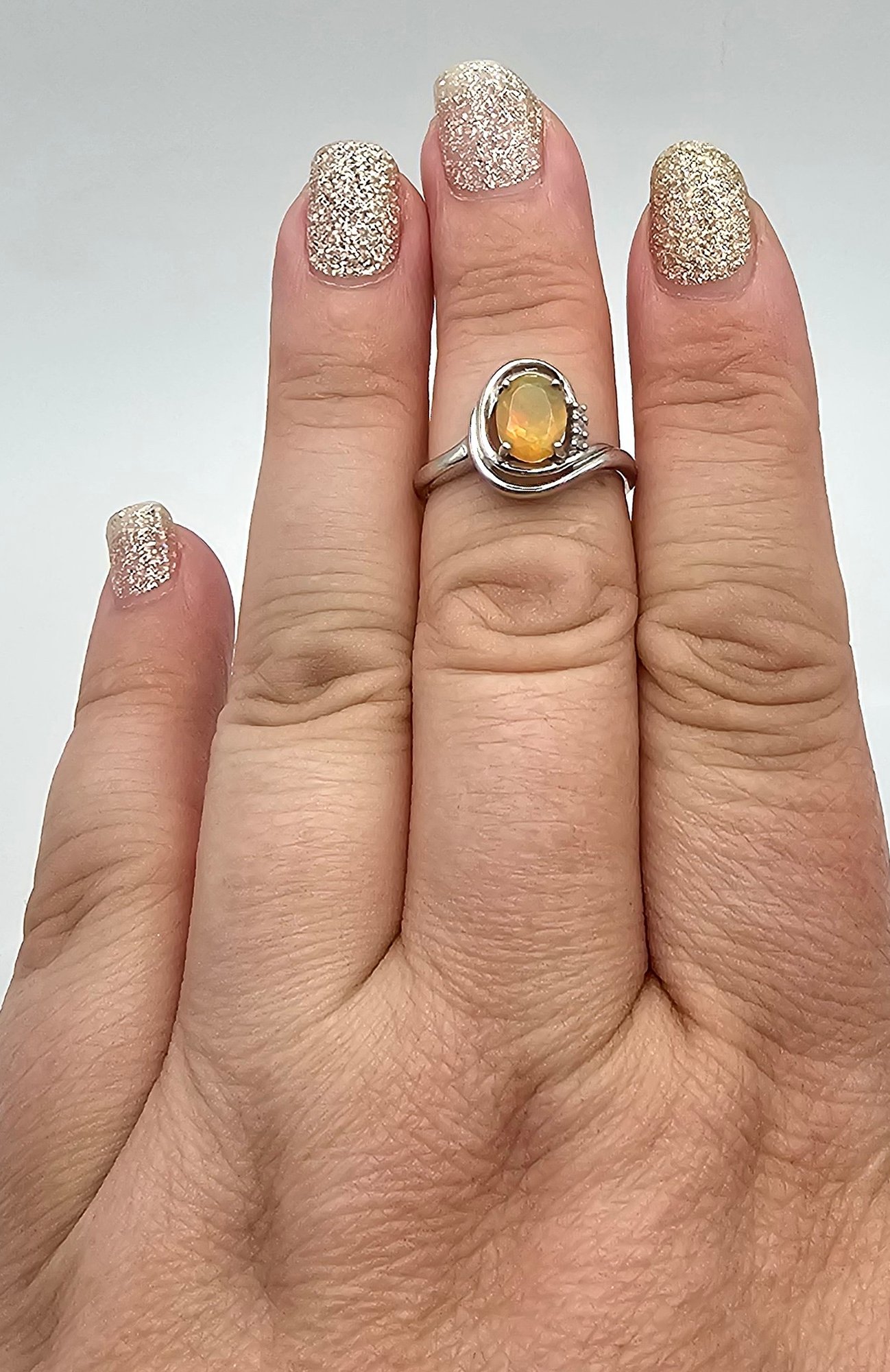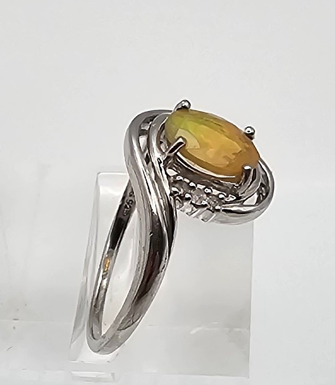 RBG Opal Diamond Sterling Silver Cocktail Ring Size 6.75 2.5 G