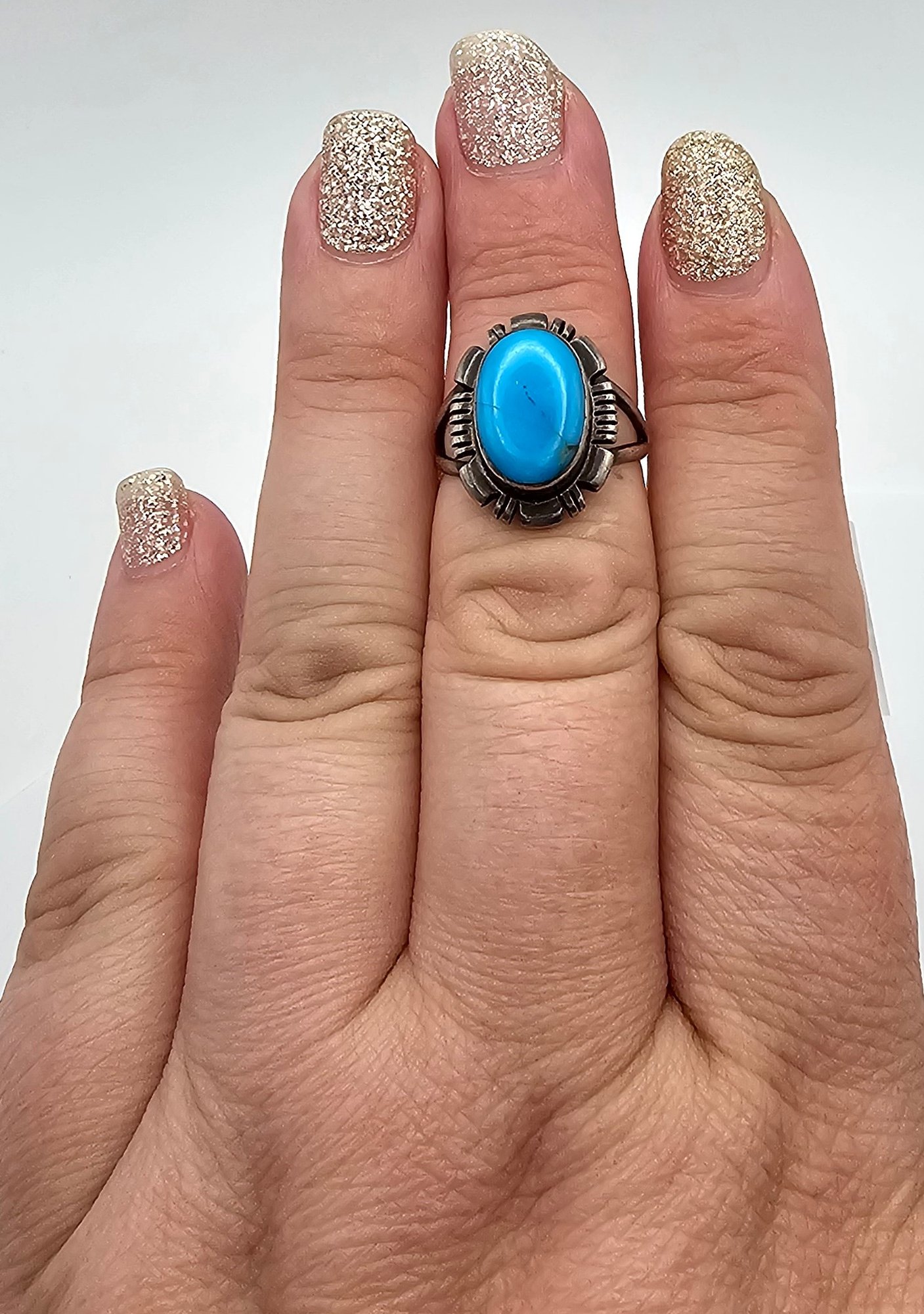 Turquoise Sterling Silver Ring Size 5.75 4 G