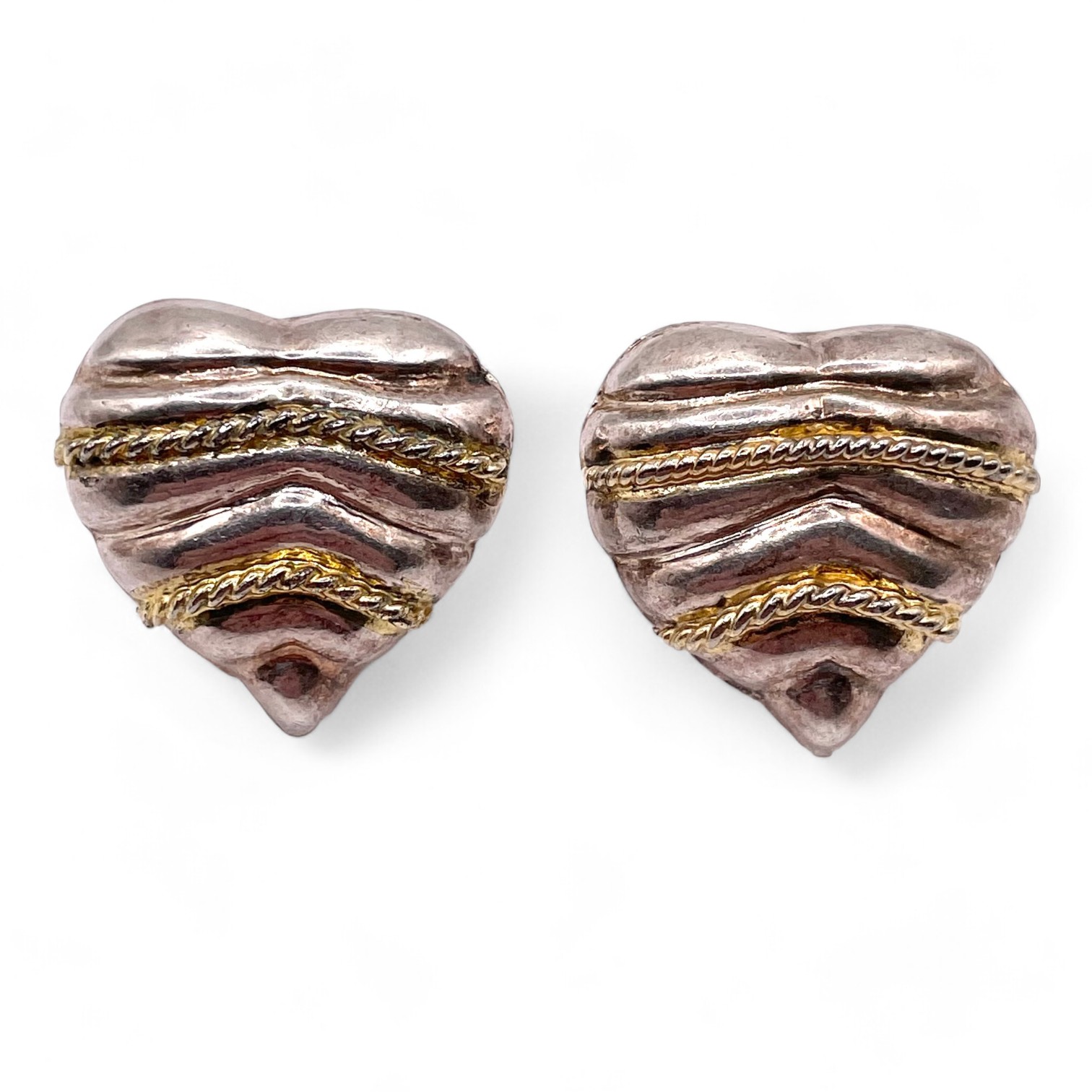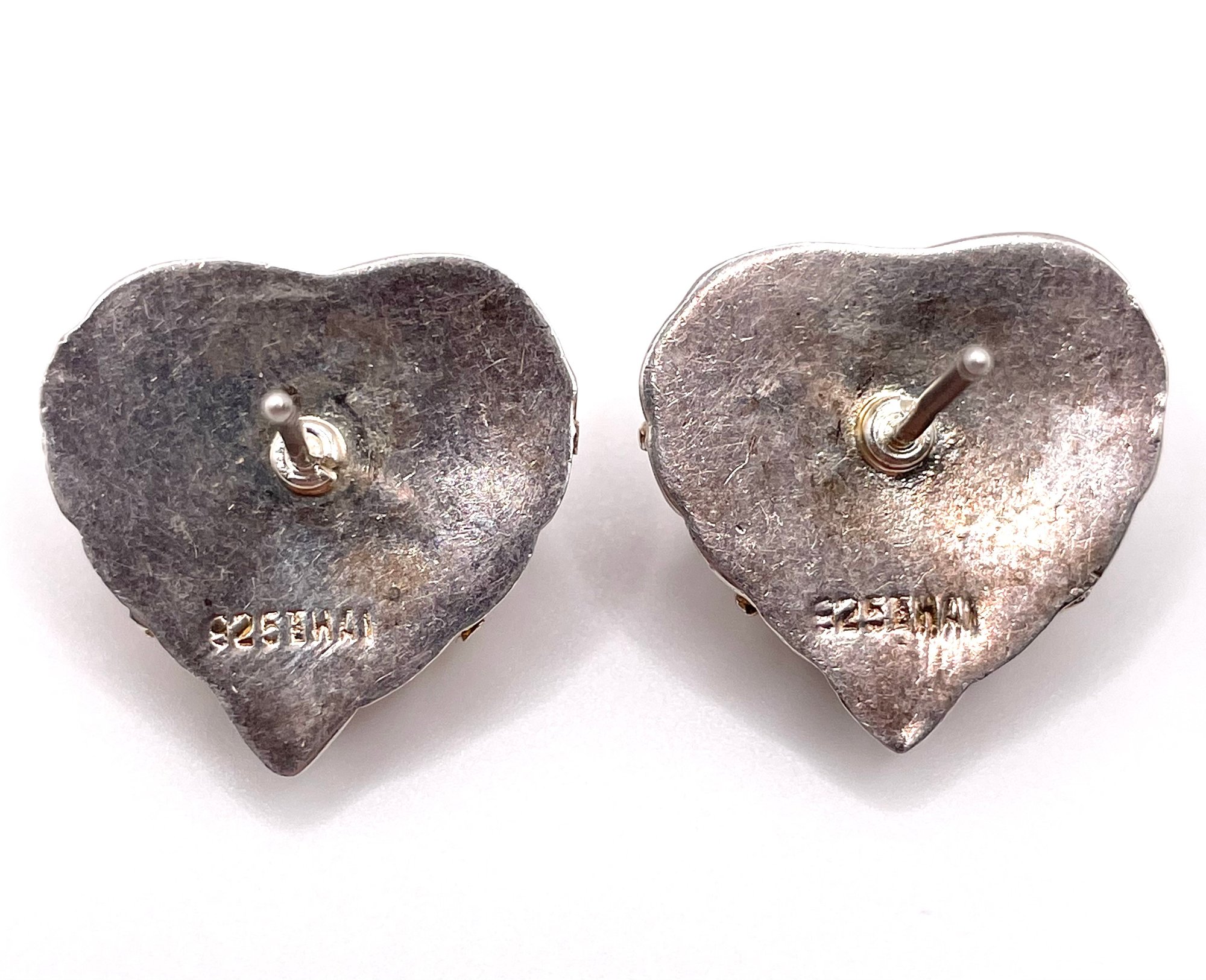 Sterling Gold Accented Stud Heart Earrings No Backs 6g