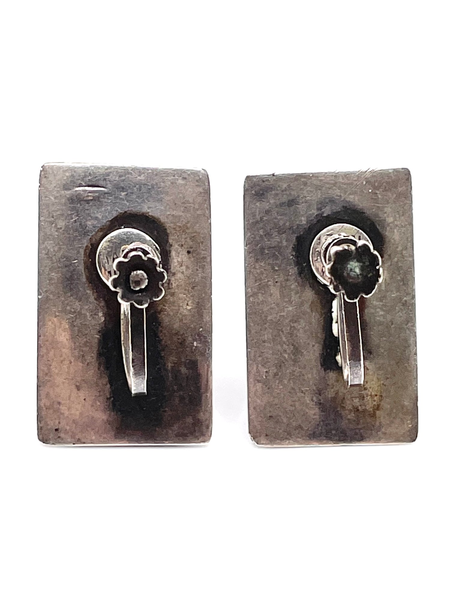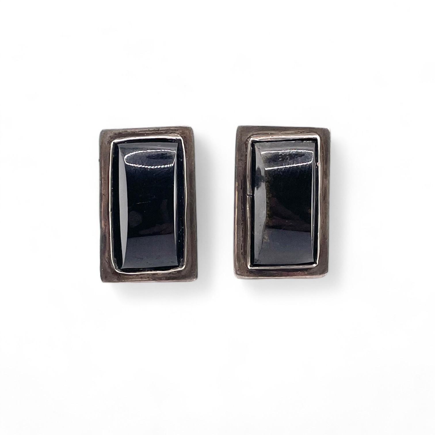 Silver And Onyx Black Stone Screw Back Earrings 11.5g