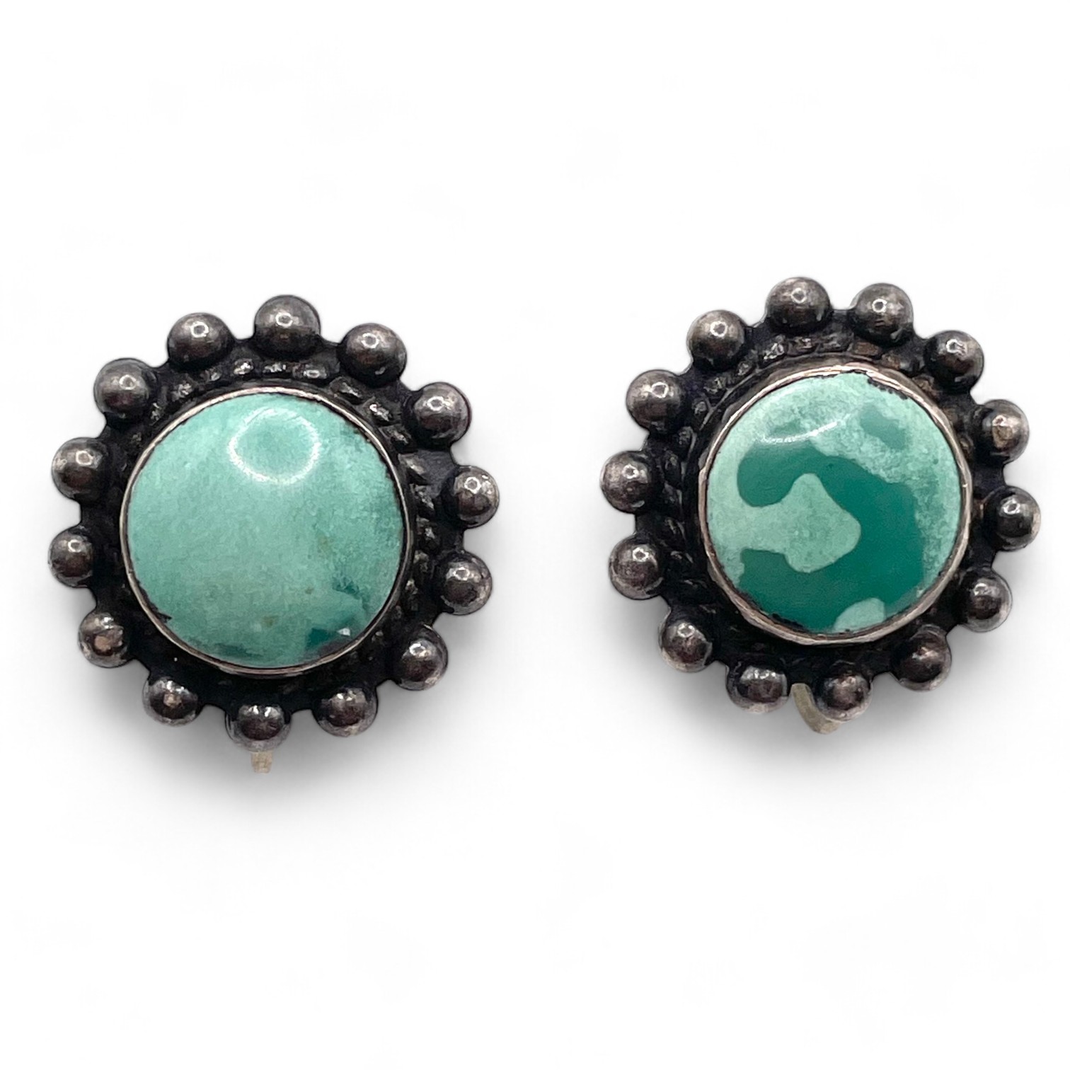 Silver Round Stone Screw Back Earrings 10g