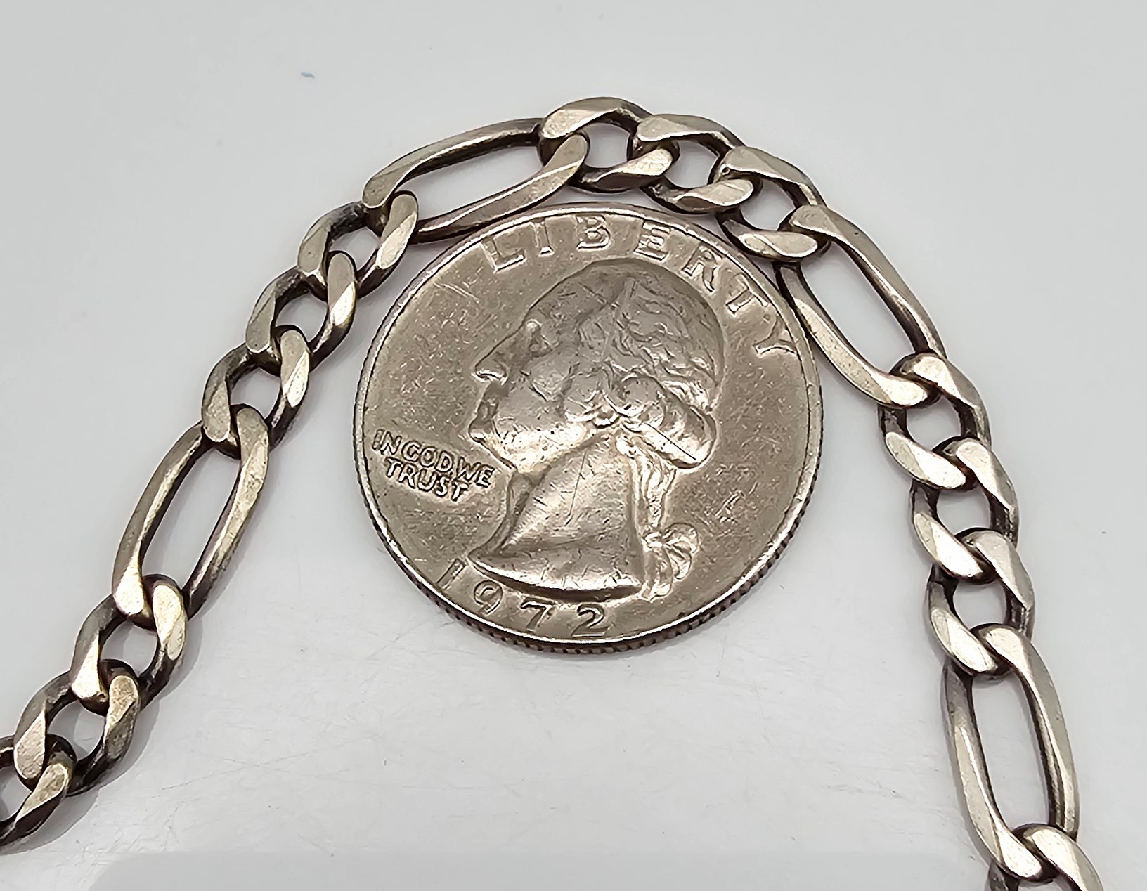 Italy Sterling Silver Figaro Chain Bracelet 9.4 G
