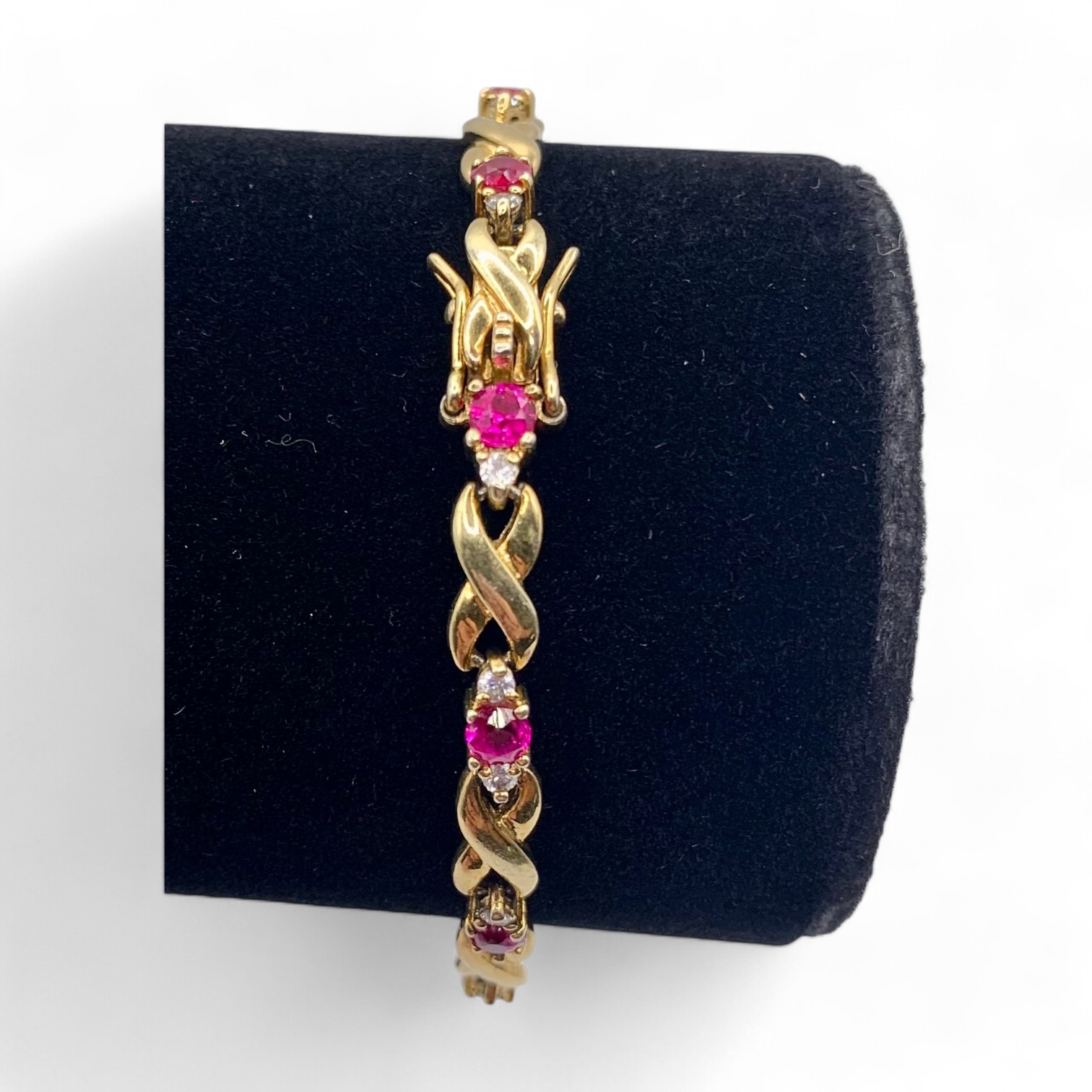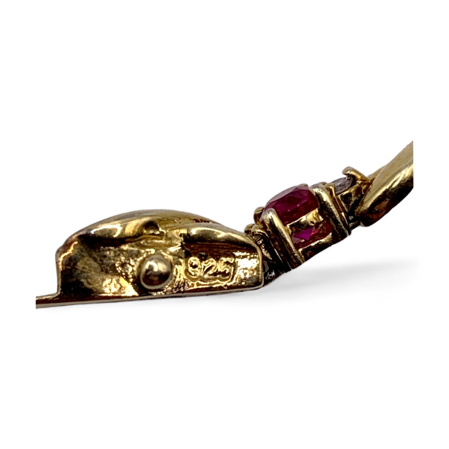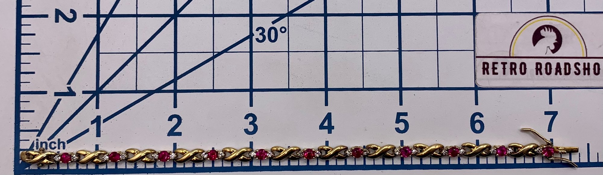 Rose Gold Over Sterling Silver Cubic Zirconia And Dark Pinkish Red Ruby Rhinestone Bracelet 8.5g