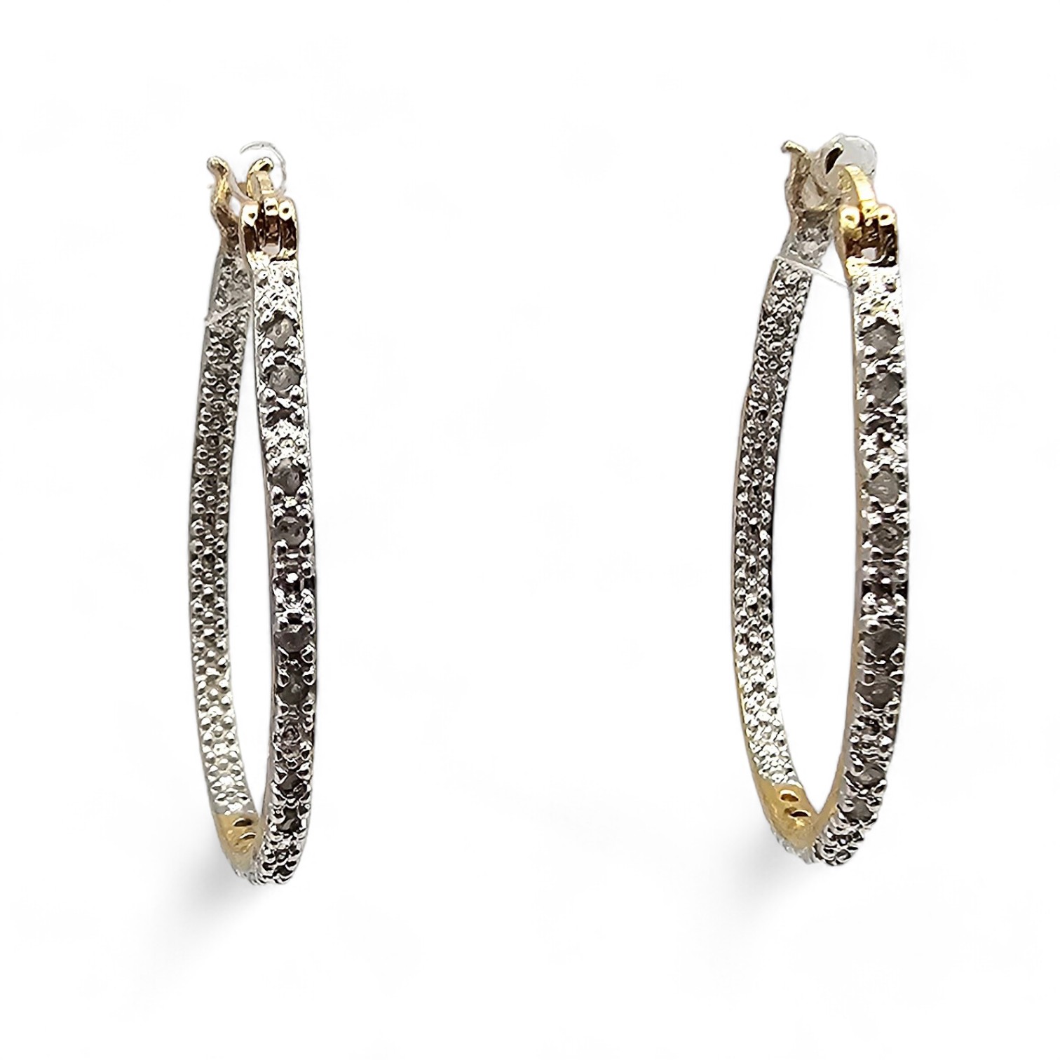Diamond Gold Over Sterling Silver Hoop Earrings 4.1 G