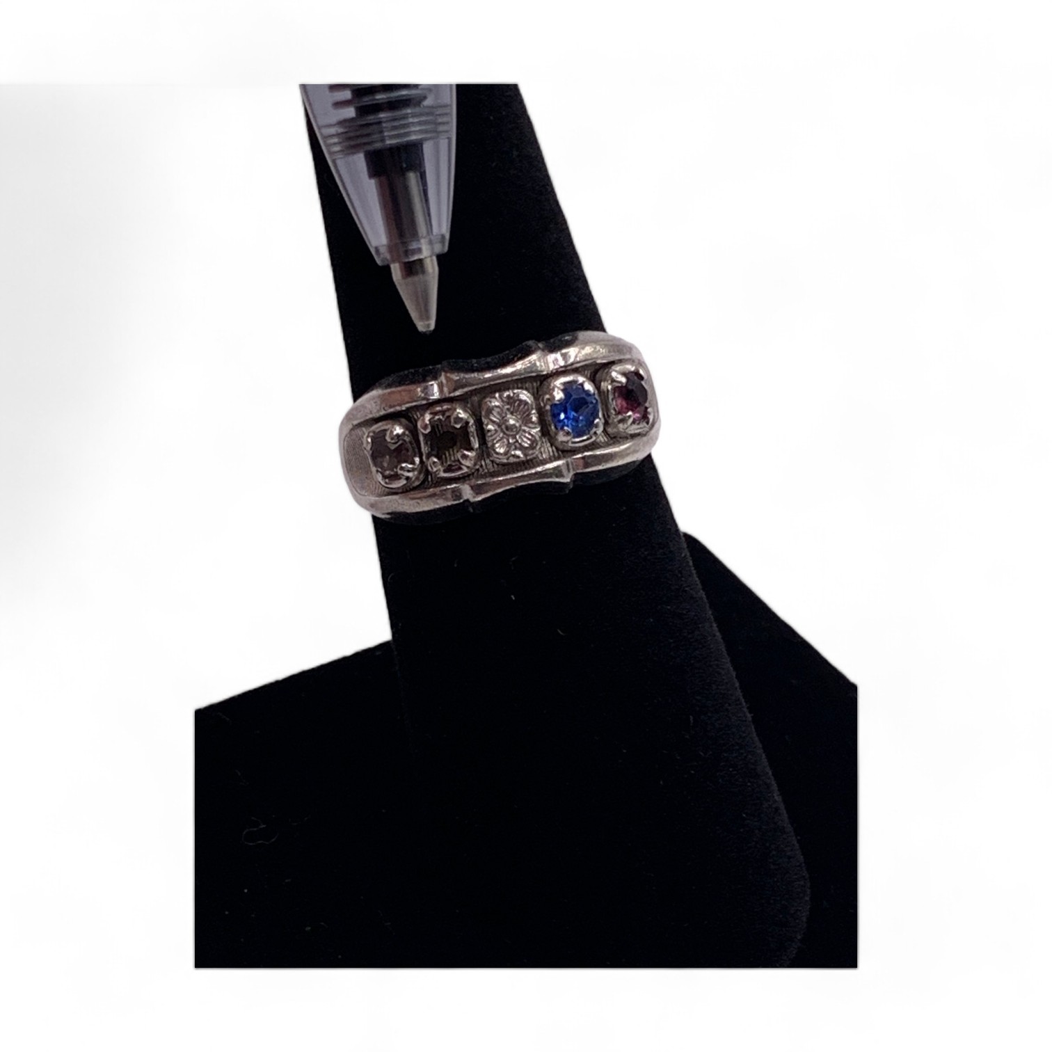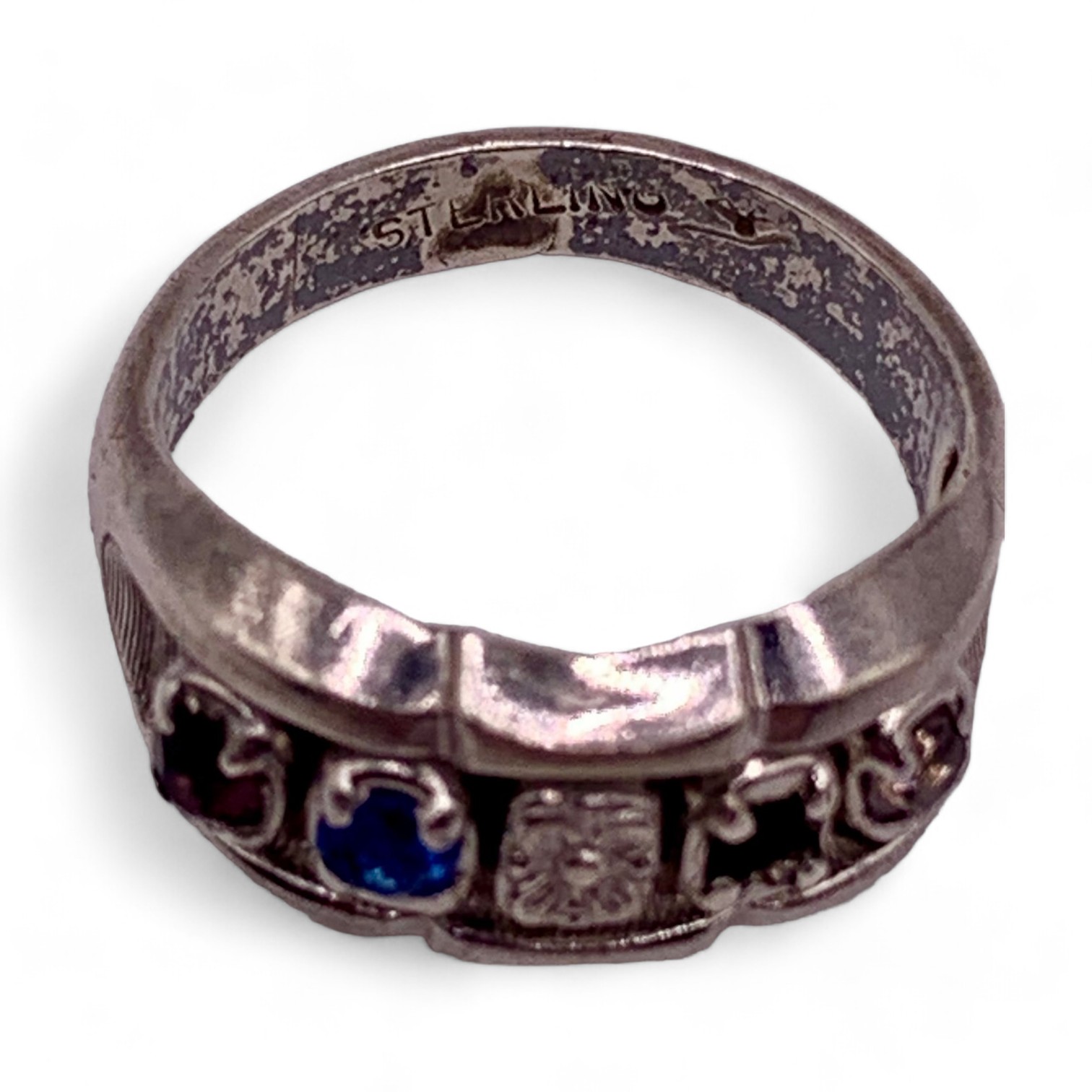 Vintage Sterling Silver Ring With Cobalt, Purple, Clear Rhinestones 4.6g