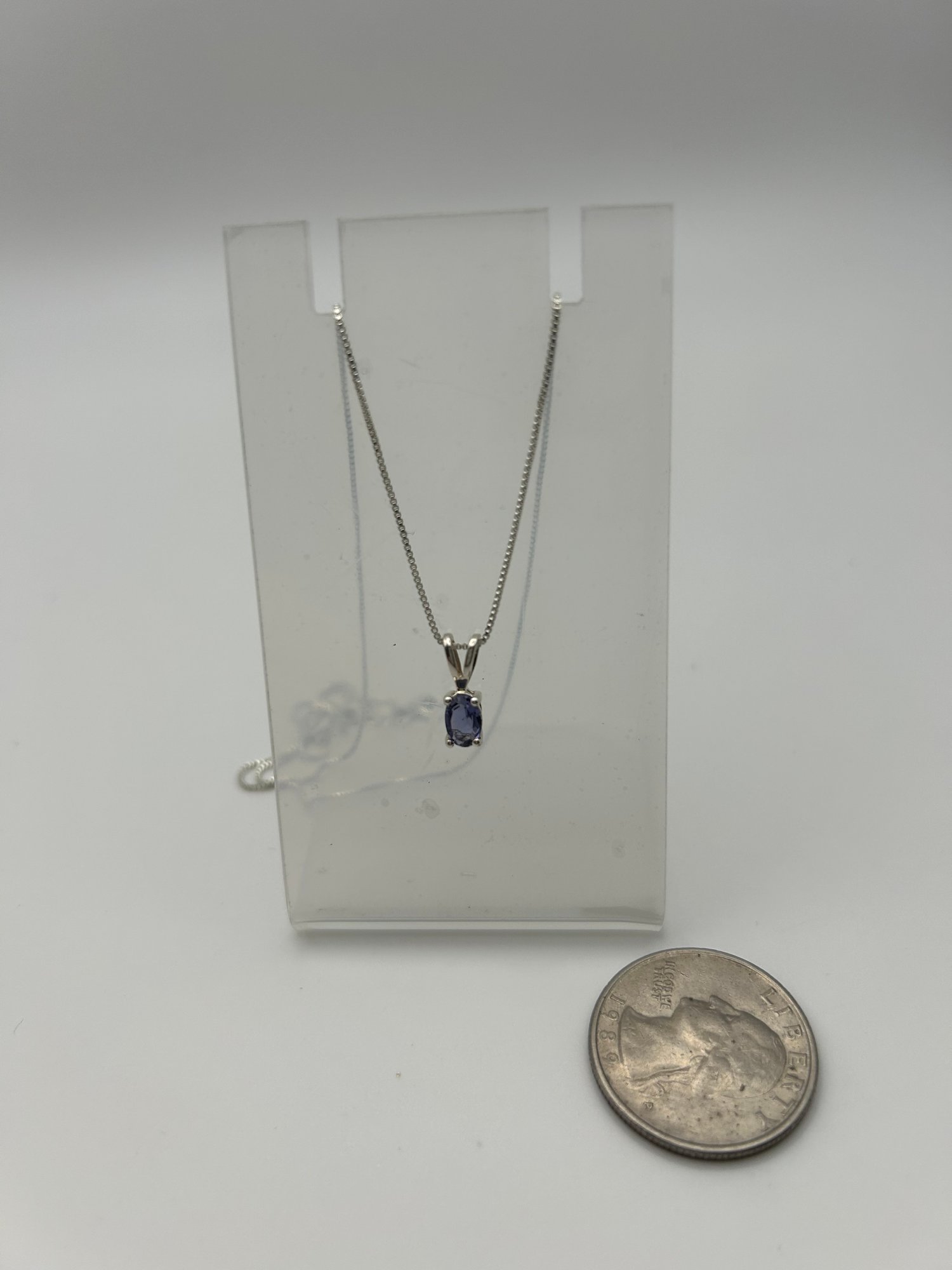 Italy Sterling Silver Delicate Box Chain With Amethyst Stone 1.78g