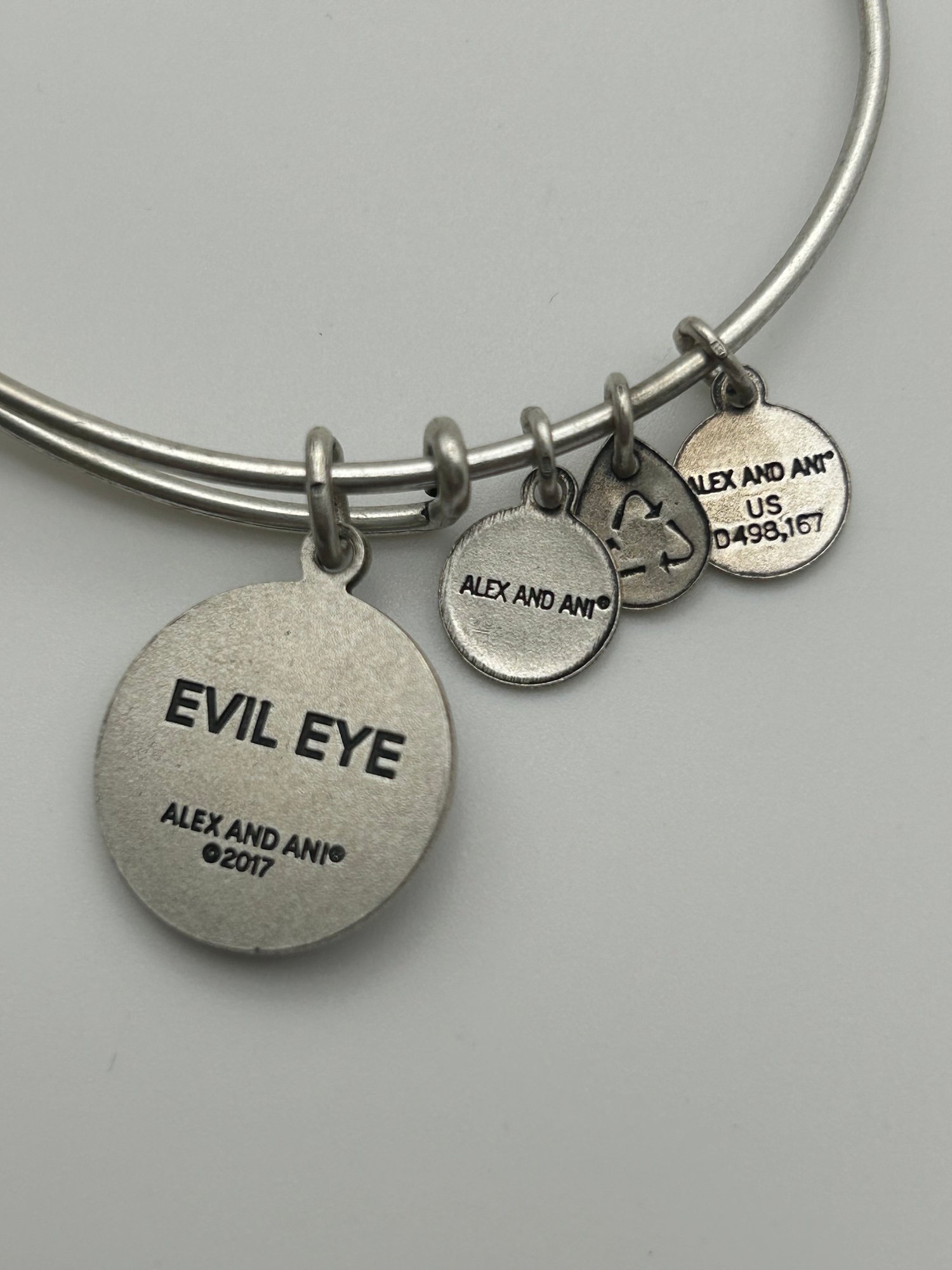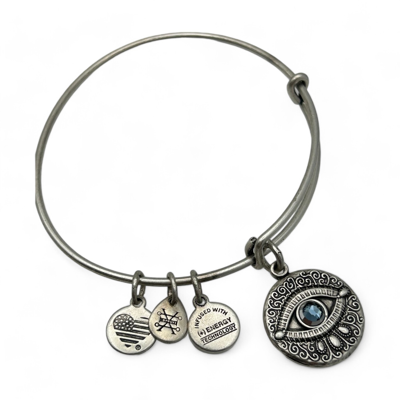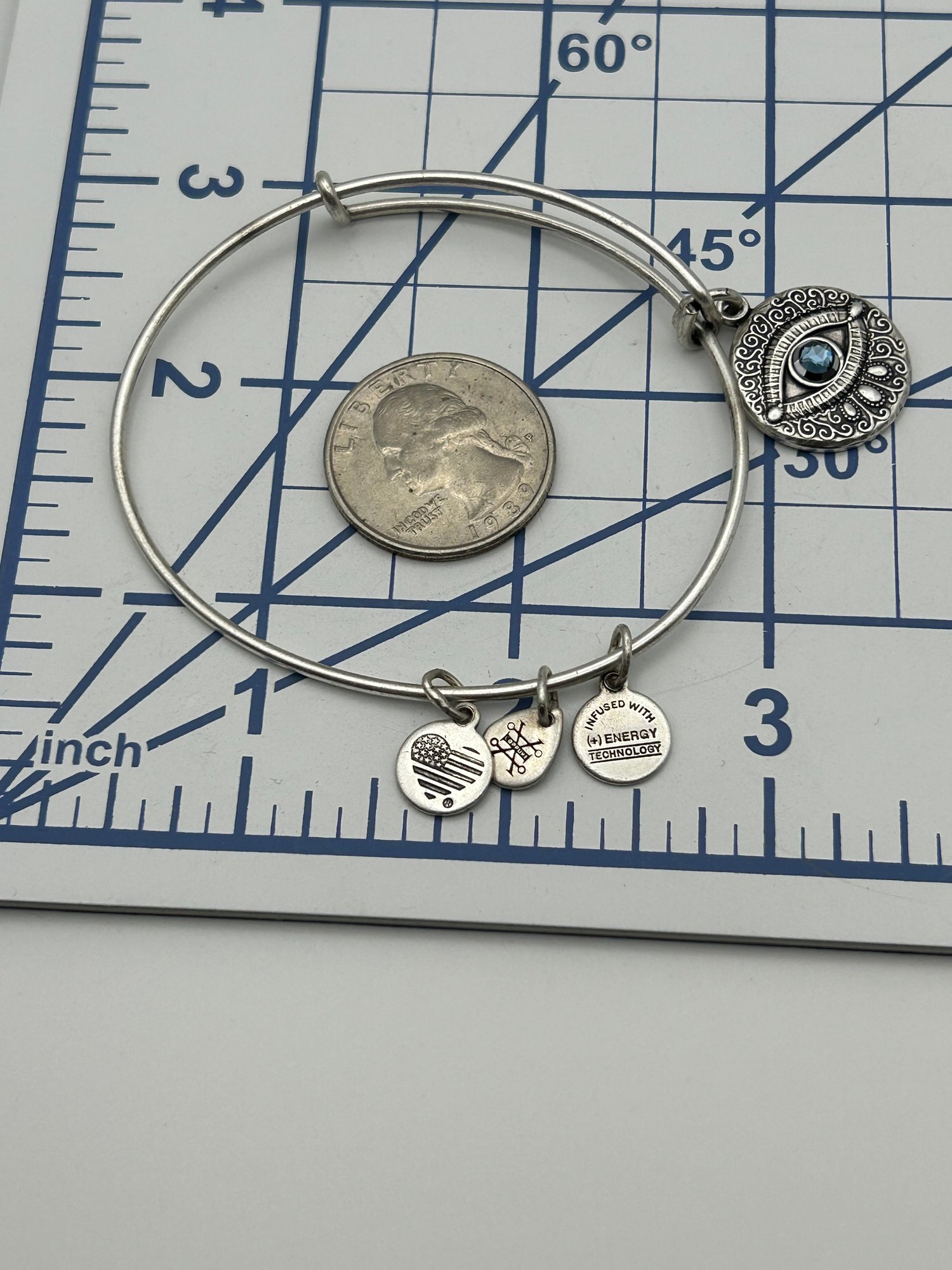 Alex And Ani Evil Eye Sterling Silver Bracelet Bangle With Blue Stone 11.07g