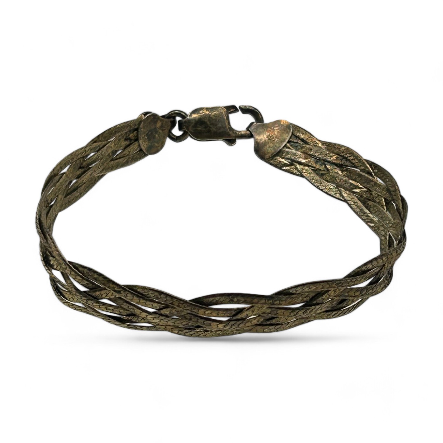 Antique Sterling Silver Gold Colored Braided Bracelet. 9.54g