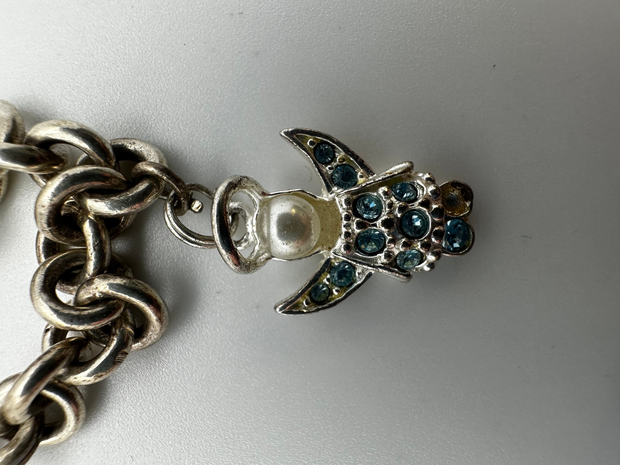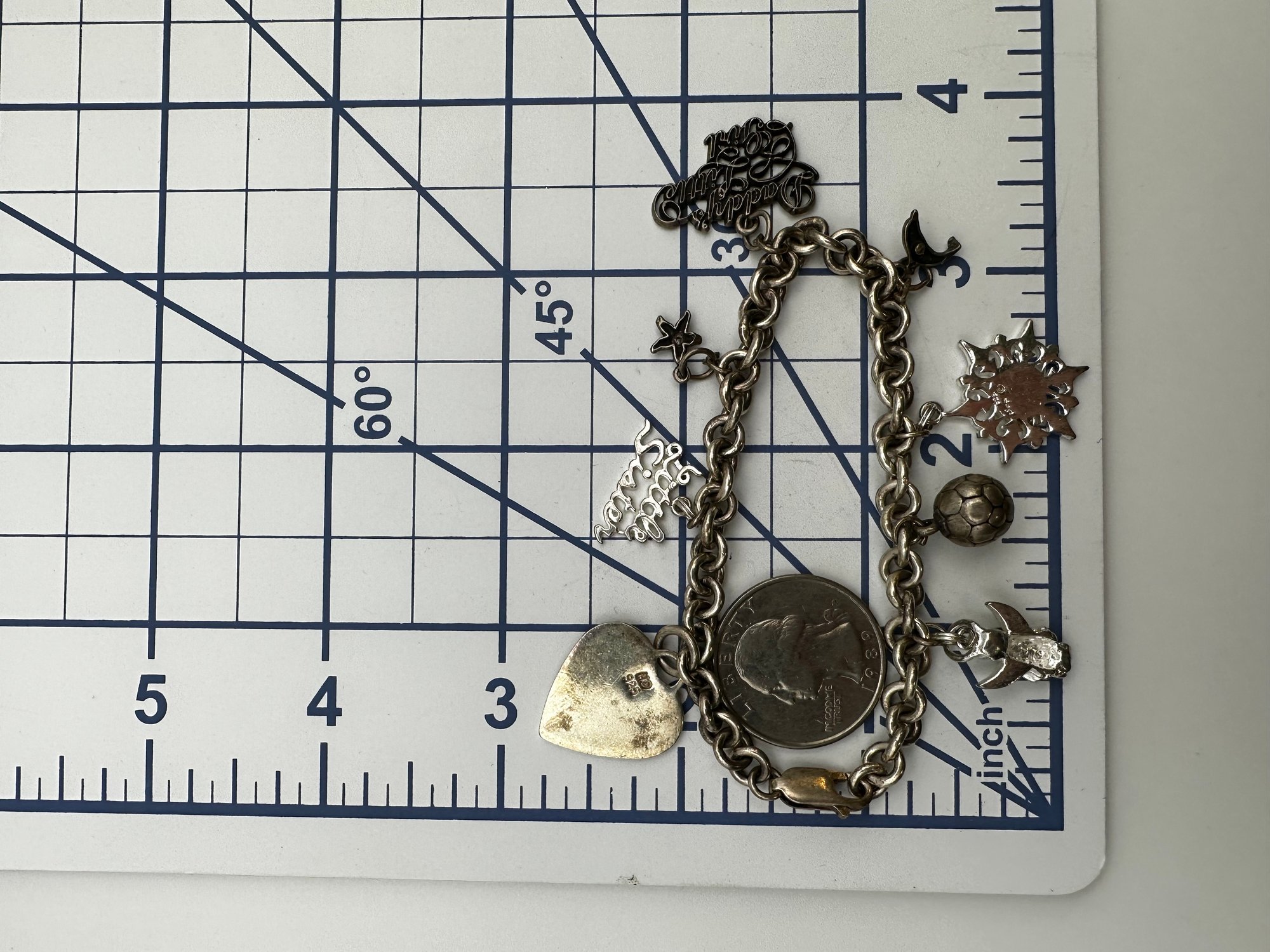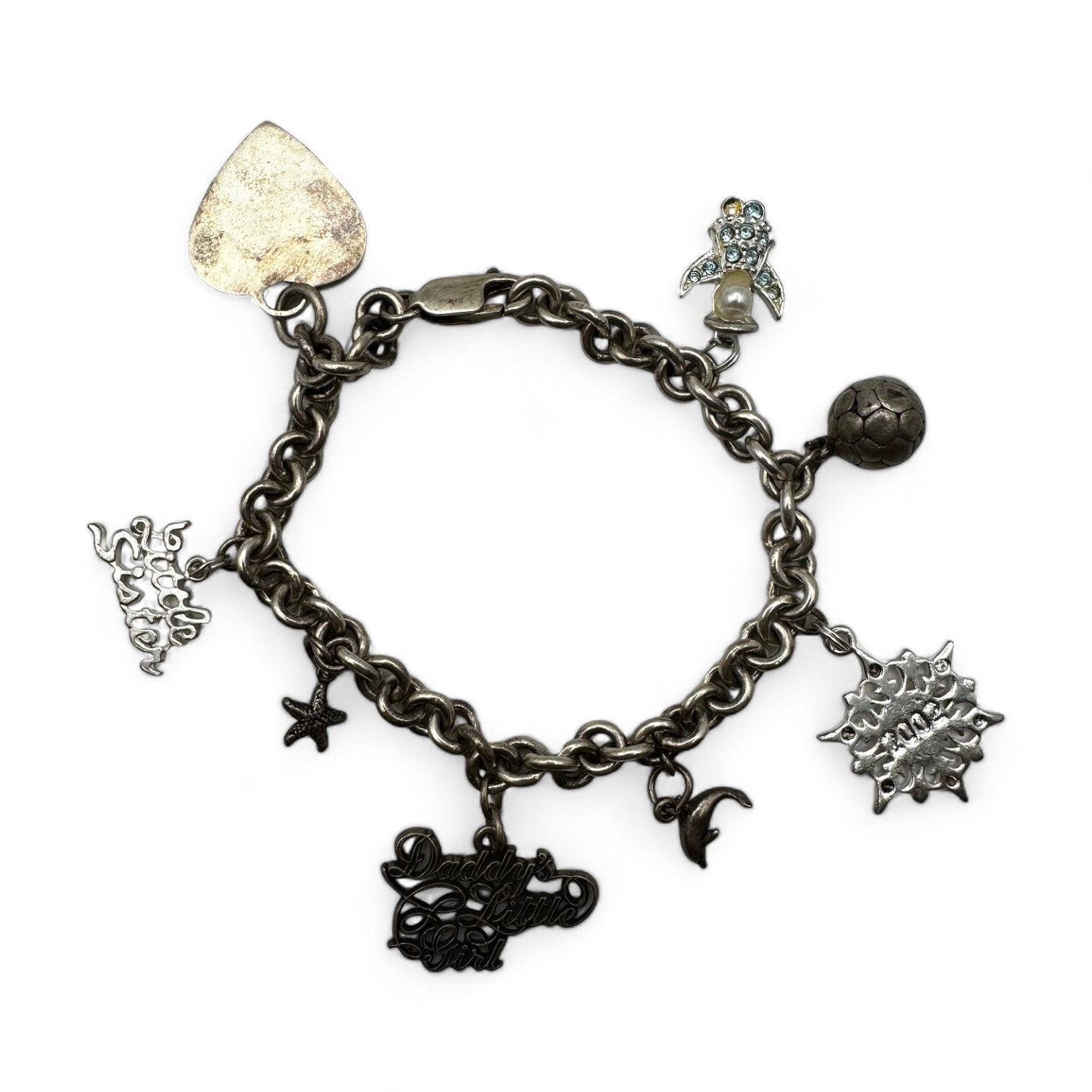 Sterling Silver Charm Bracelet With Curb Chain 31.67g