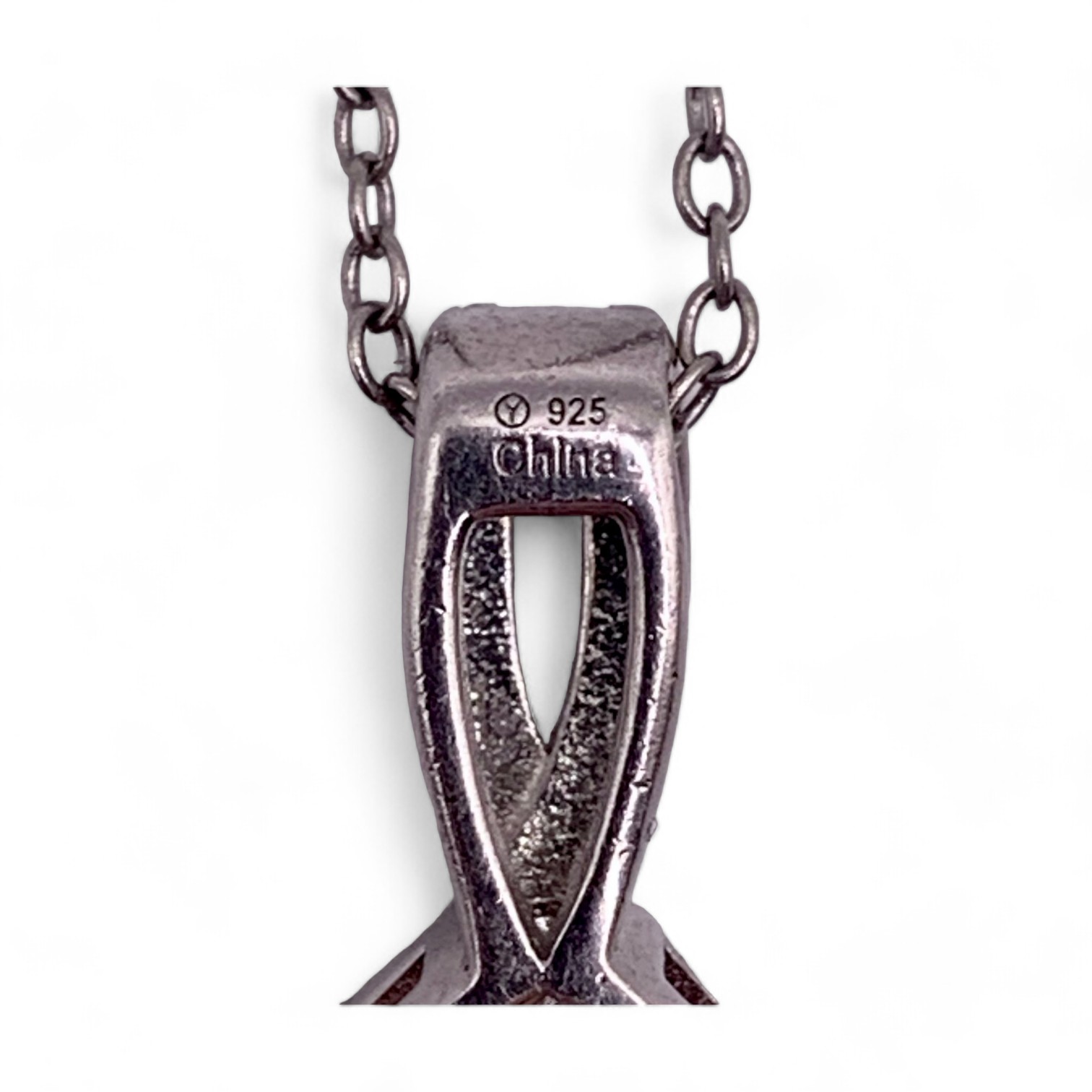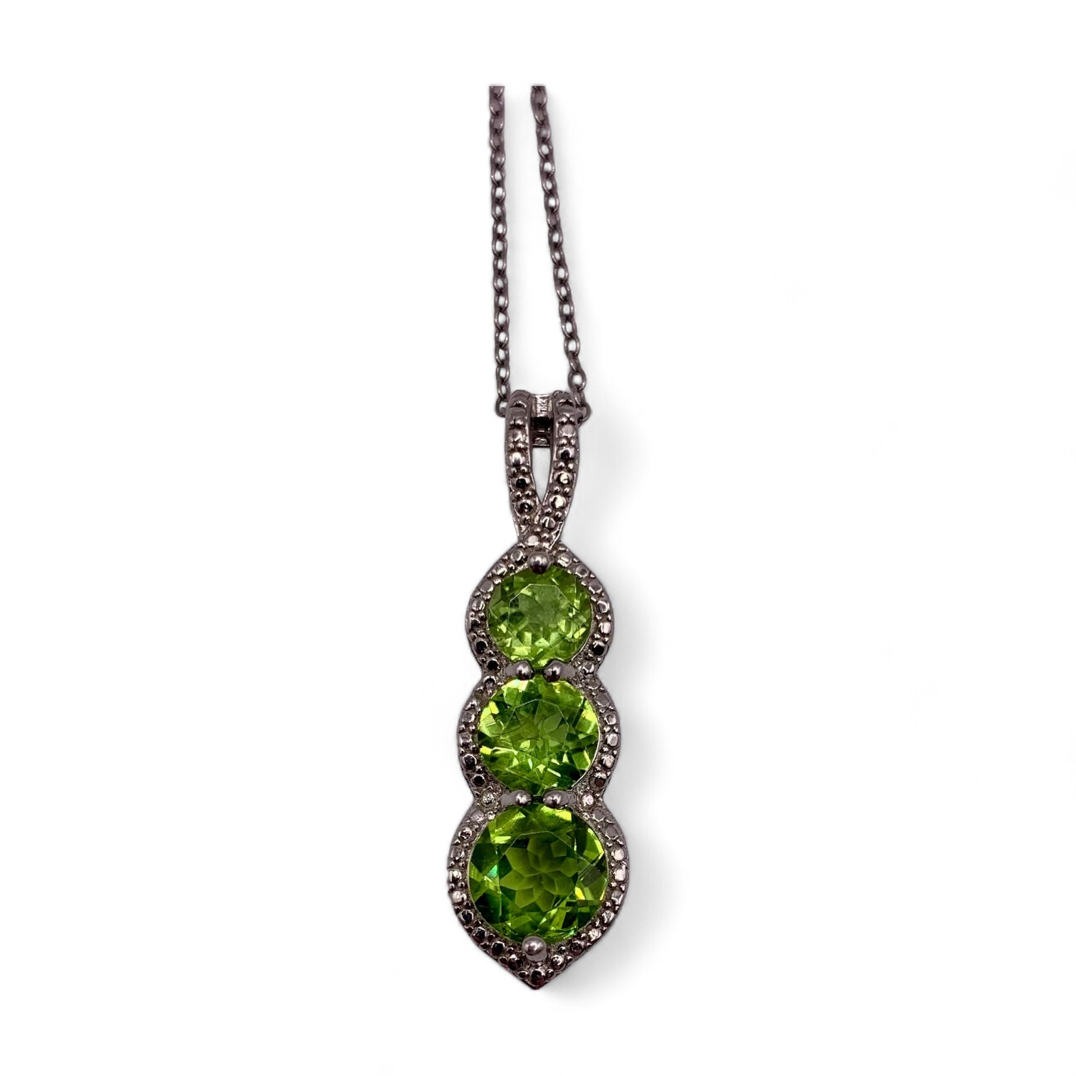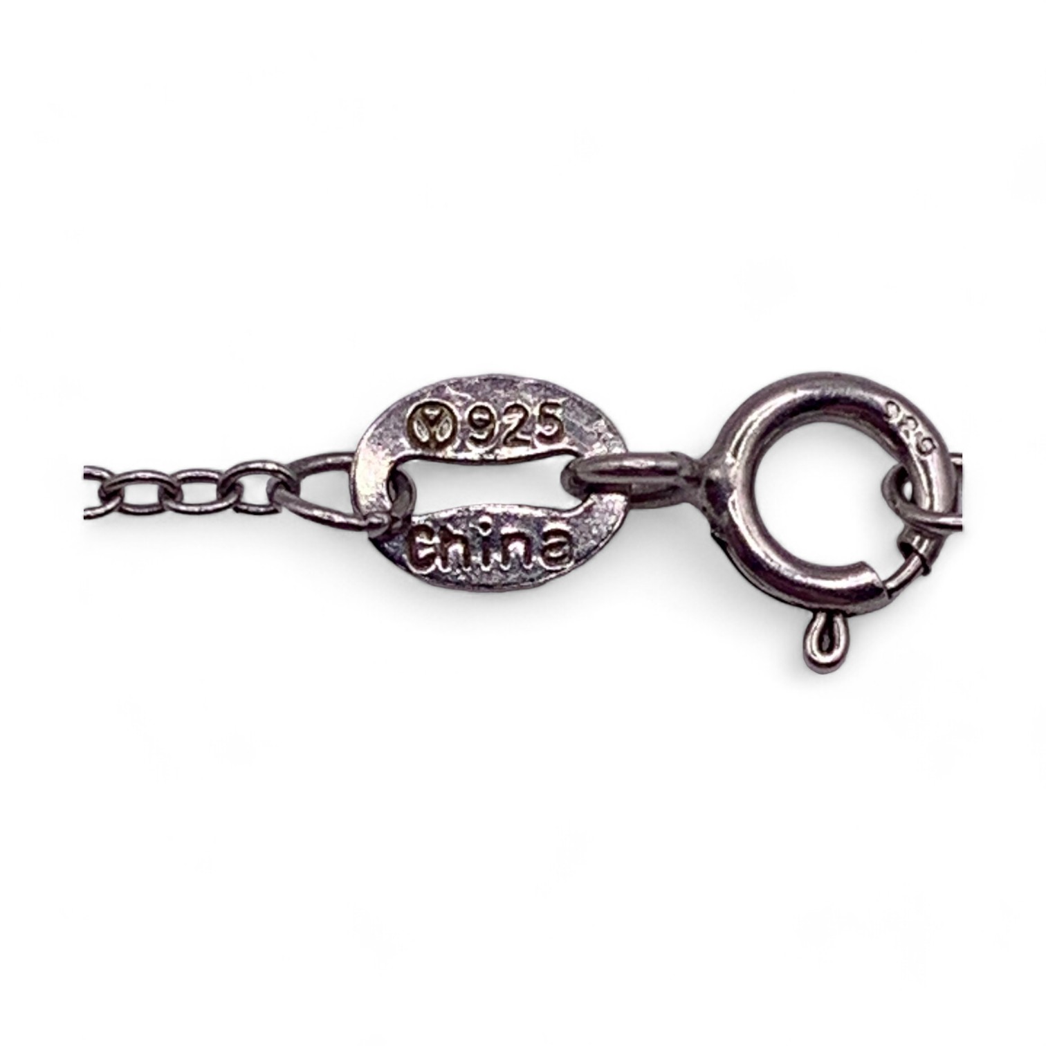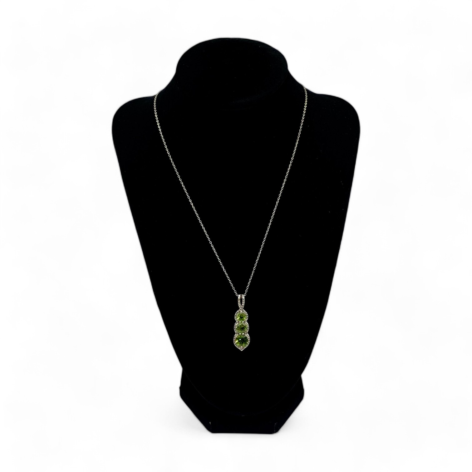 Sterling Silver Dainty Chain Necklace And Pendant With Lime Green Rhinestones 4.9g