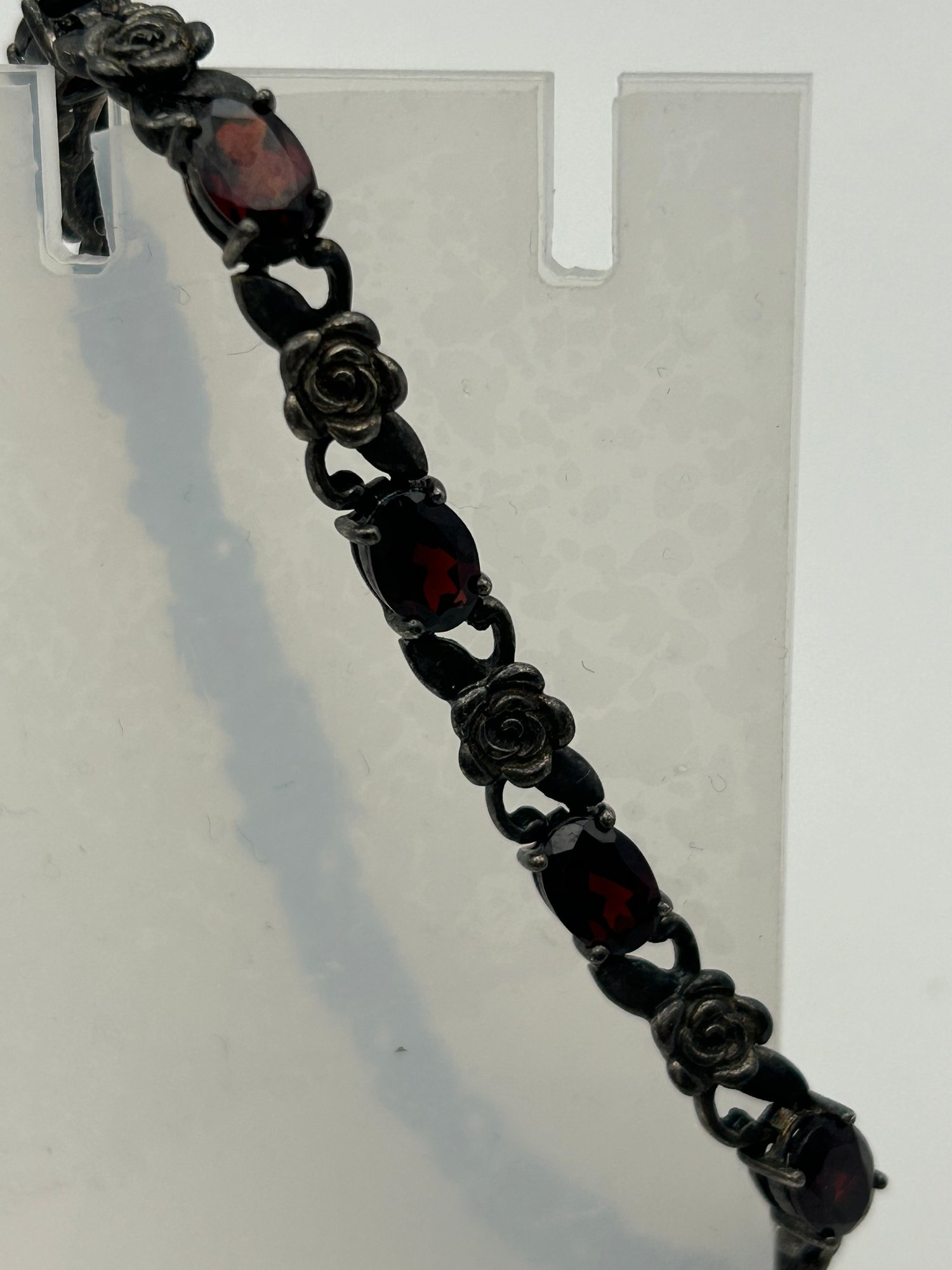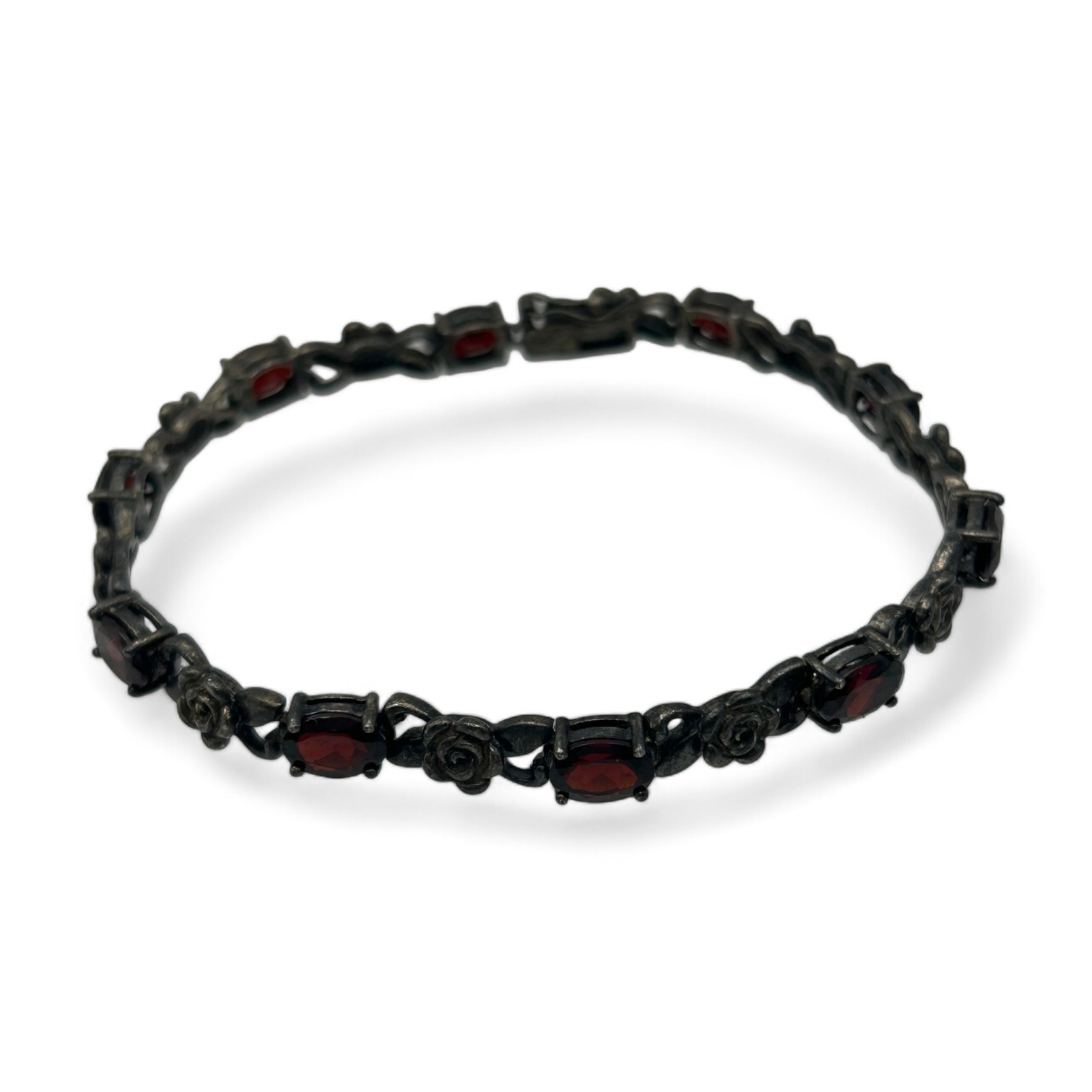 Sterling Silver China Alternating Rose And Ruby Colored Stone Bracelet 13.41g