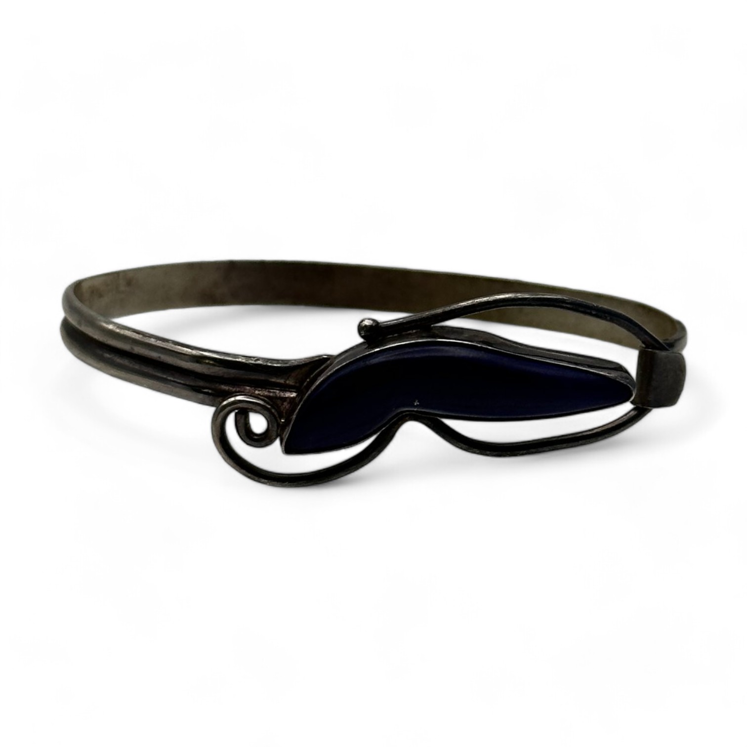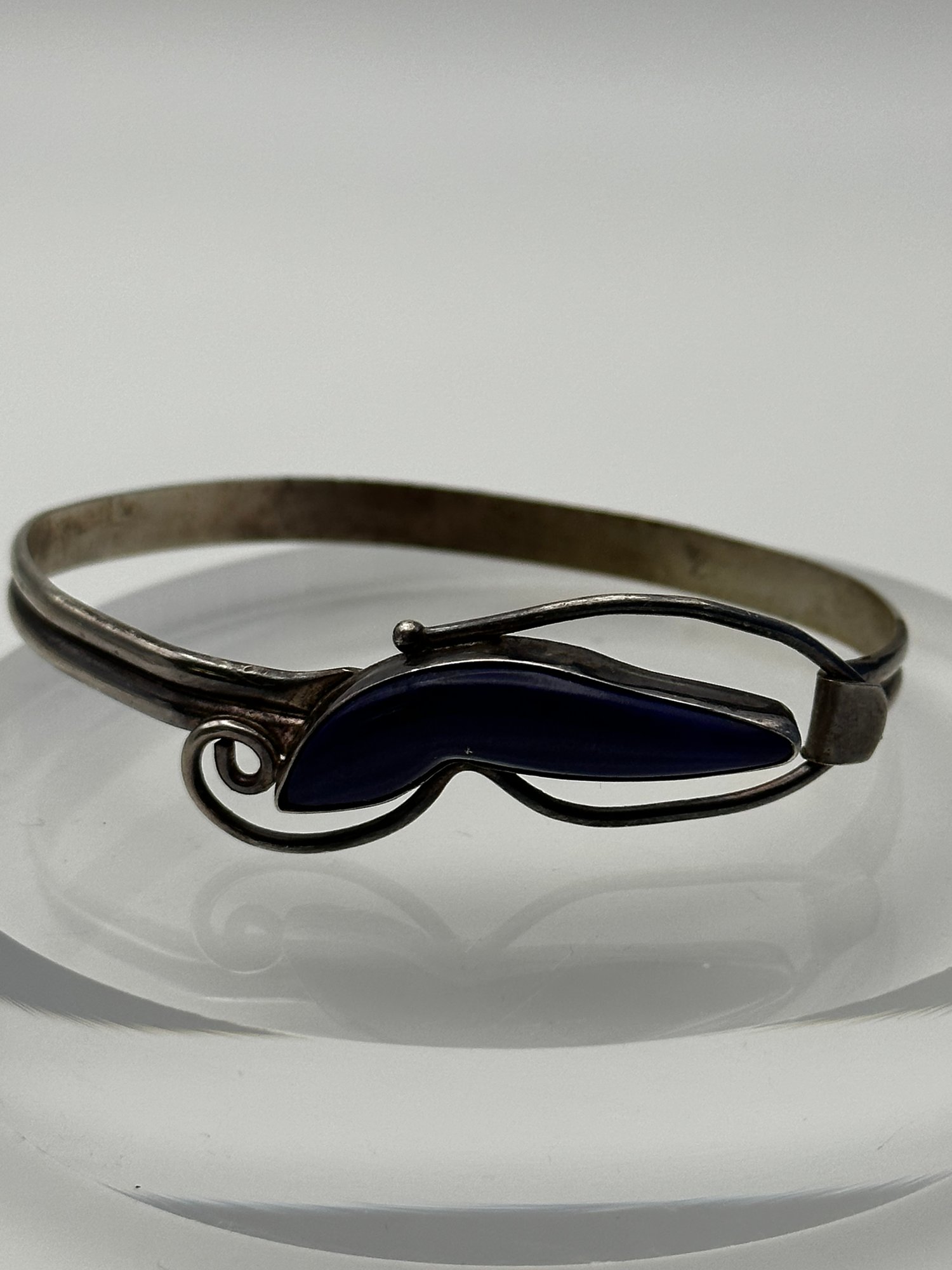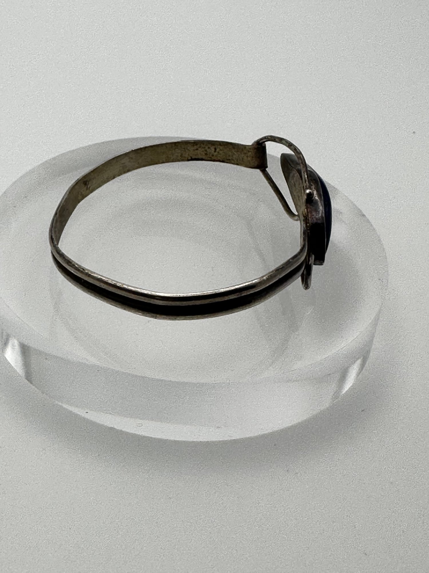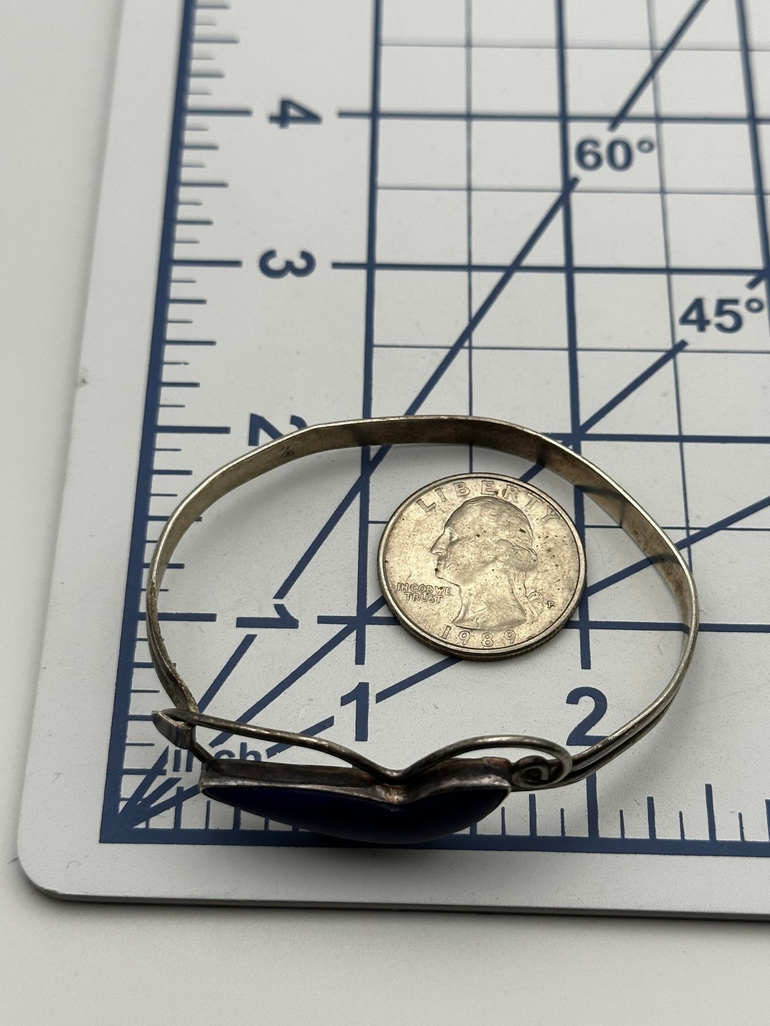 Sterling Silver Bracelet With Dark Blue Stone In Unique Swirl Setting 11.39g