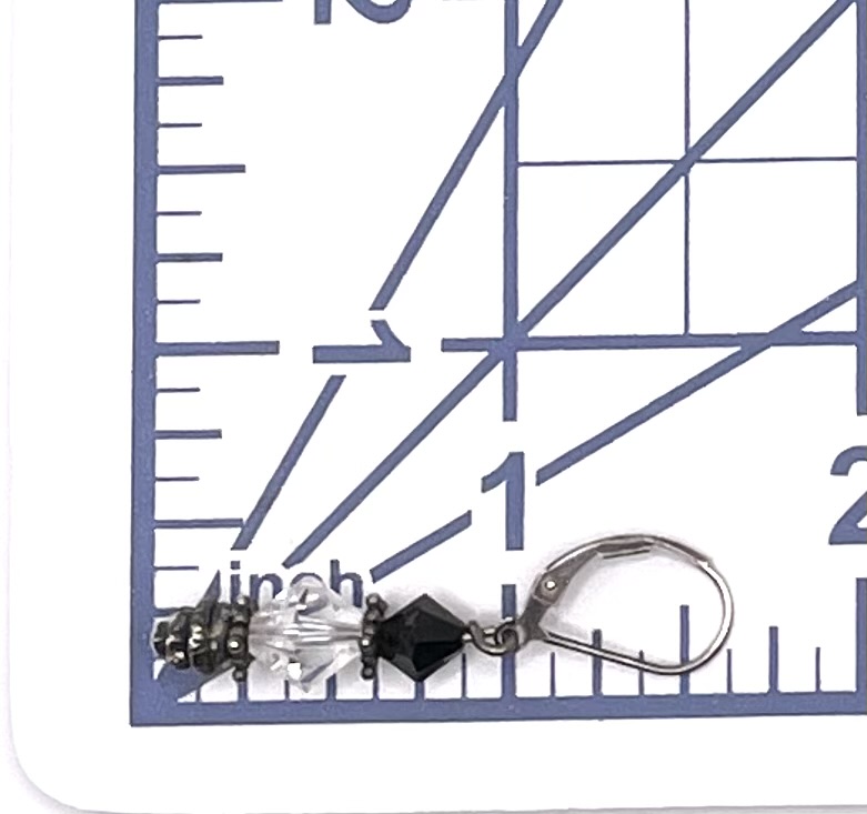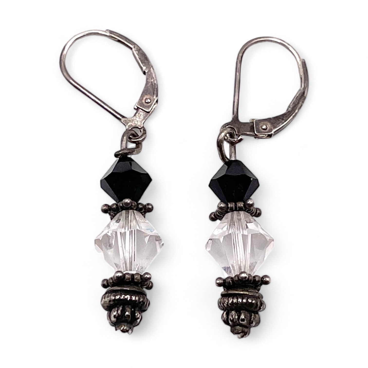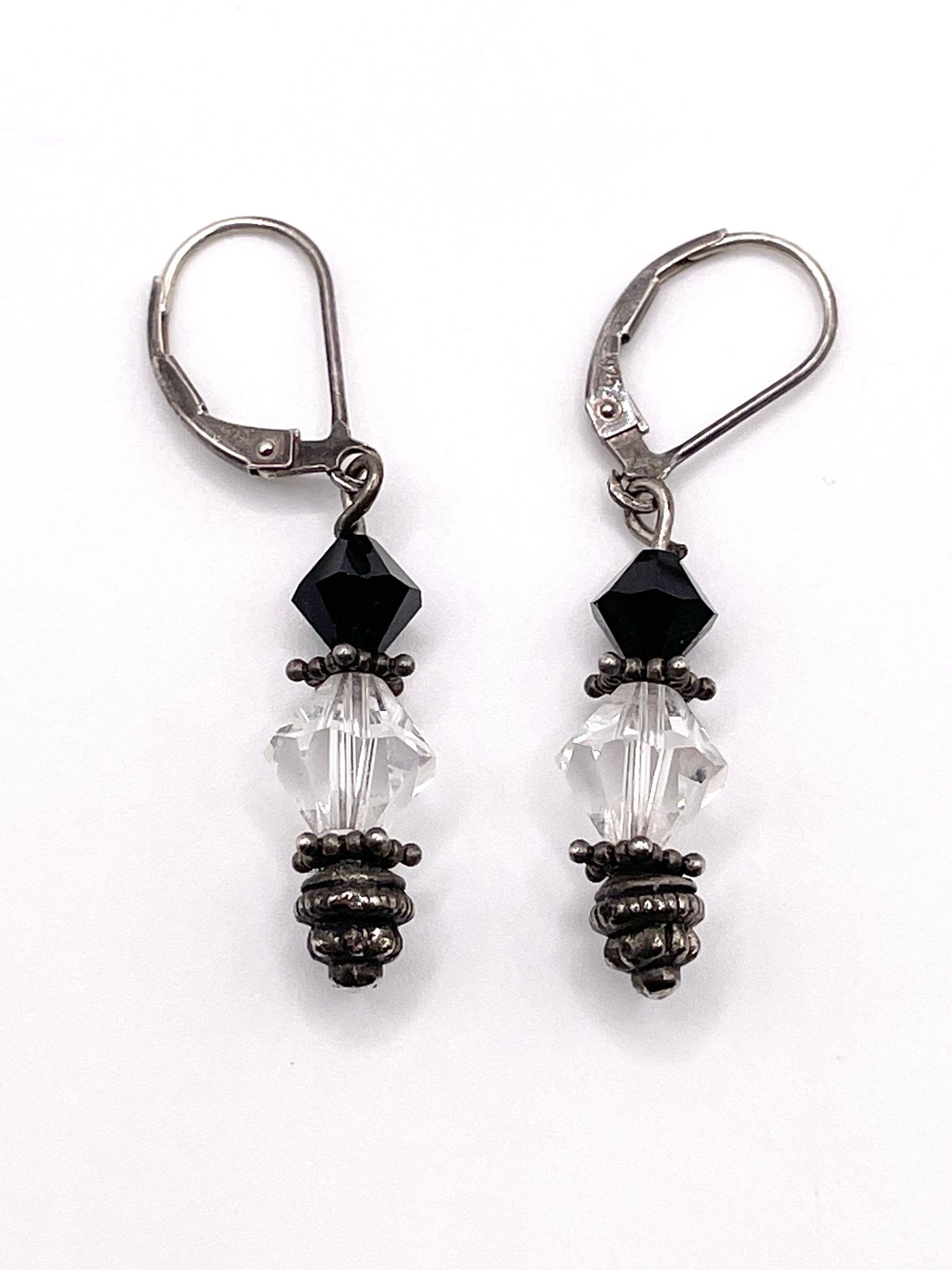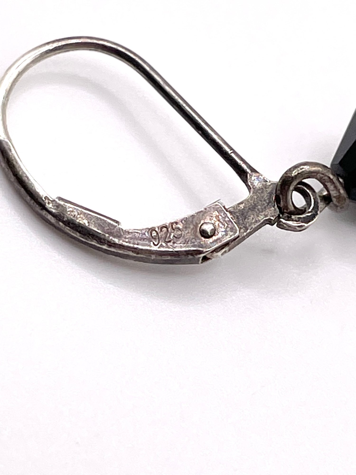 Sterling Clear And Black Rhinestone Hook Earrings 4g
