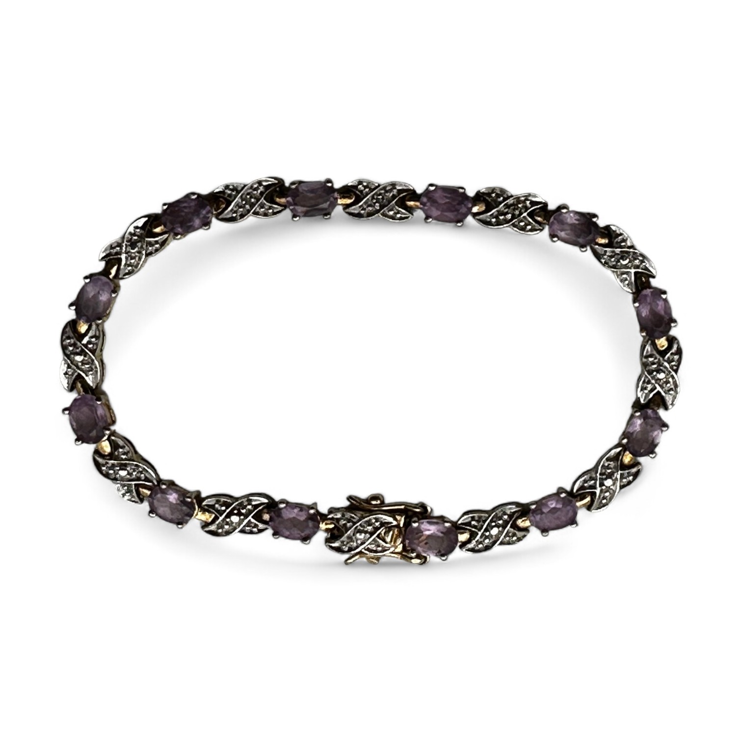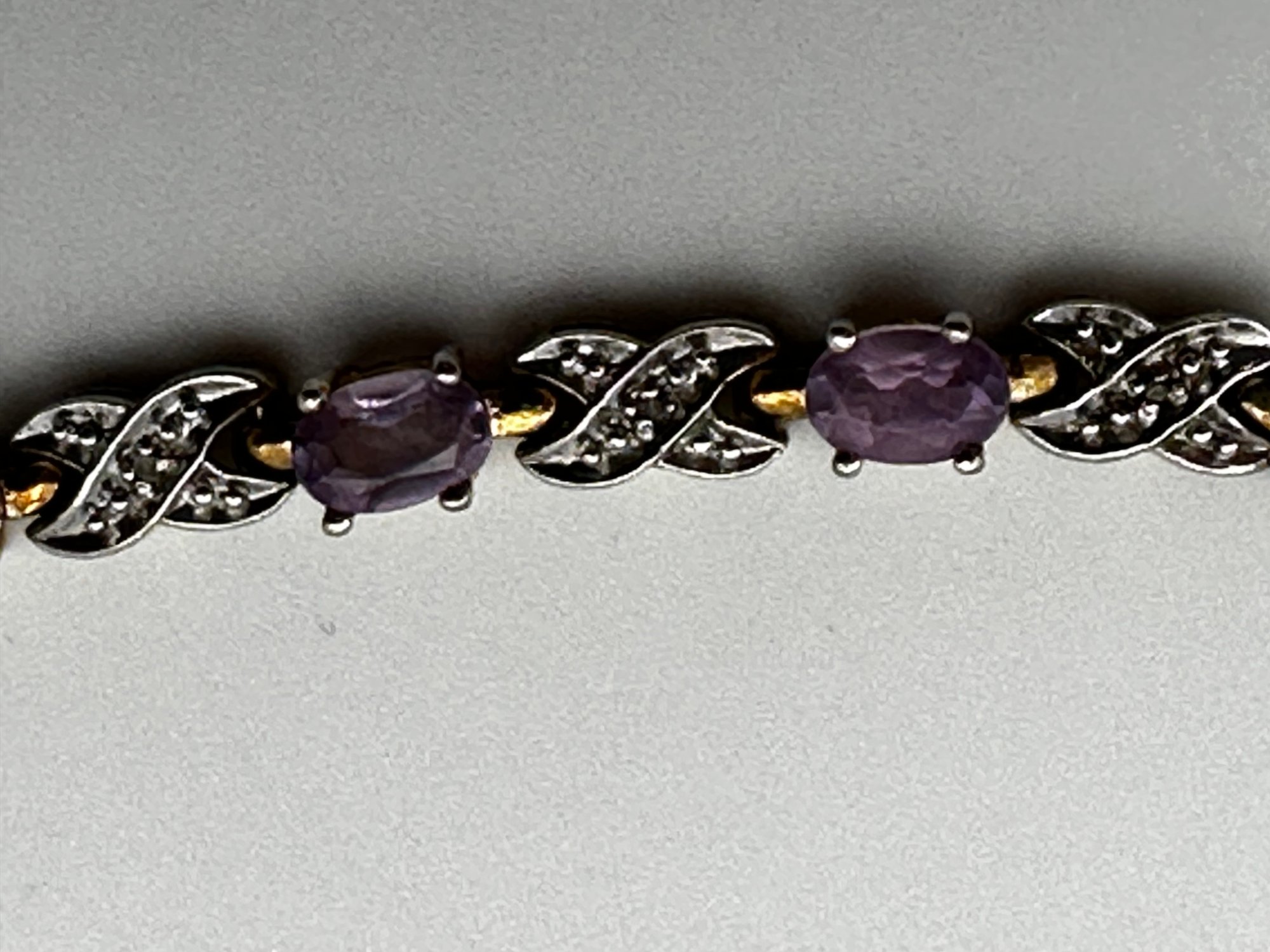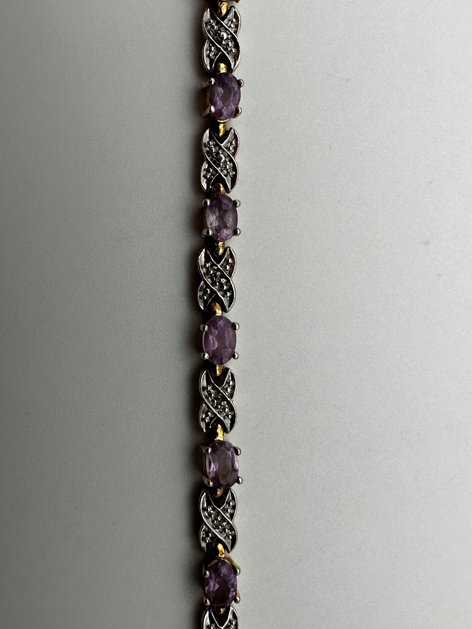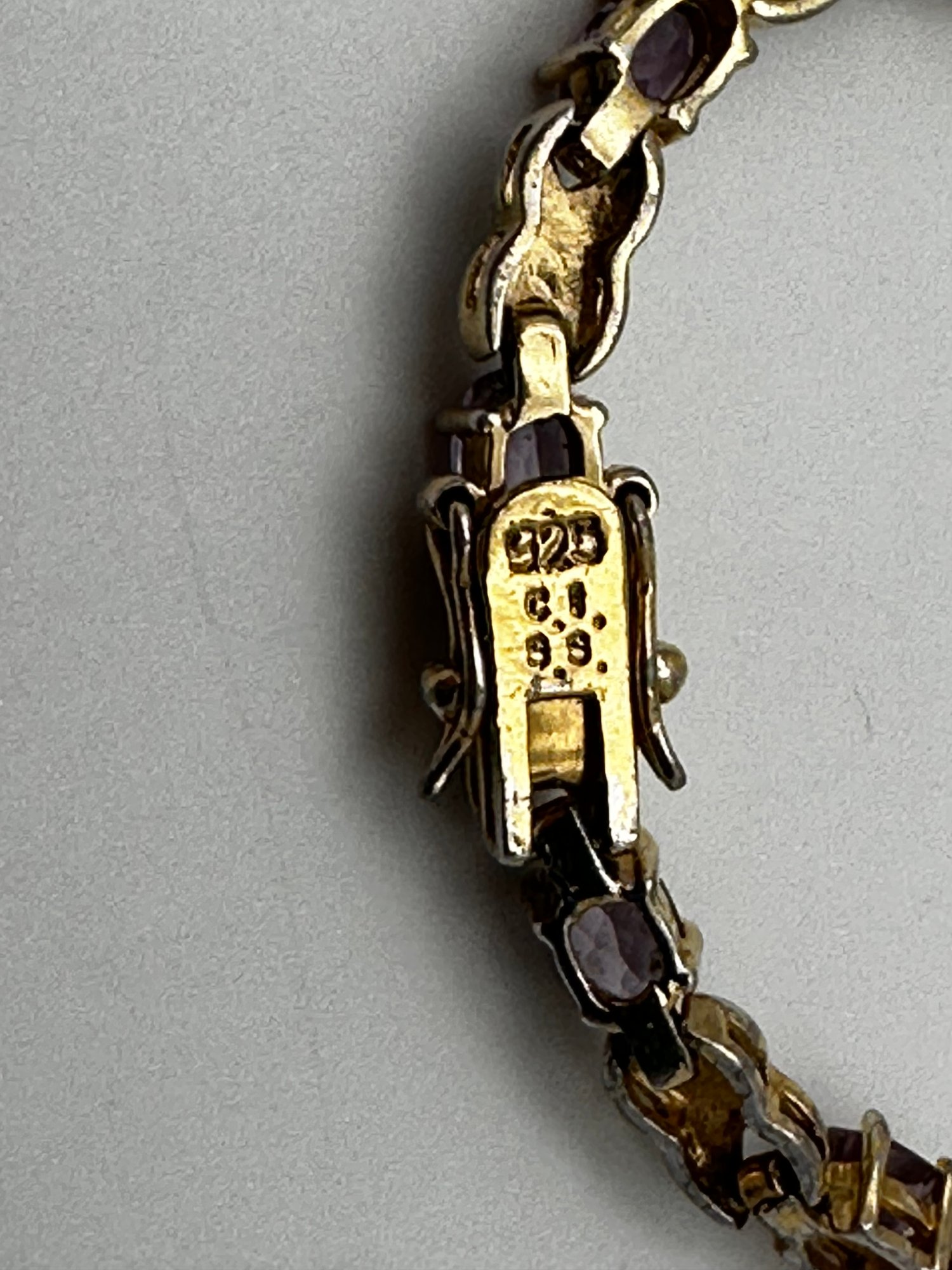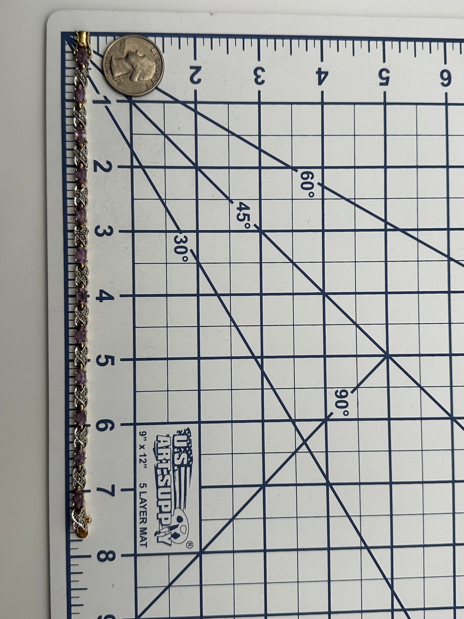CISS Sterling Silver Colored Gold X & O Tennis Bracelet With Purple Stones 11.56g