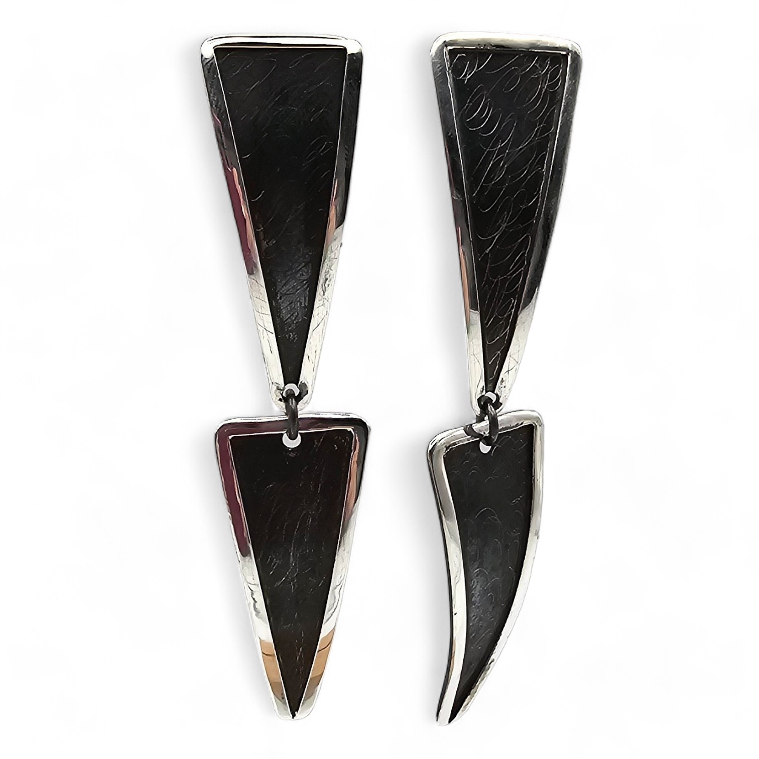New Balaam Monica Zamora Oxidized Double Triangle Dangle Earrings 13.9 G