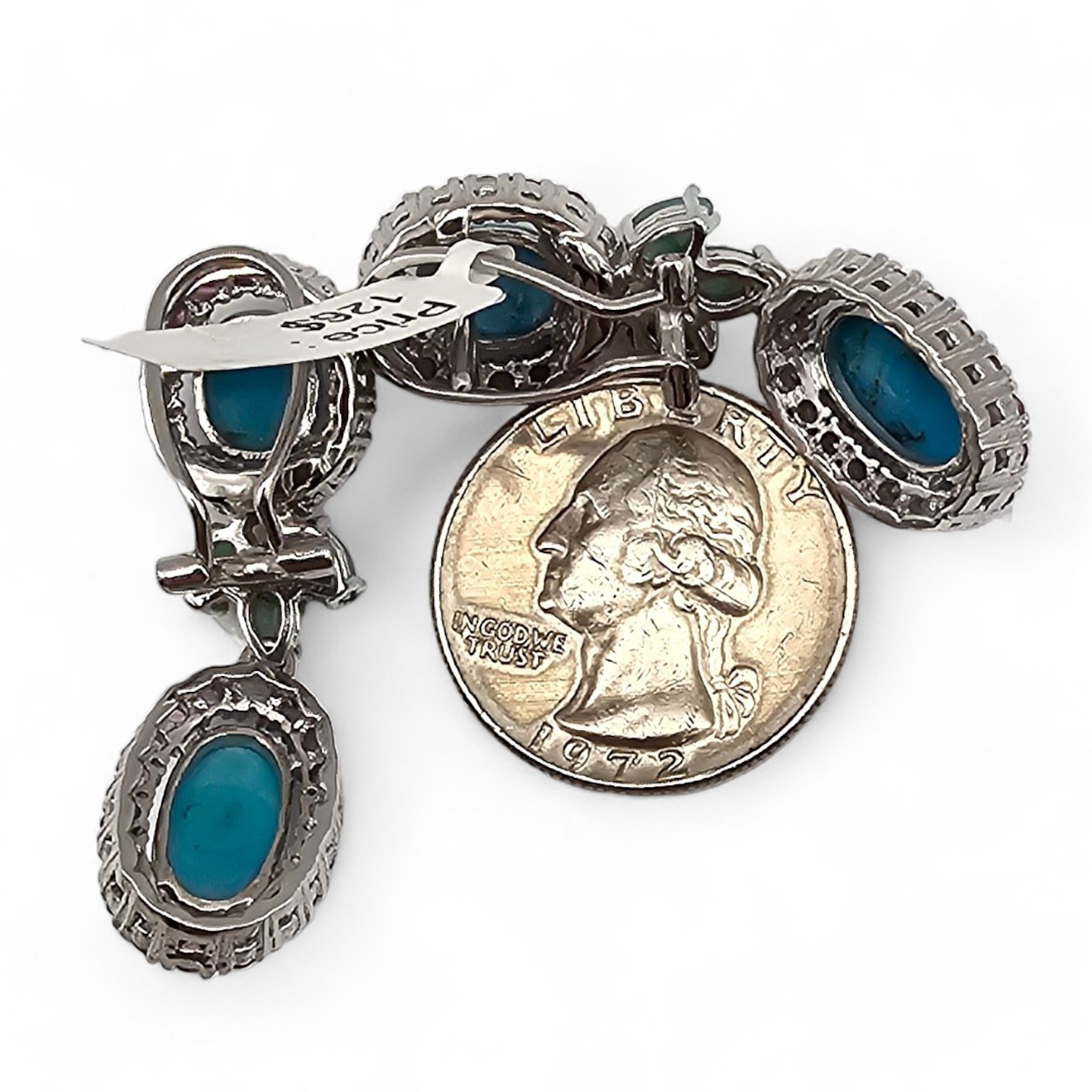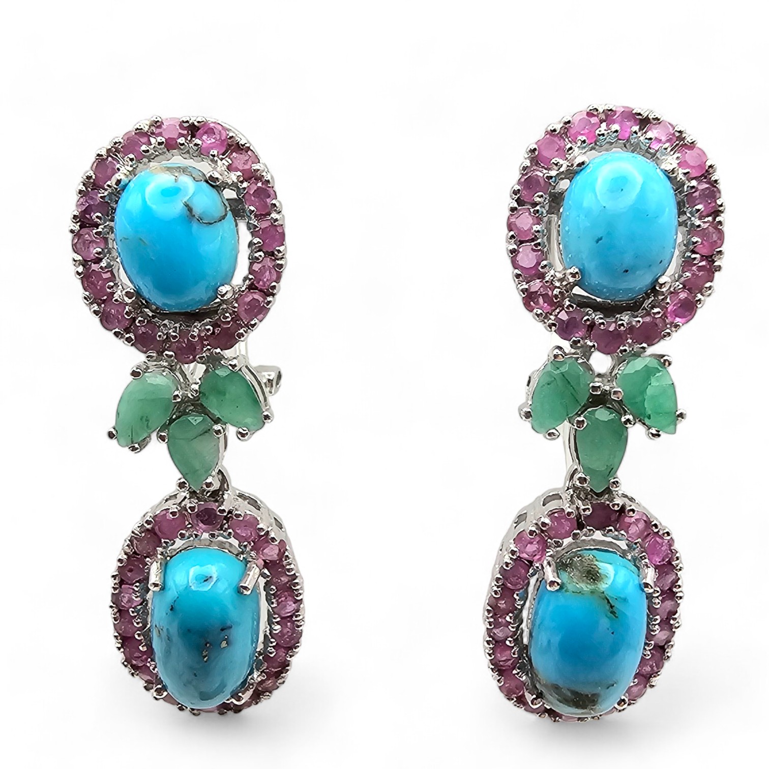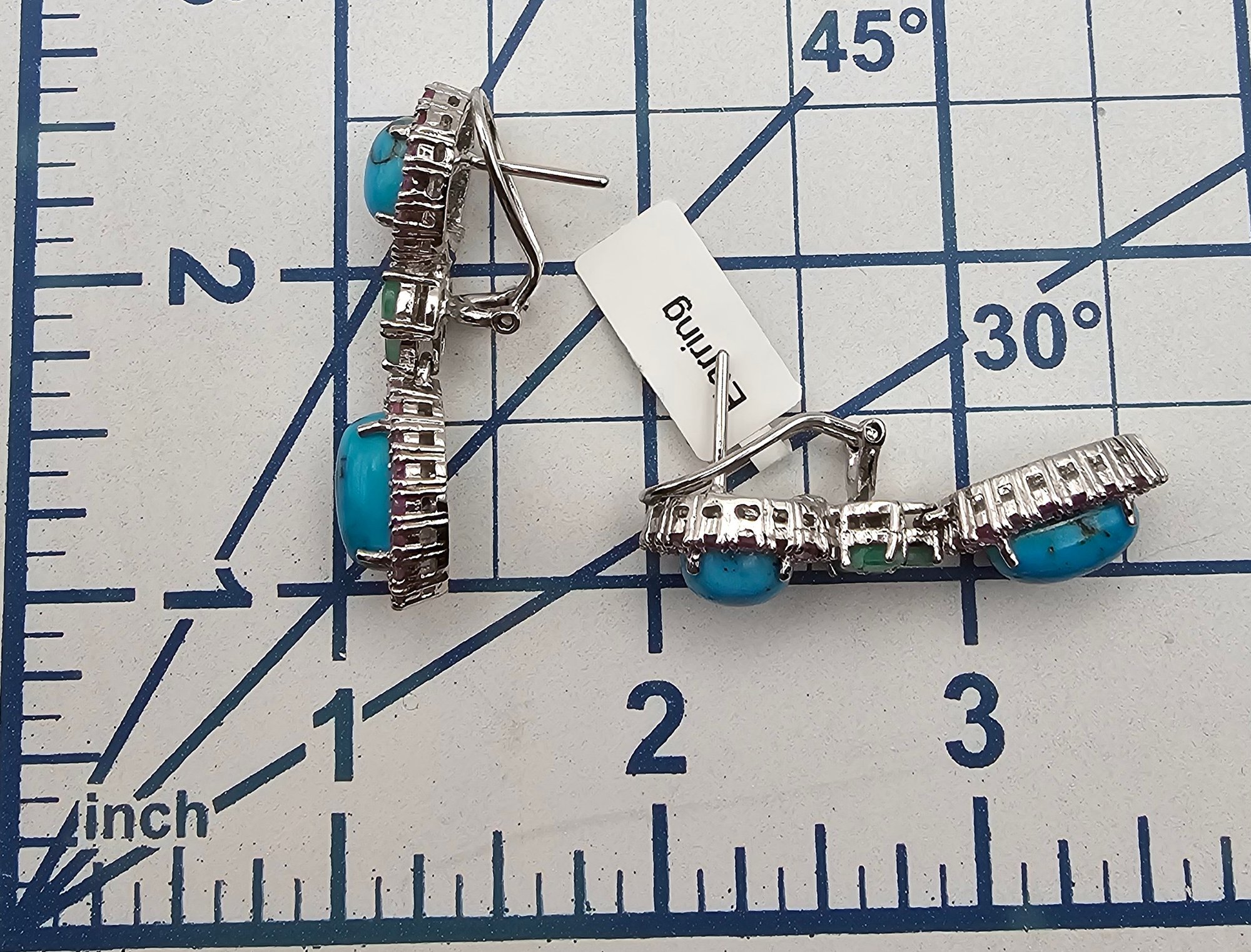 NWT Genuine Turquoise Emerald Ruby Sterling Silver Drop Dangle Earrings 14.1 G
